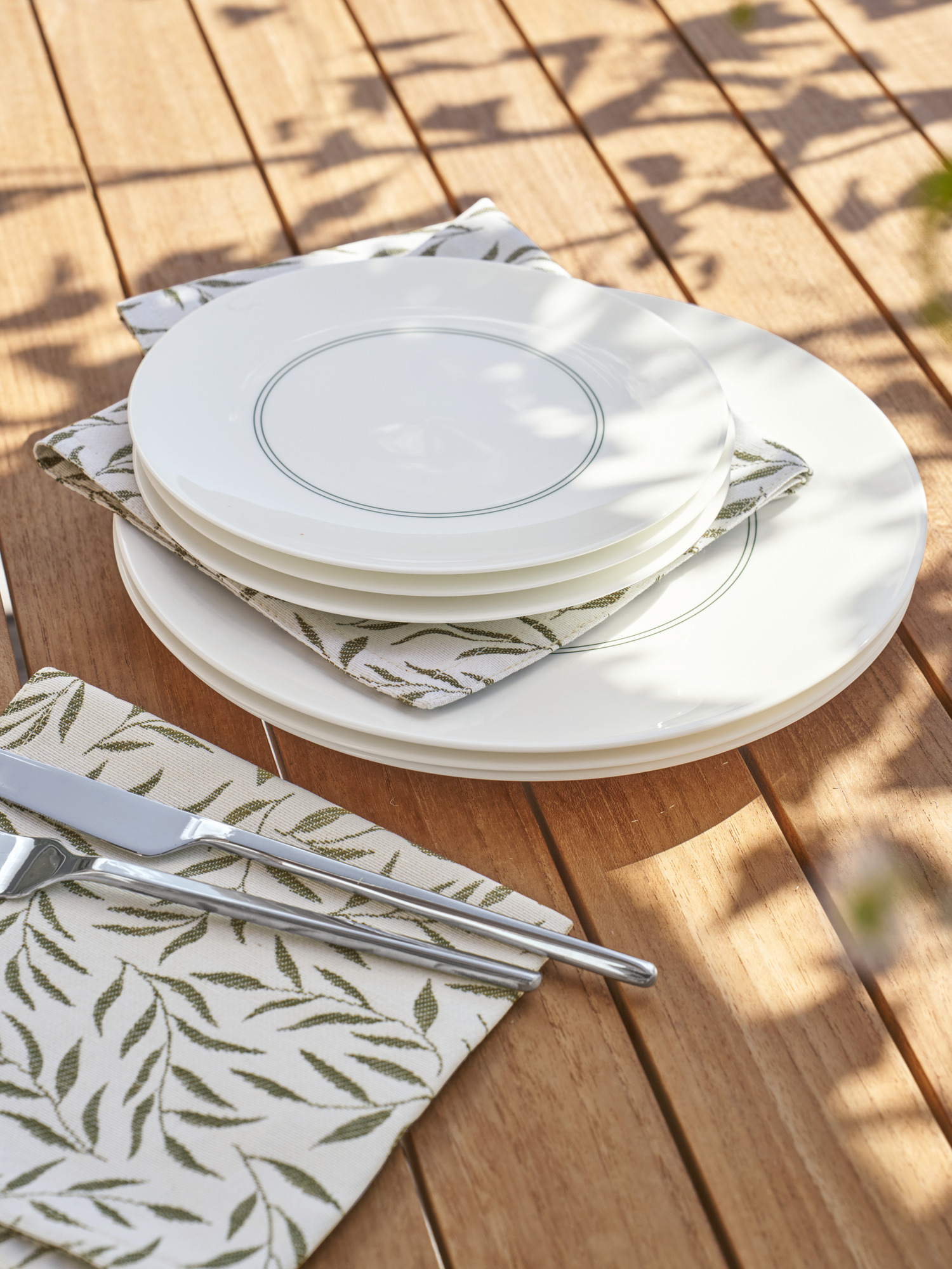 Die in Europa gefertigten Olivo Servietten zeichnen sich durch ihr ansprechendes Dessin aus, das grüne Olivenzweige auf einem warmen Weiß zur Geltung bringt. Wir empfehlen, die wiederwendbaren Servietten im Schonwaschgang bei 30 Grad zu waschen und sie nicht dauerhaft an der frischen Luft zu lassen.