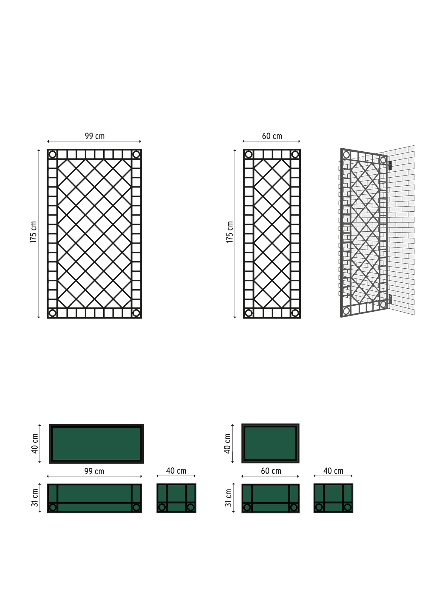 Ein Sichtschutz, der rankt und blüht und mit seinem schönen Rautenmuster auch im Winter eine Augenweide ist: Die Kletterhilfen und Pflanzkübel der Orangerie sind in zwei Breiten erhältlich. Während die Pflanzkübel einzeln verwendet werden können, müssen die Rankelemente von hinten an die Kübel geschraubt oder freistehend zwischen ihnen befestigt werden. Das Material besteht aus wetterfestem Aluminium, das schwarzgrün pulverbeschichtet ist. Abzugslöcher im Boden verhindern Staunässe und vier Höhenversteller gleichen Bodenunebenheiten aus.