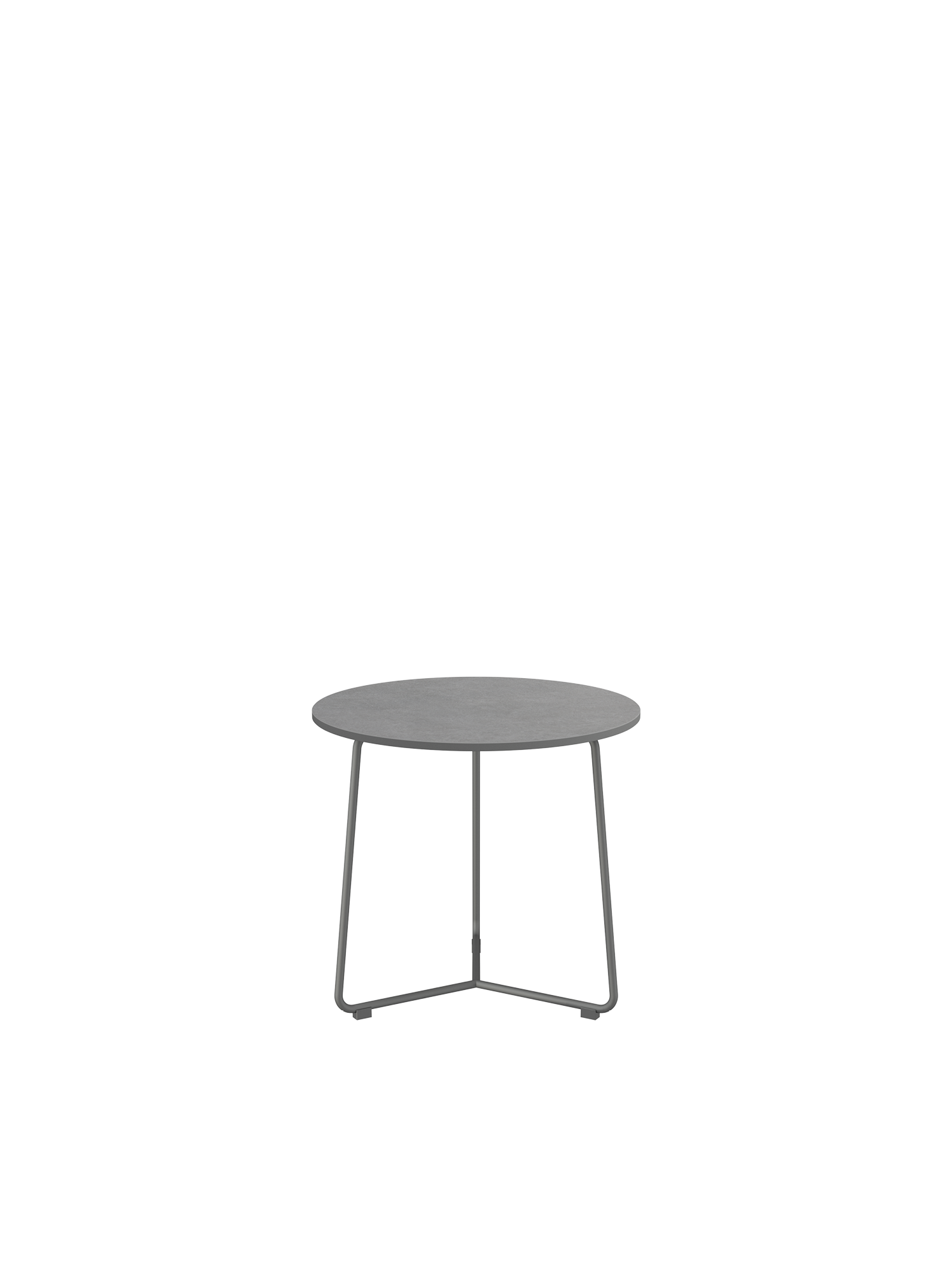 Der runde Beistelltisch mit einem Gestell aus graphitfarbenem Edelstahl trägt eine Platte aus Kunstharz in einem eleganten Grauton. Das hochwertige Material ist wetter- und UV-beständig.