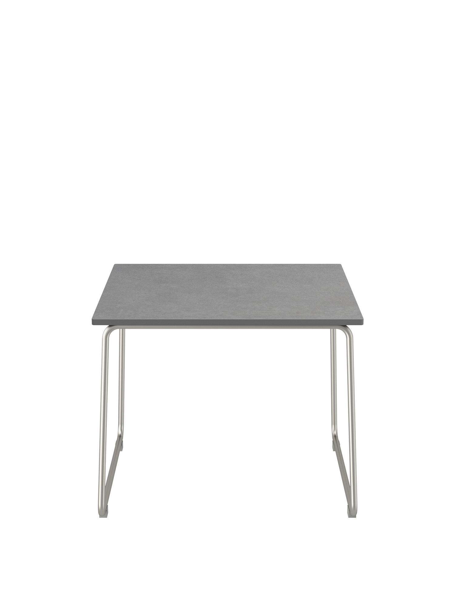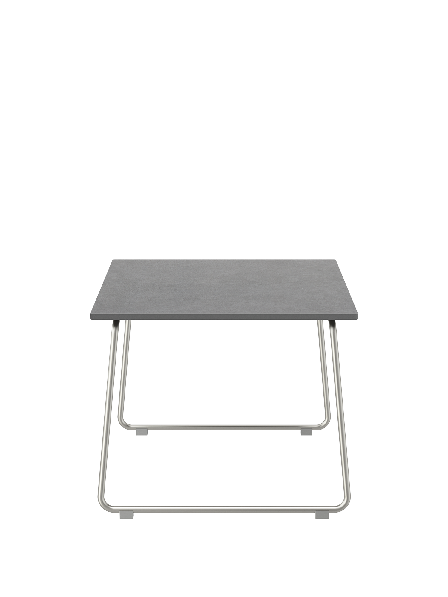 Der moderne Beistelltisch hat ein Gestell aus satiniertem Edelstahl und eine Kunstharzplatte im Farbton Shade.