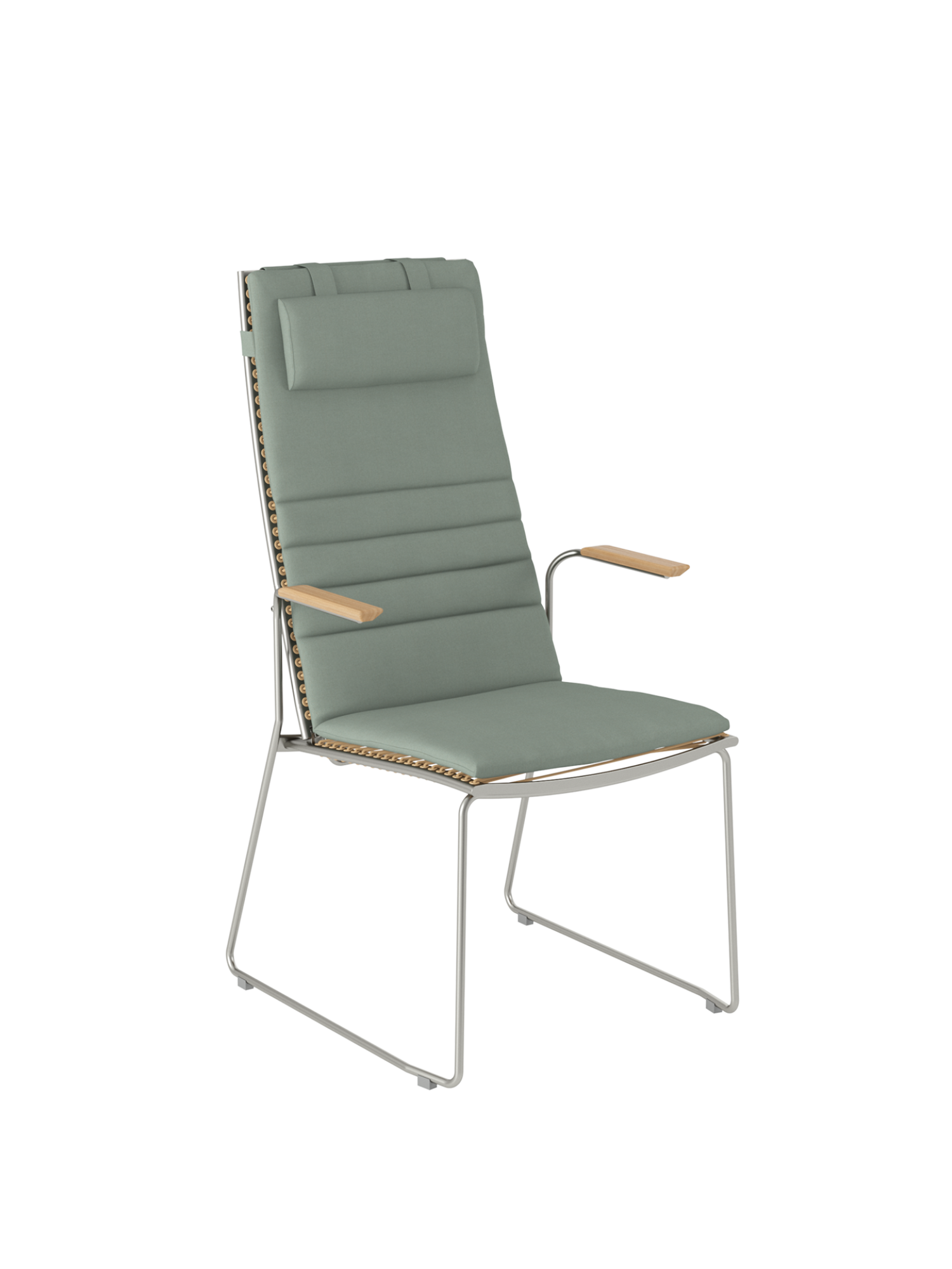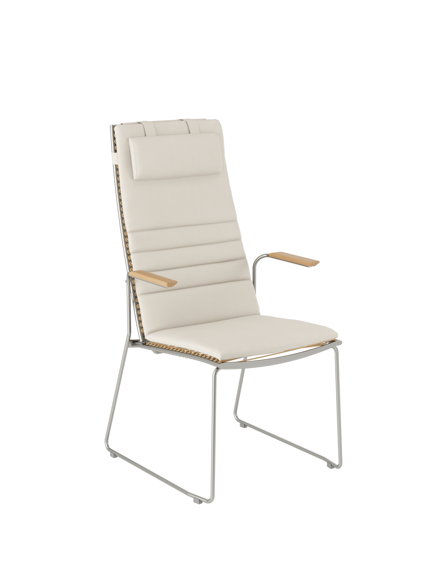 Pan wirkt luftig wie eine leichte Brise. Die eleganten Hochlehner mit einem pulverbeschichtetem Edelstahlgestell sind mit einer dauerelastischen Faser bespannt, die sich bequem der Körperkontur anpasst. Die Stühle mit der hohen Rückenlehne lassen sich ideal mit dem dazu passenden Hocker kombinieren.