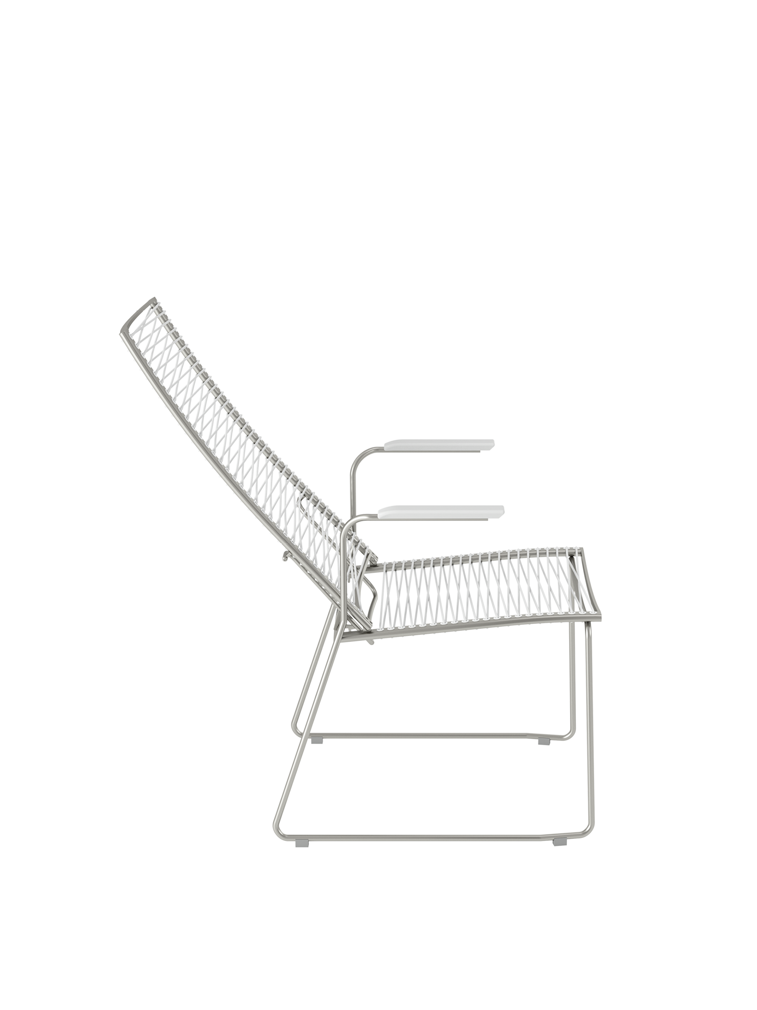 Markantes Merkmal der modernen Sitzmöbel ist ihre Schnürung, die durch dekorative Ösen im Rahmen geführt wird. Die Kunststofffaser ist UV- und frostbeständig und bleibt auch bei Dauergebrauch gut in Form.