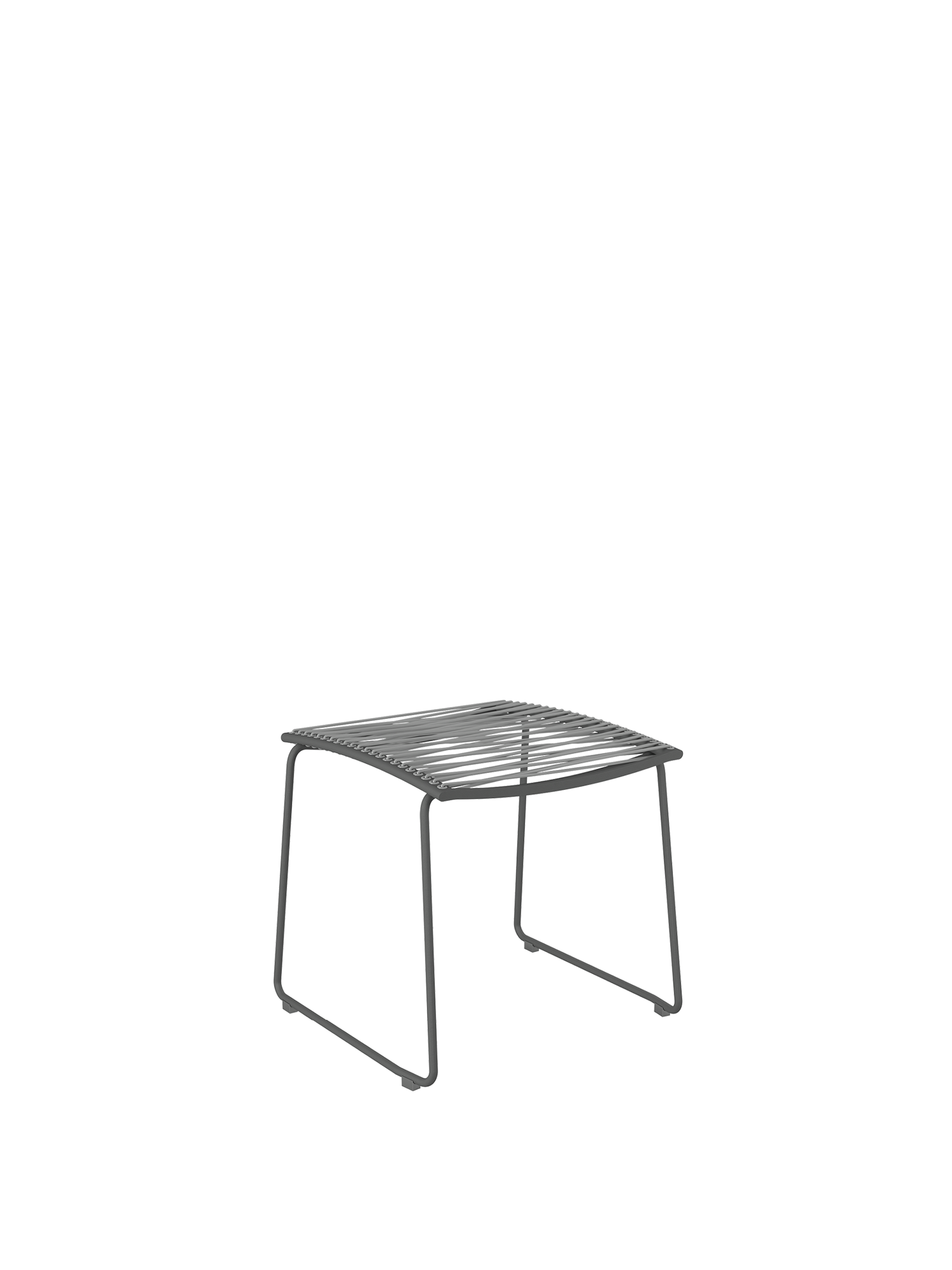 Der passende Hocker zu den Stühlen und Hochlehnern der Pan Serie hat ein Gestell aus pulverbeschichtetem Edelstahl und eine Bespannung aus hochwertiger, wetterfester Kunststofffaser. Er ist schnell dazugestellt und entlastet angenehm die Beine.