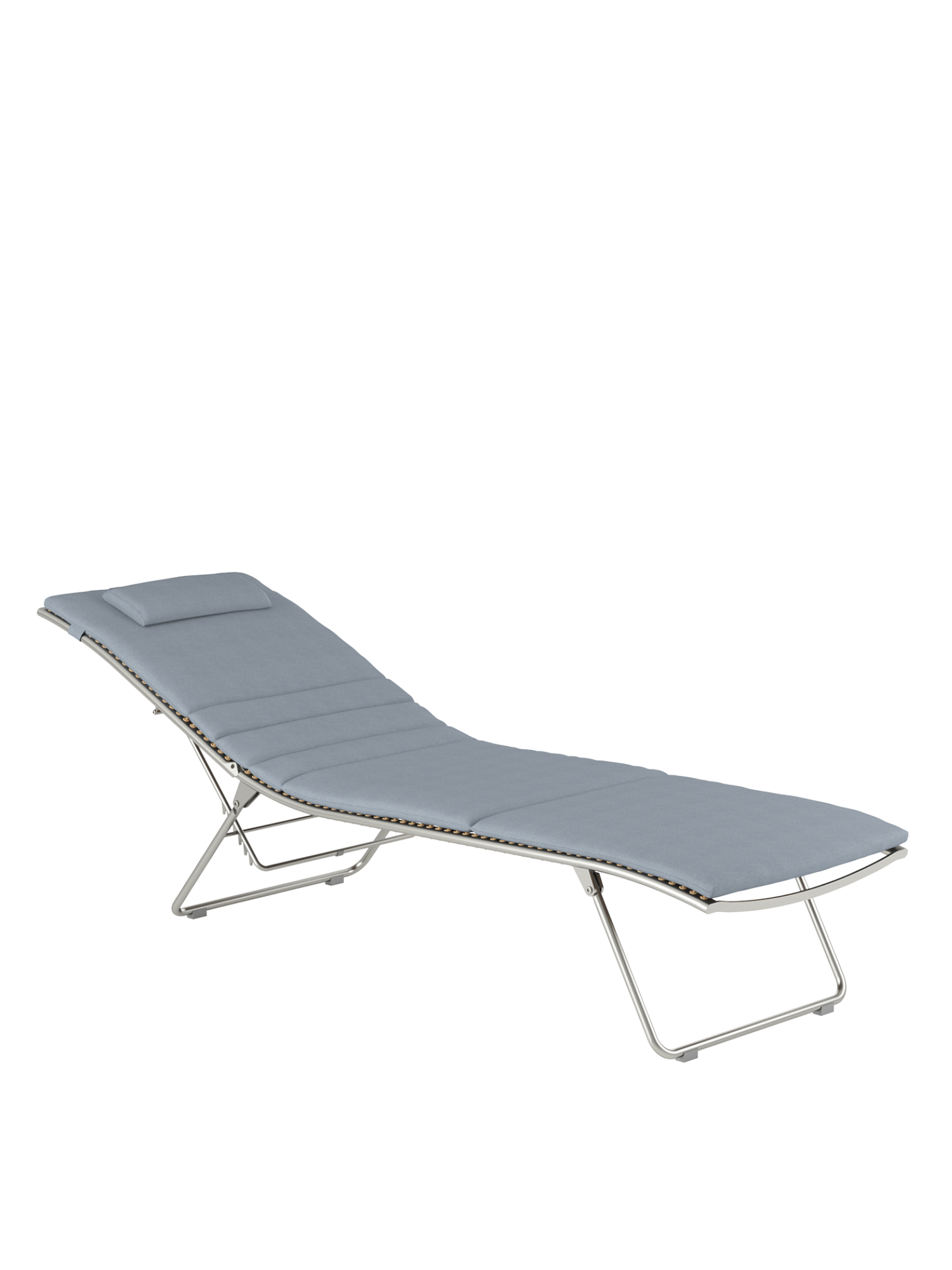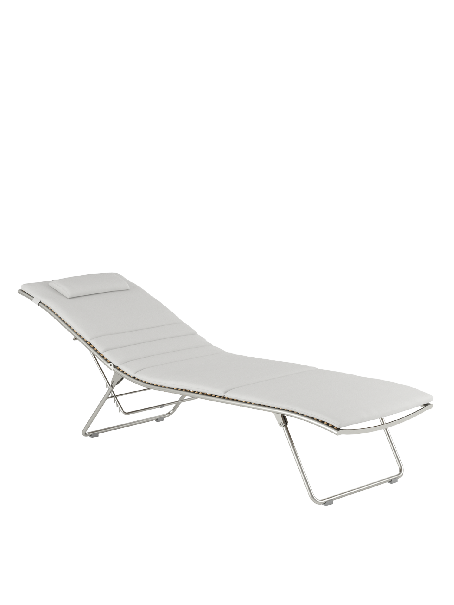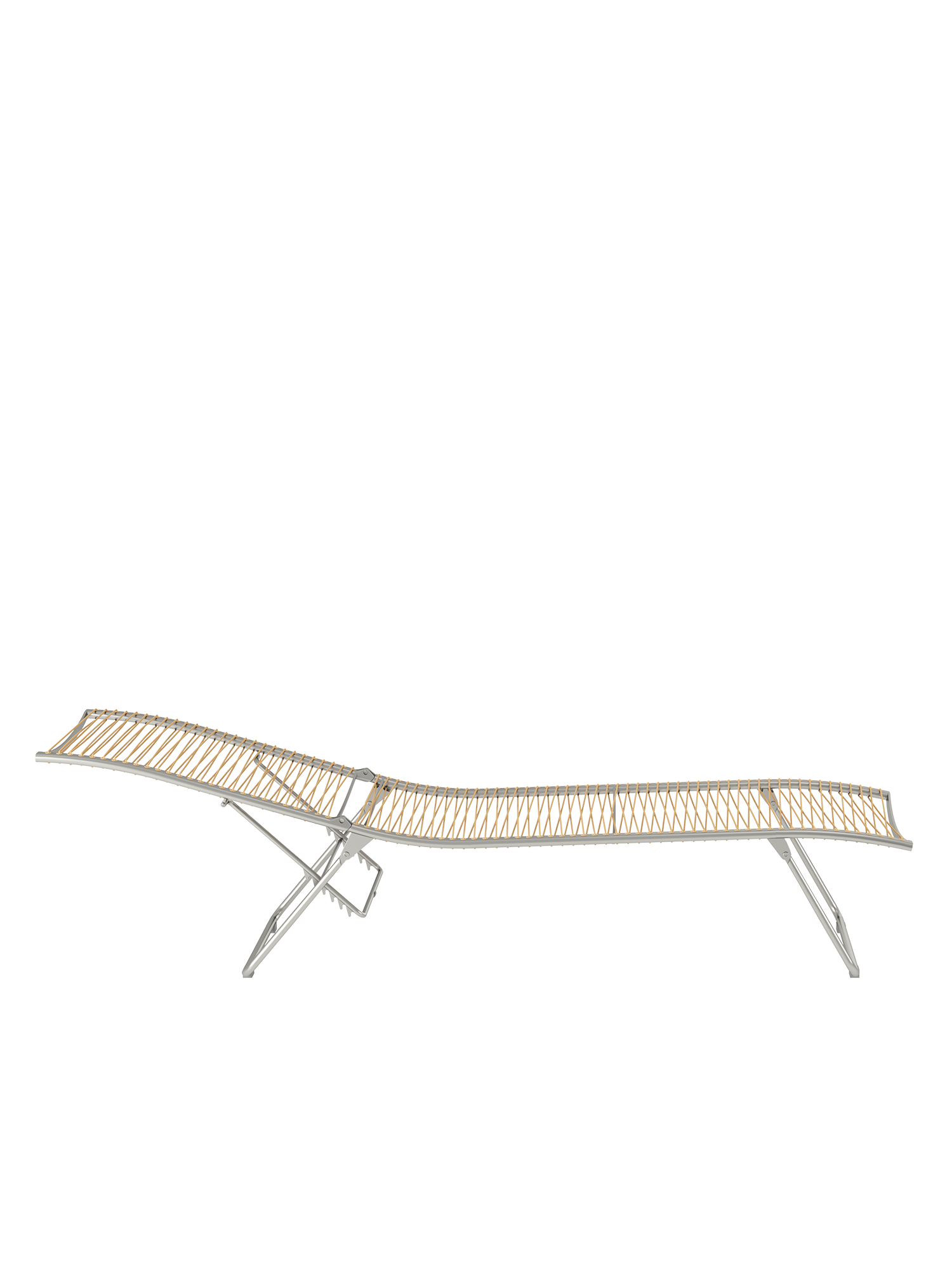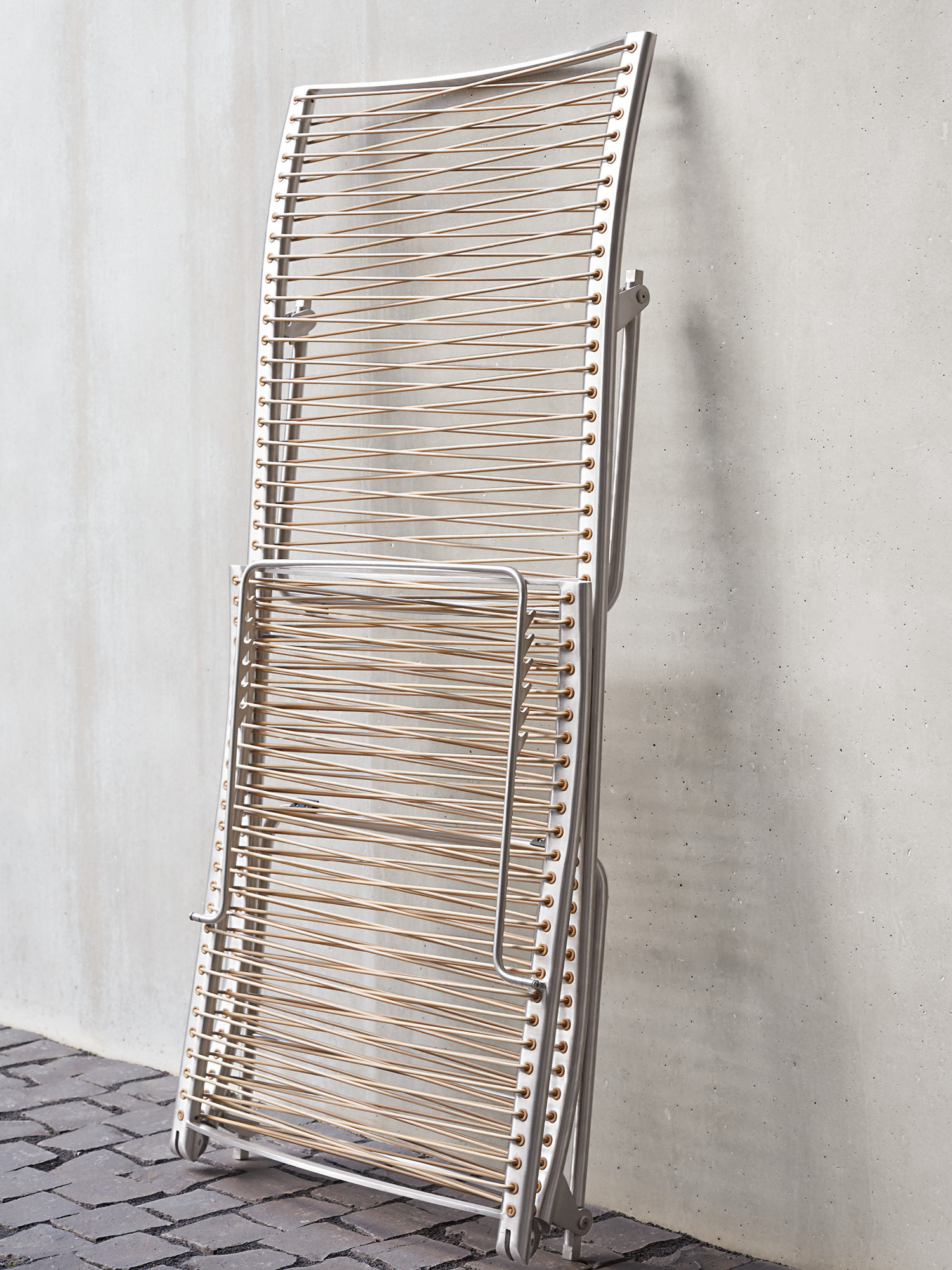 Aus einem einzigen geschwungenen Strich entstand diese Liege aus der Feder des Designers. Die Idee, sie flach zusammenfalten zu können, macht sie perfekt. Das elastische Kunststoffgeflecht auf einem eleganten Edelstahlgestell passt sich der Körperkontur an, die fünffach verstellbare Rückenlehne macht das Sonnen auch in der Bauchlage möglich.