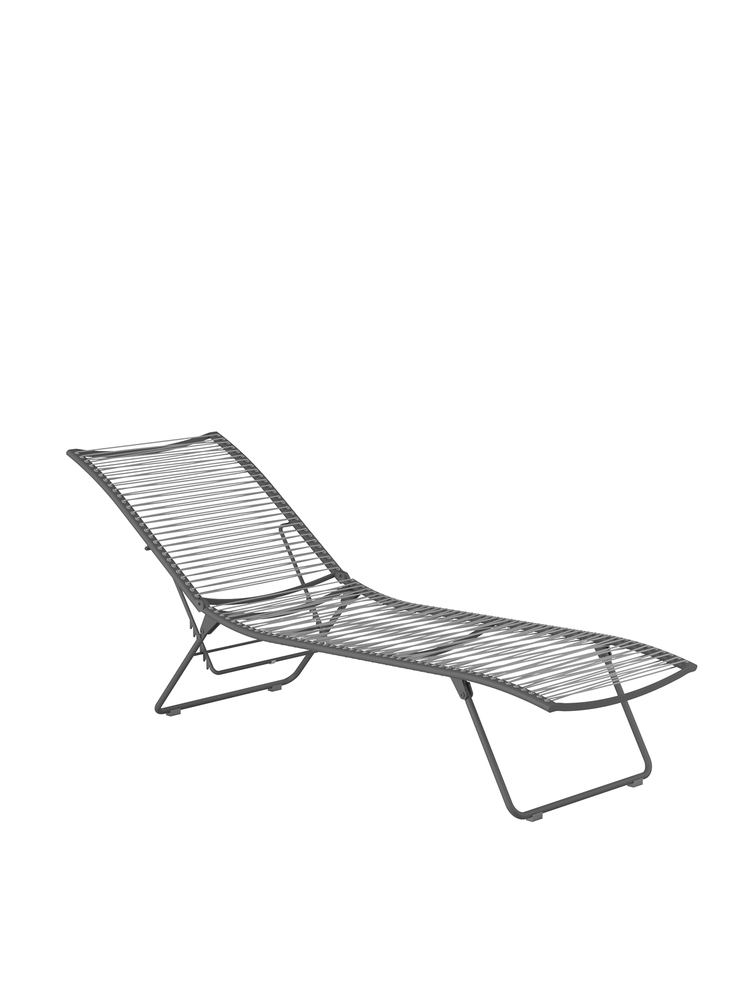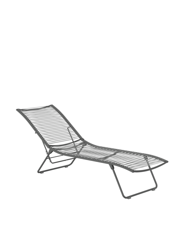 Aus einem einzigen geschwungenen Strich entstand diese Liege aus der Feder des Designers. Die Idee, sie flach zusammenfalten zu können, macht sie perfekt. Das elastische Kunststoffgeflecht auf einem eleganten, pulverbeschichteten Edelstahlgestell passt sich der Körperkontur an, die fünffach verstellbare Rückenlehne macht das Sonnen auch in der Bauchlage möglich.