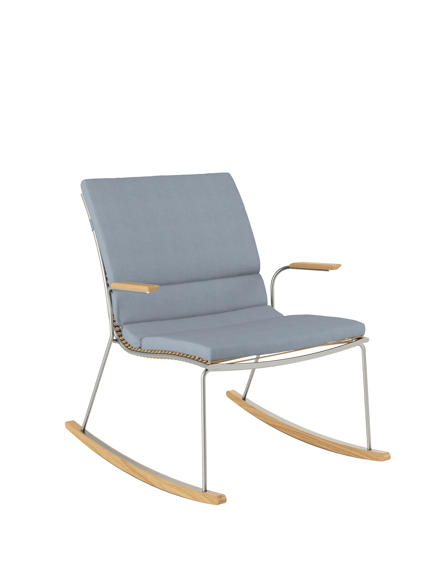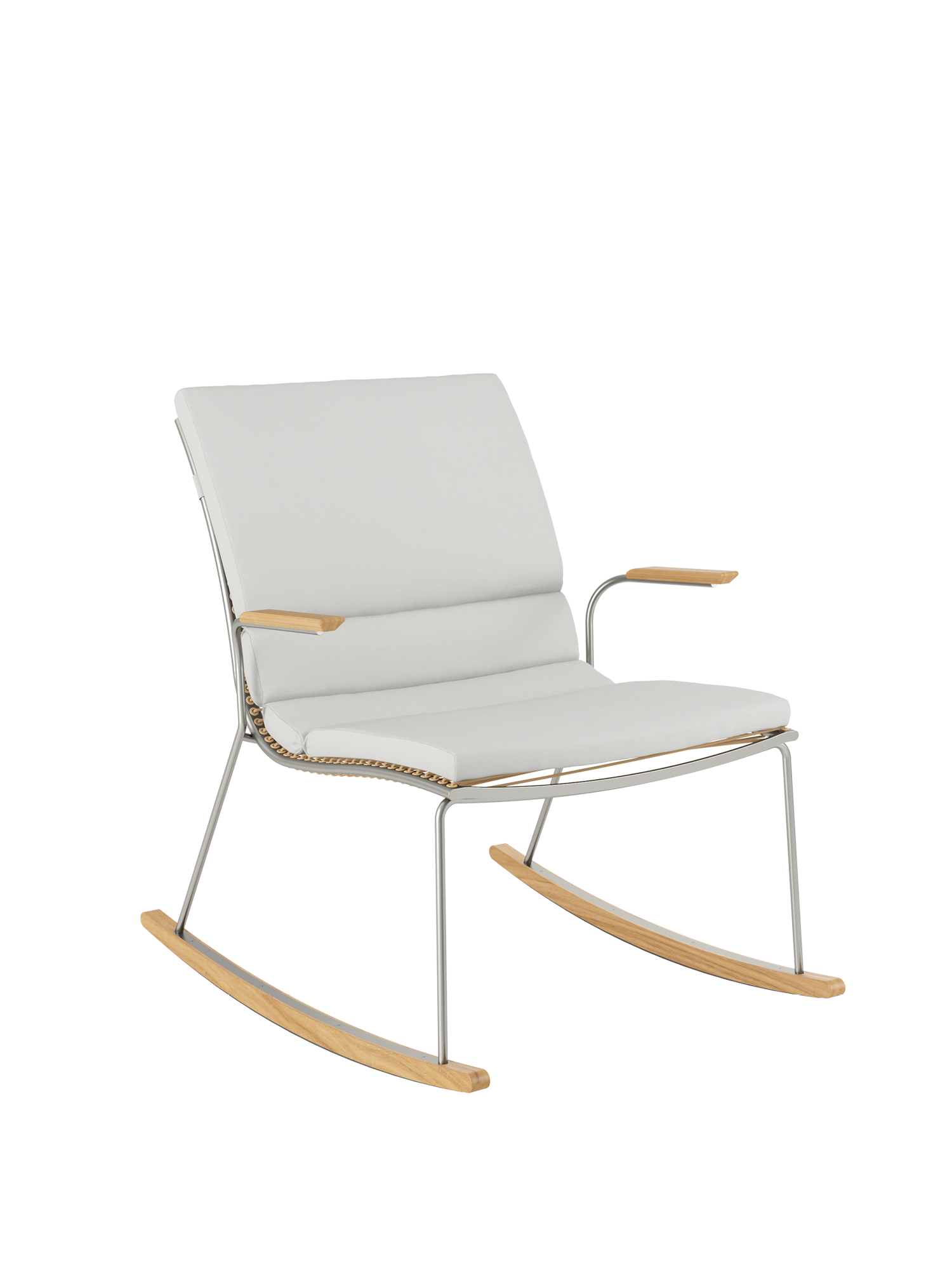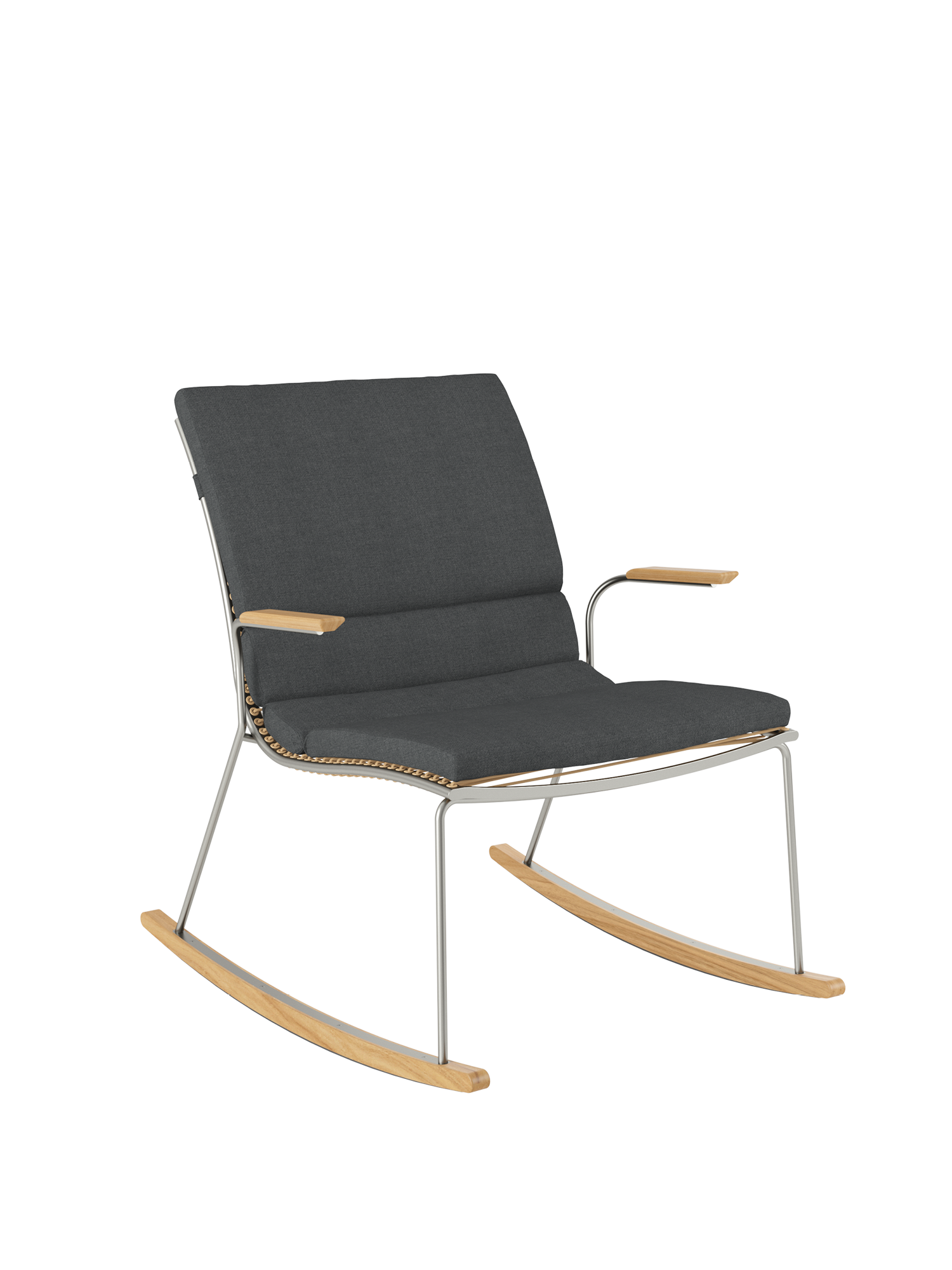Bewegungsenergie in Ruhe zu verwandeln, ist rein physikalisch ein Ding der Unmöglichkeit. Aber gerade darin liegt die Bestimmung des Schaukelstuhls: Im filigranen Pan Design, auf schlanken Teakkufen und mit Armlehnen aus Teak, versetzt er schwungvoll in tiefe Entspannung. Für sorgloses Schaukeln sind schützende Kunststoffleisten unter den Kufen angebracht.