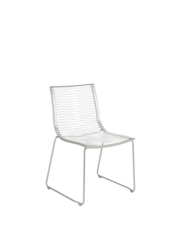 Pan wirkt luftig wie eine leichte Brise. Die eleganten Stühle mit einem Edelstahlgestell sind mit einer dauerelastischen Faser bespannt, die sich bequem der Körperkontur anpasst. Die Stühle sind stapelbar und auch mit Armlehnen erhältlich.