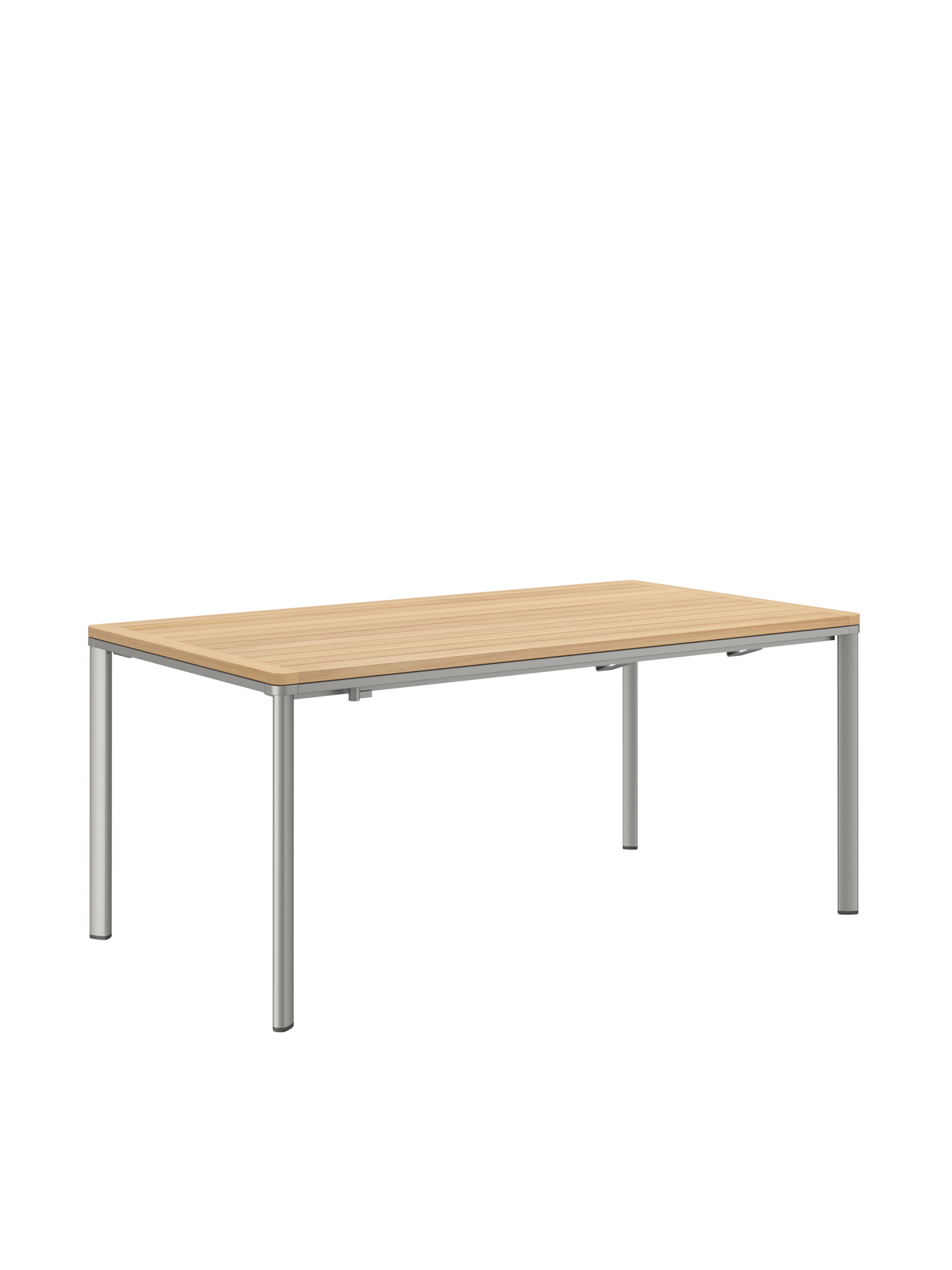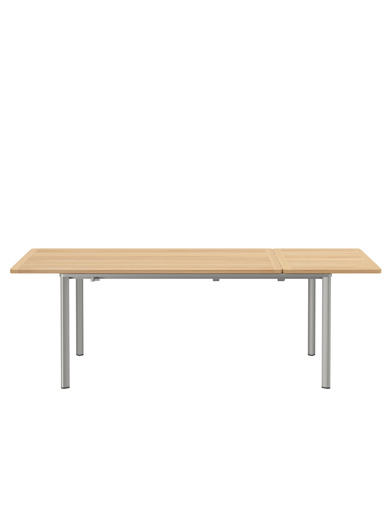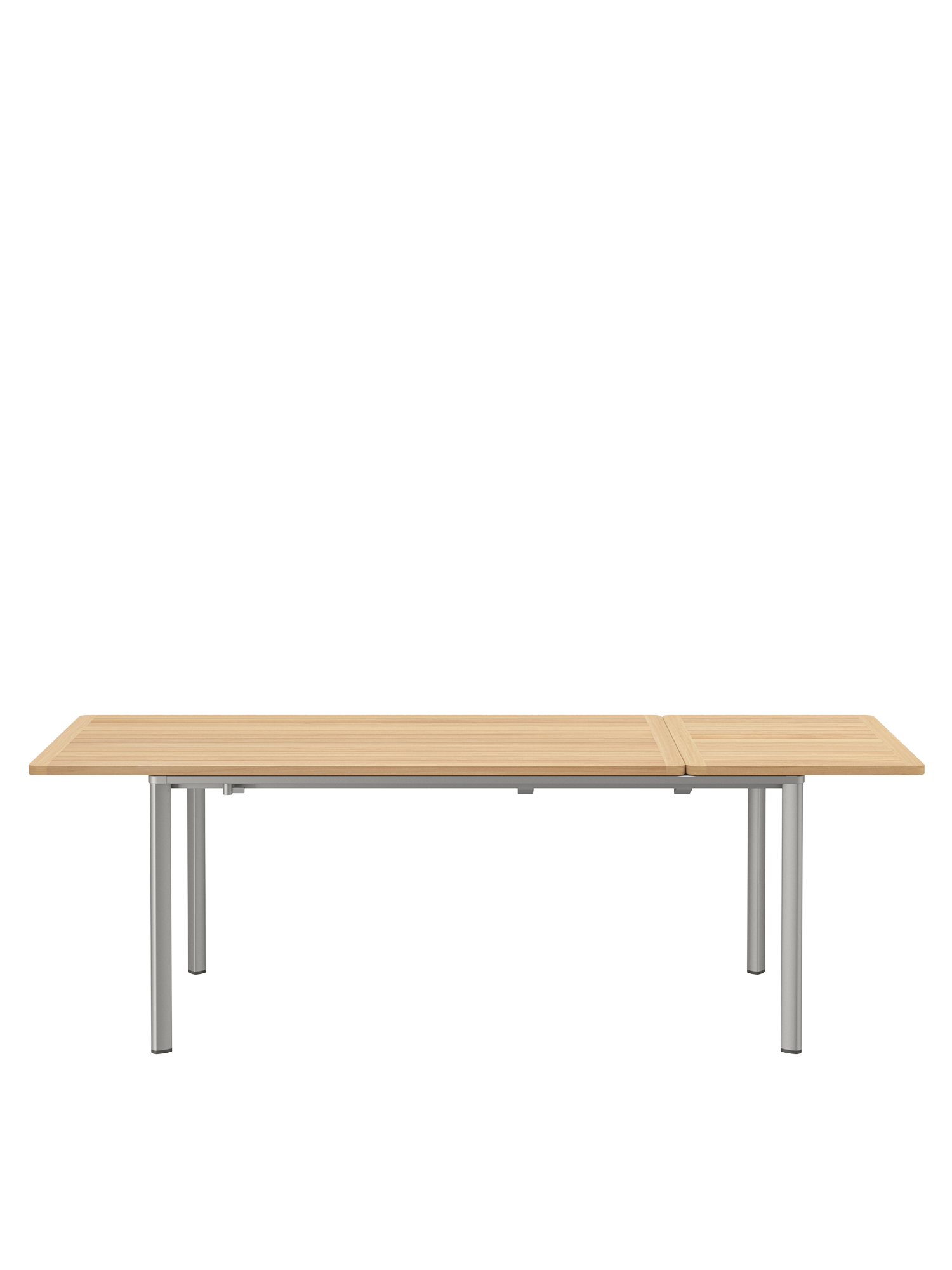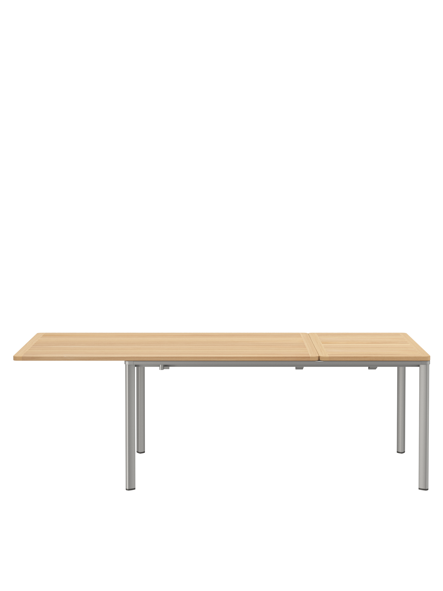 Im neuen Eloxalton Silk passt der Portland Ausziehtisch perfekt zu den Sitzmöbeln der Monterey Kollektion mit gleichfarbigem Gestell.