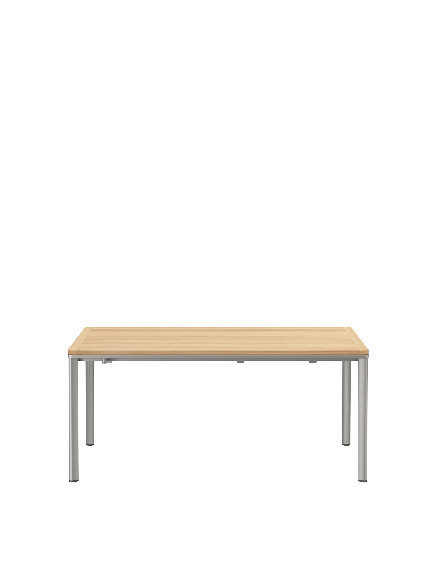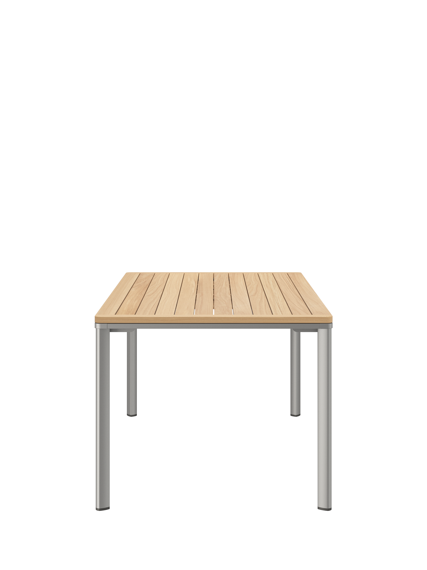 Ein eloxiertes Aluminiumgestell und eine umlaufende Zarge mit sanfter Rundung tragen die Oberfläche aus hochwertigem Teakholz. Die wetterfeste Materialkombination verbindet den Portland Tisch mit ausgewählten Möbeln der Monterey Kollektion. Um den Tisch, der Platz für bis zu acht Personen verspricht, können sich beispielsweise eine Bank, vier Armlehnstühle und vier Recliner gruppieren.