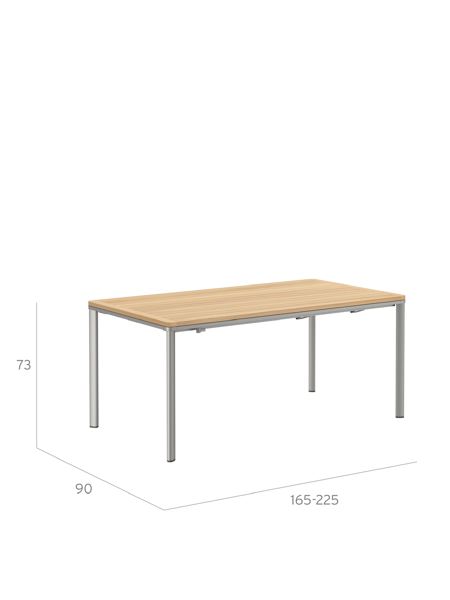 Portland Ausziehtisch Aluminium eloxiert/Teak 165-225 x 90