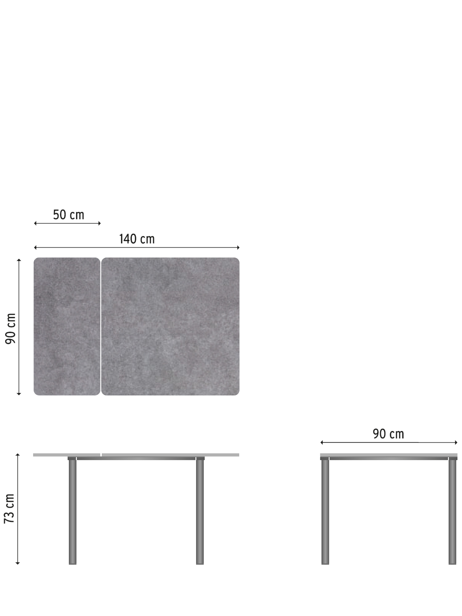 Portland Ausziehtisch Edelstahl Graphit/Kunstharz Shade 90-140 x 90