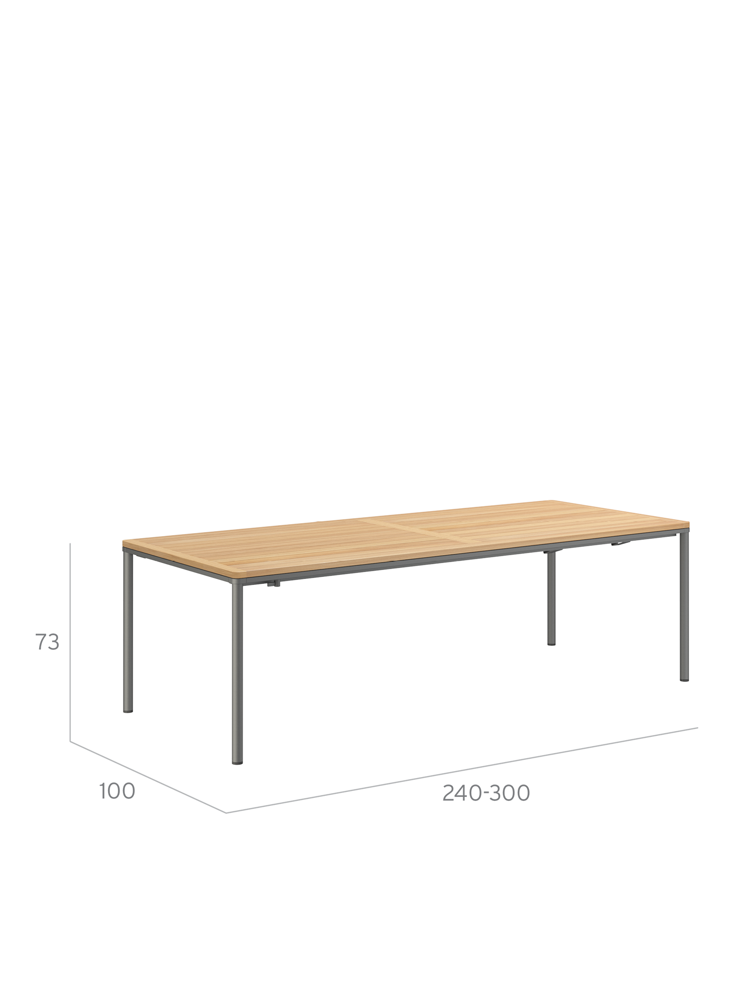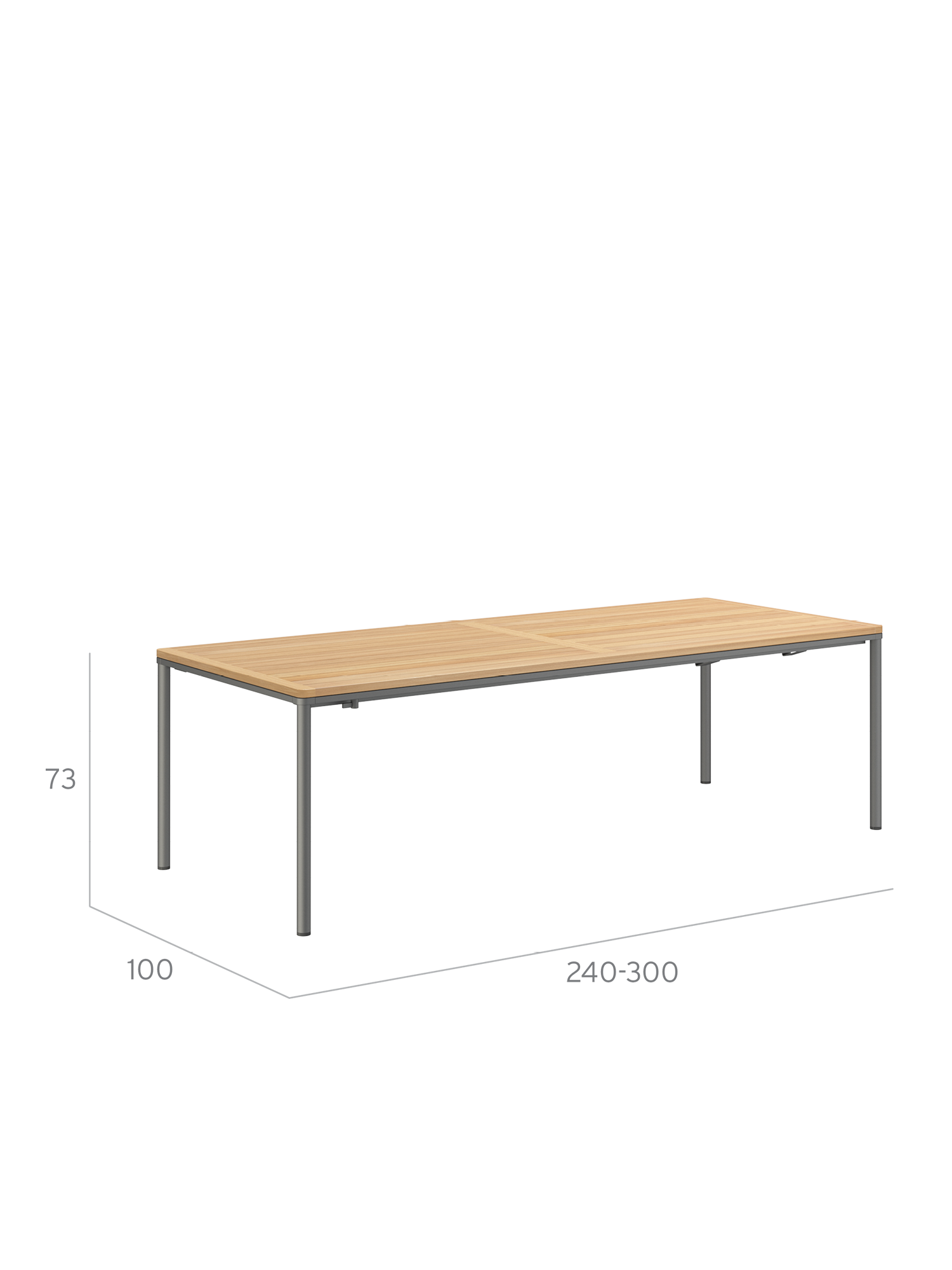 Portland Ausziehtisch Edelstahl Graphit/Teak 240-300 x 100