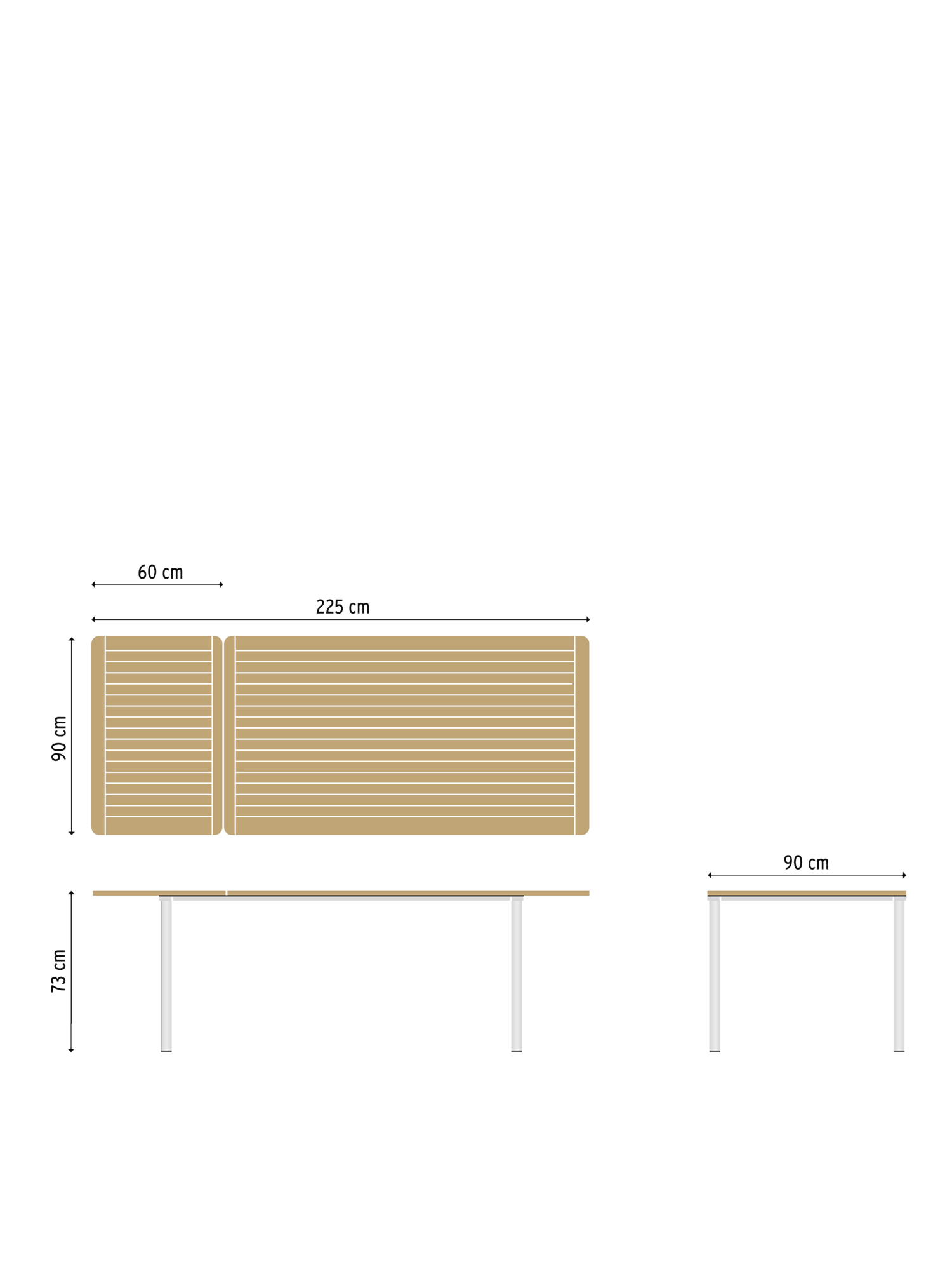 Portland Ausziehtisch Edelstahl/Teak 165-225 x 90