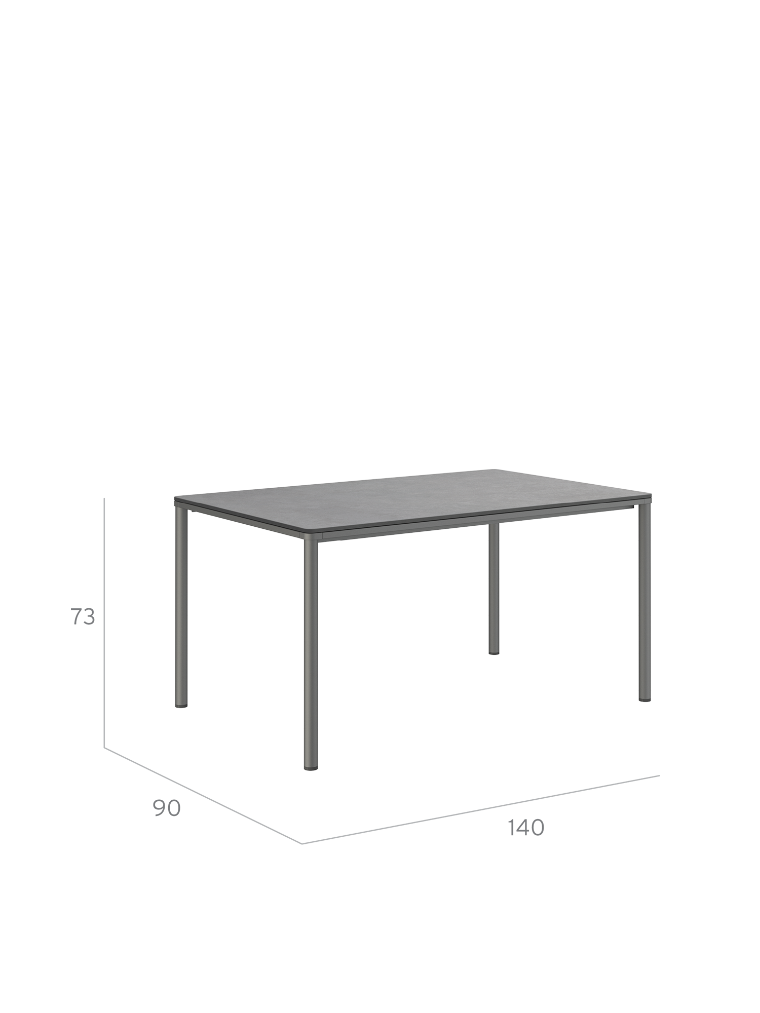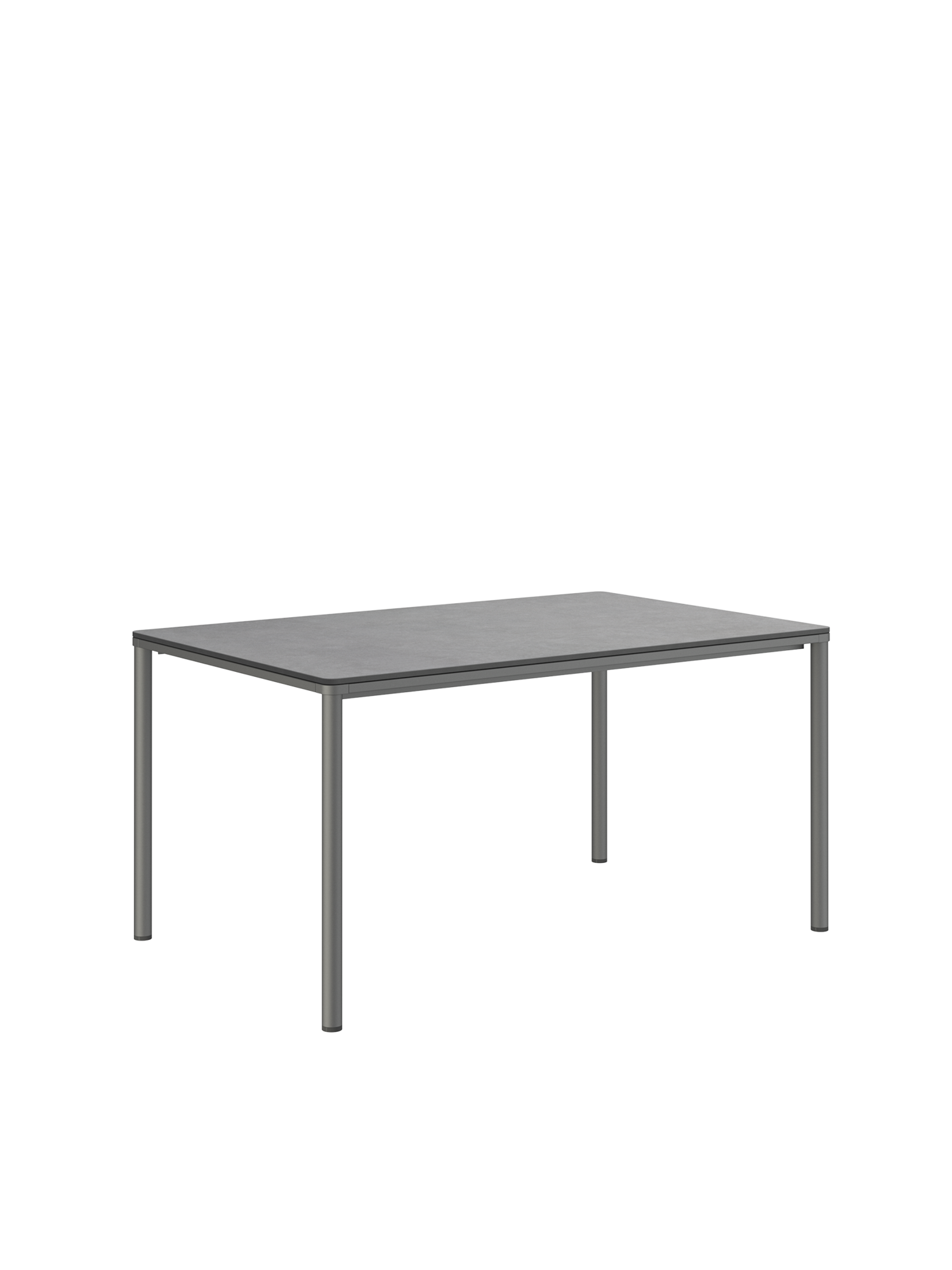 Eine umlaufende Zarge mit sanfter Rundung prägt das Design der Portland Tische. Sie sind der elegante Mittelpunkt jeder Gesellschaft. Die großzügigen Tischplatten aus dunklem Kunstharz ruhen auf vier schlanken Beinen, das graphitgrau pulverbeschichtete Edelstahlgestell harmoniert besonders mit Stühlen aus gleichem Material.