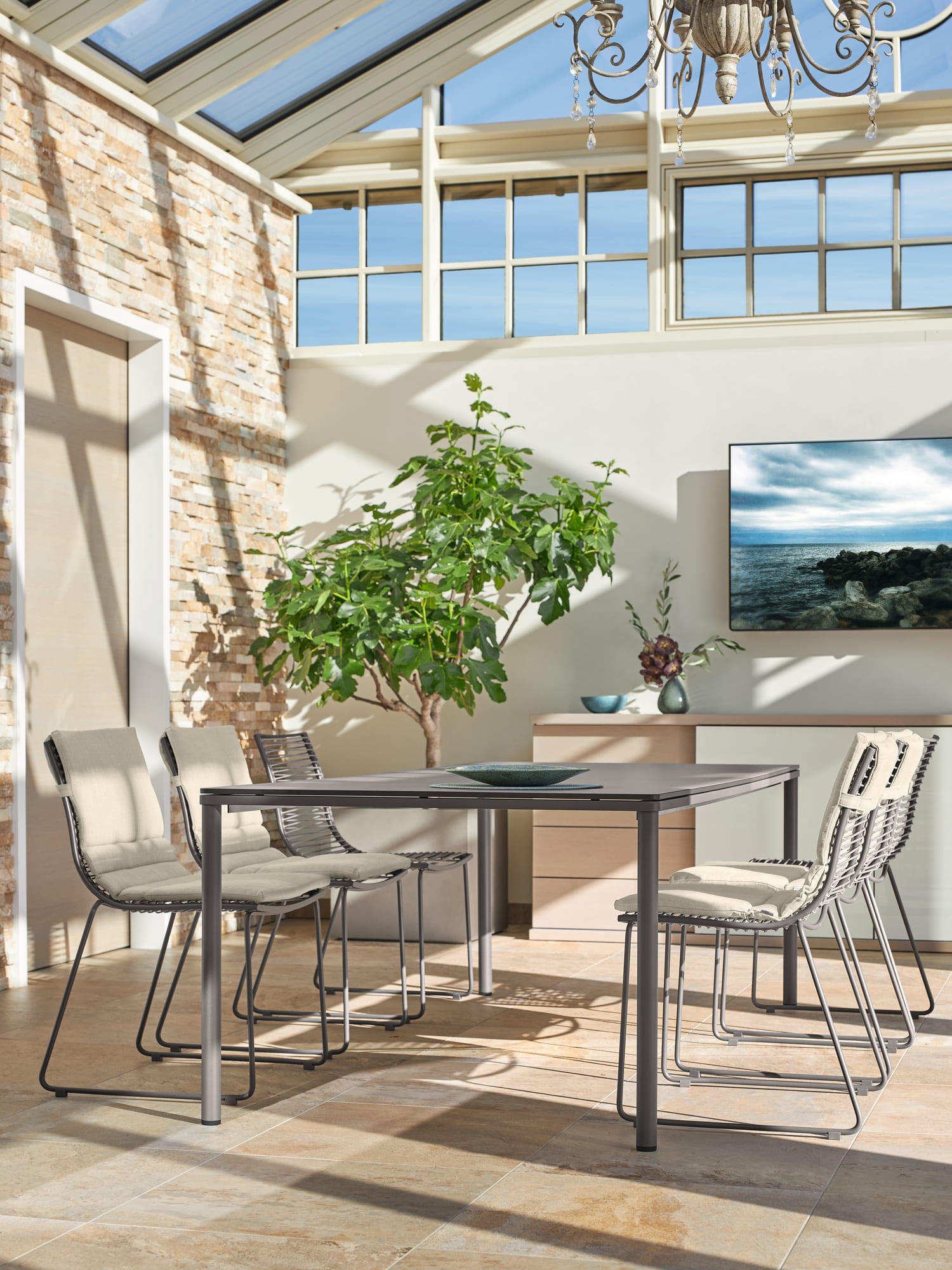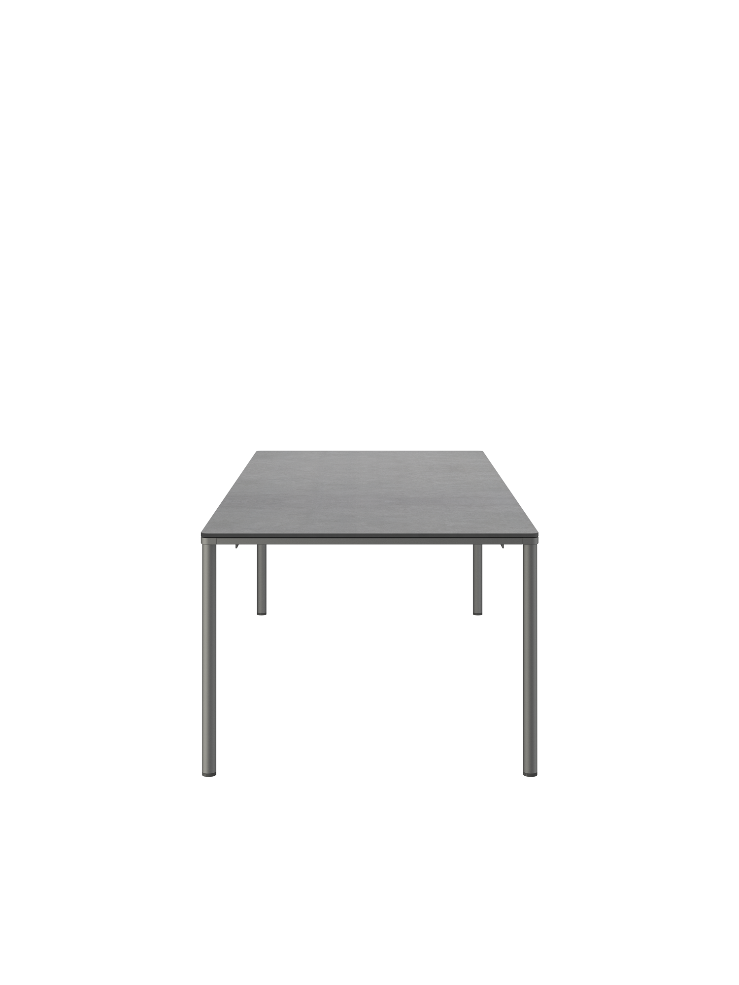 Eine umlaufende Zarge mit sanfter Rundung prägt das Design der Portlandtische. Sie sind der elegante Mittelpunkt jeder Gesellschaft. Die großzügigen Tischplatten aus Kunstharz ruhen auf vier schlanken Beinen, das graphitgrau pulverbeschichtete Edelstahlgestell harmoniert perfekt mit den Stühlen unserer modernen Möbelserien.