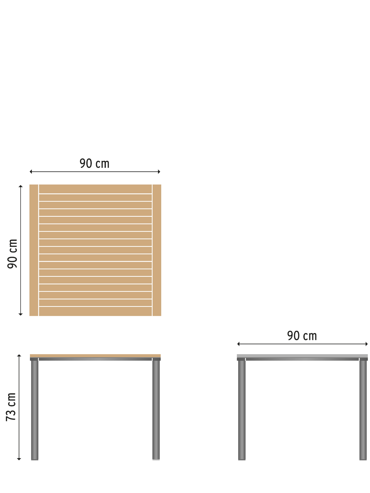 Portland Tisch Edelstahl Graphit/Teak 90 x 90