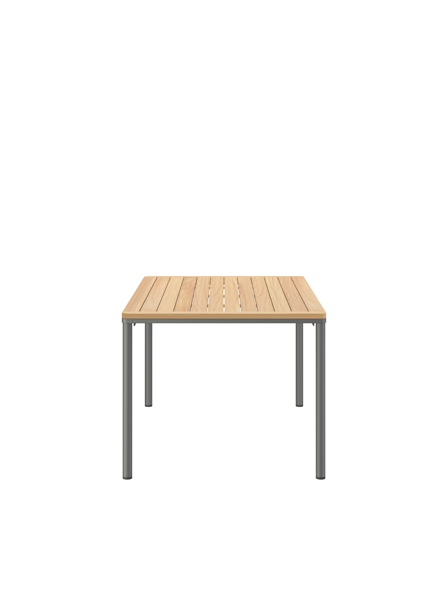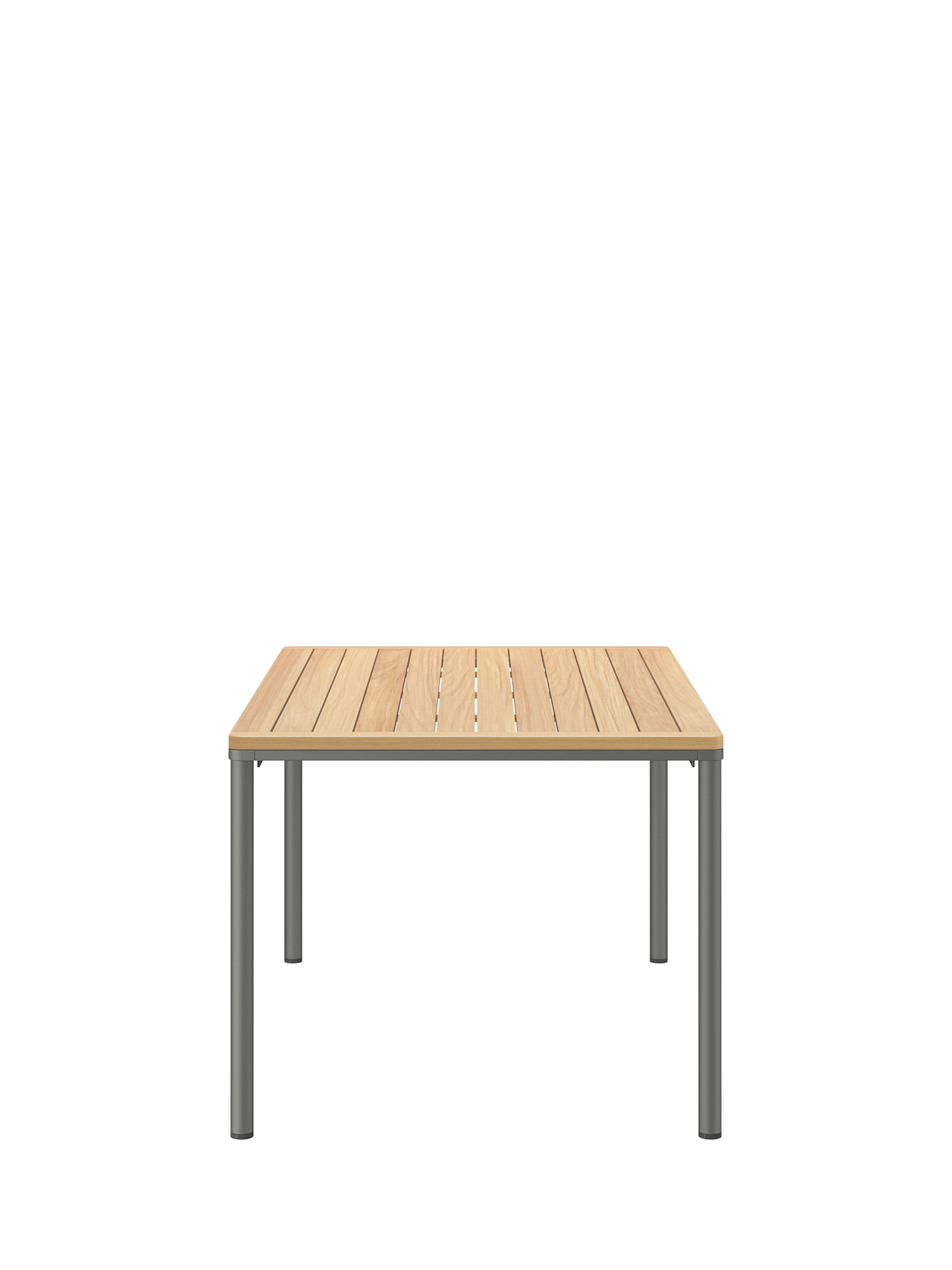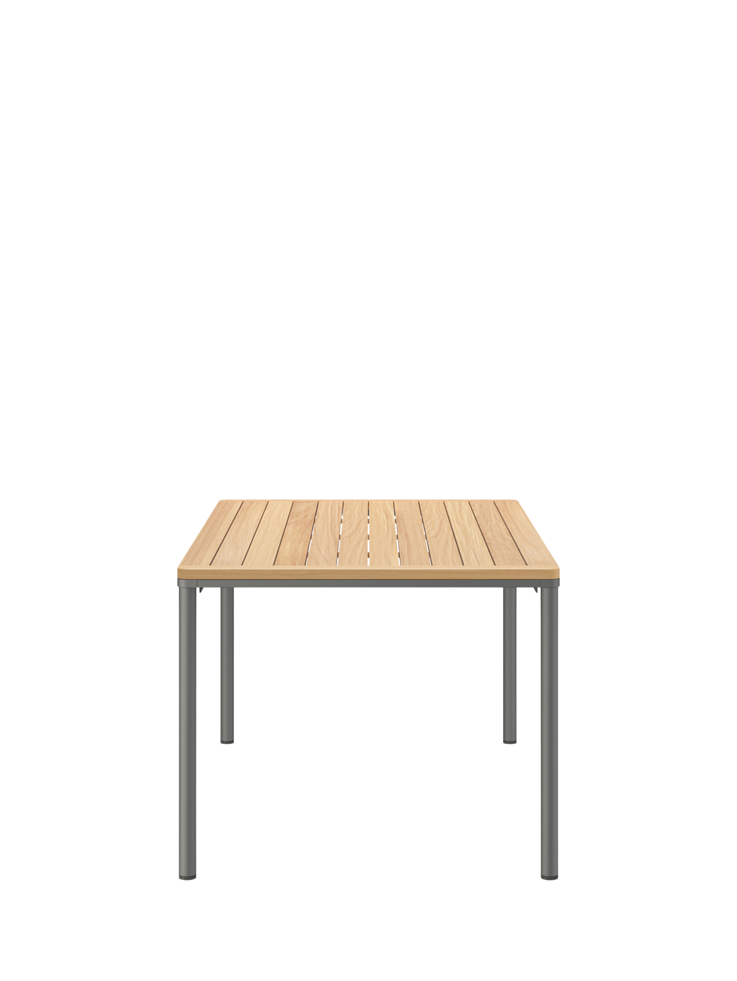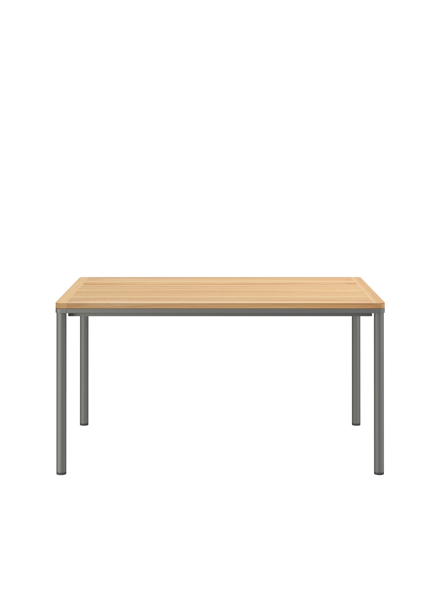 Eine umlaufende Zarge mit sanfter Rundung prägt das Design der Portland Tische. Sie sind der elegante Mittelpunkt jeder Gesellschaft. Die großzügigen Tischplatten aus wetterfestem Plantagenteak ruhen auf vier schlanken Beinen, das graphitgrau pulverbeschichtete Edelstahlgestell harmoniert besonders mit Stühlen aus gleichem Material.