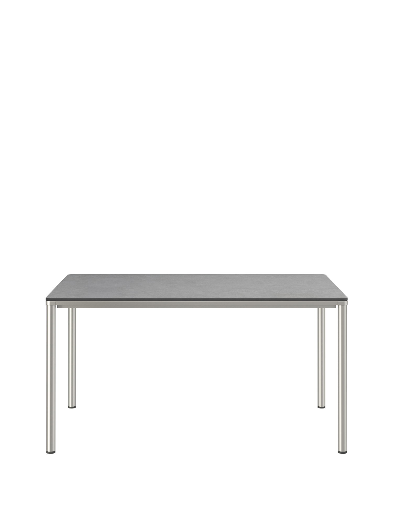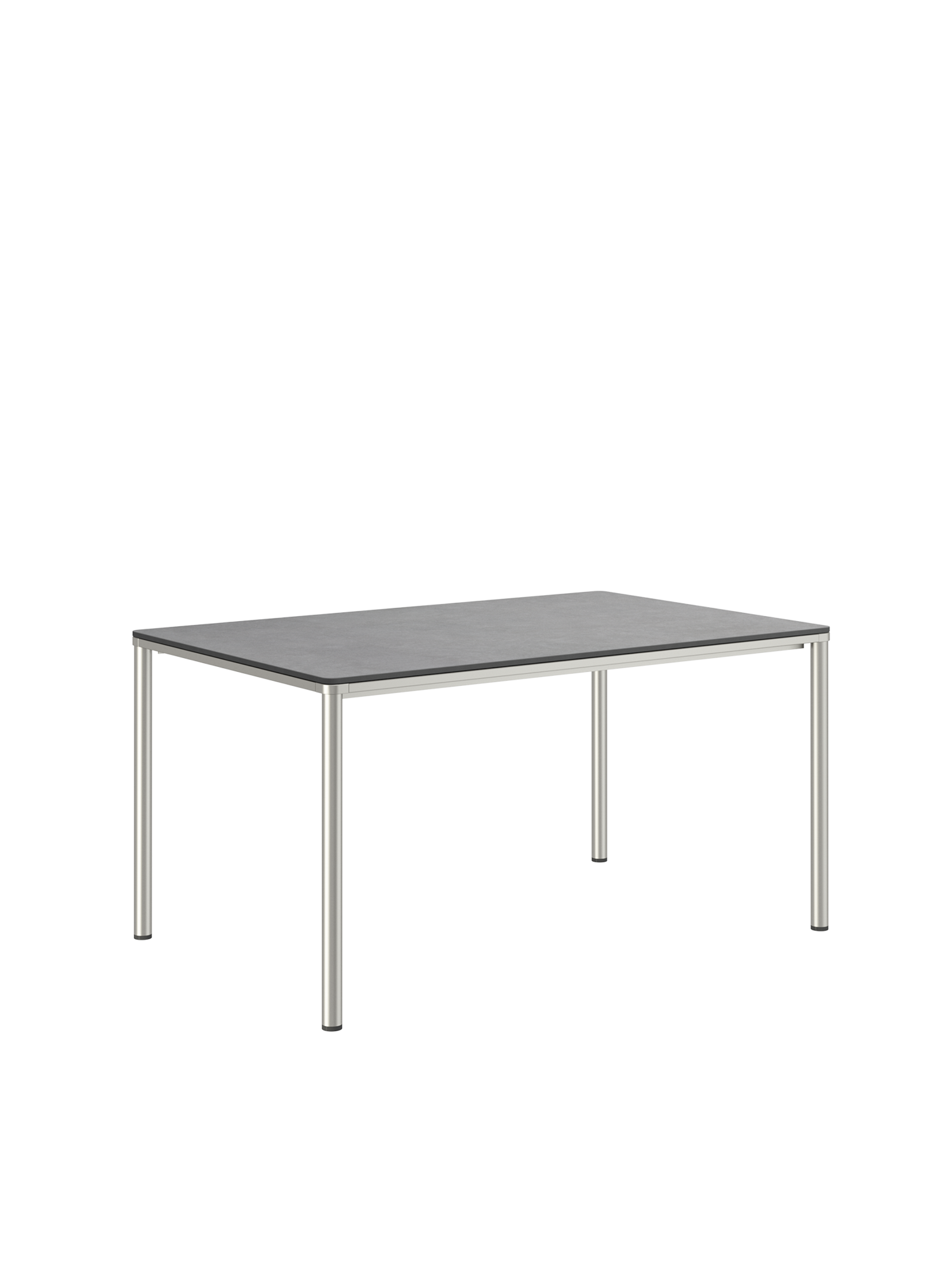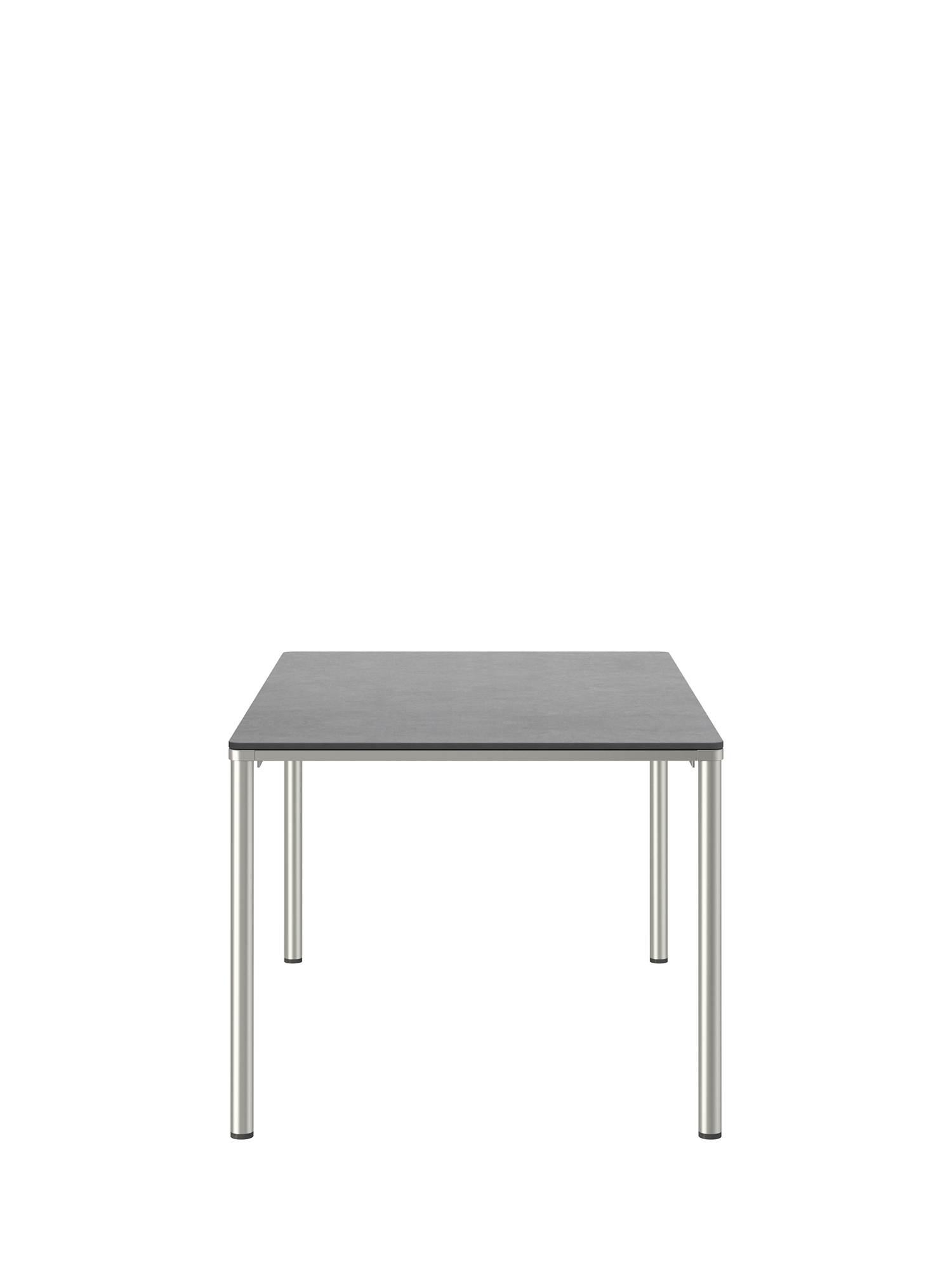 Eine umlaufende Zarge mit sanfter Rundung prägt das Design der Portland Tische. Sie sind der elegante Mittelpunkt jeder Gesellschaft. Die großzügigen Tischplatten aus dunklem Kunstharz ruhen auf vier schlanken Beinen, das solide Edelstahlgestell harmoniert perfekt mit den Stühlen unserer modernen Möbelserien.