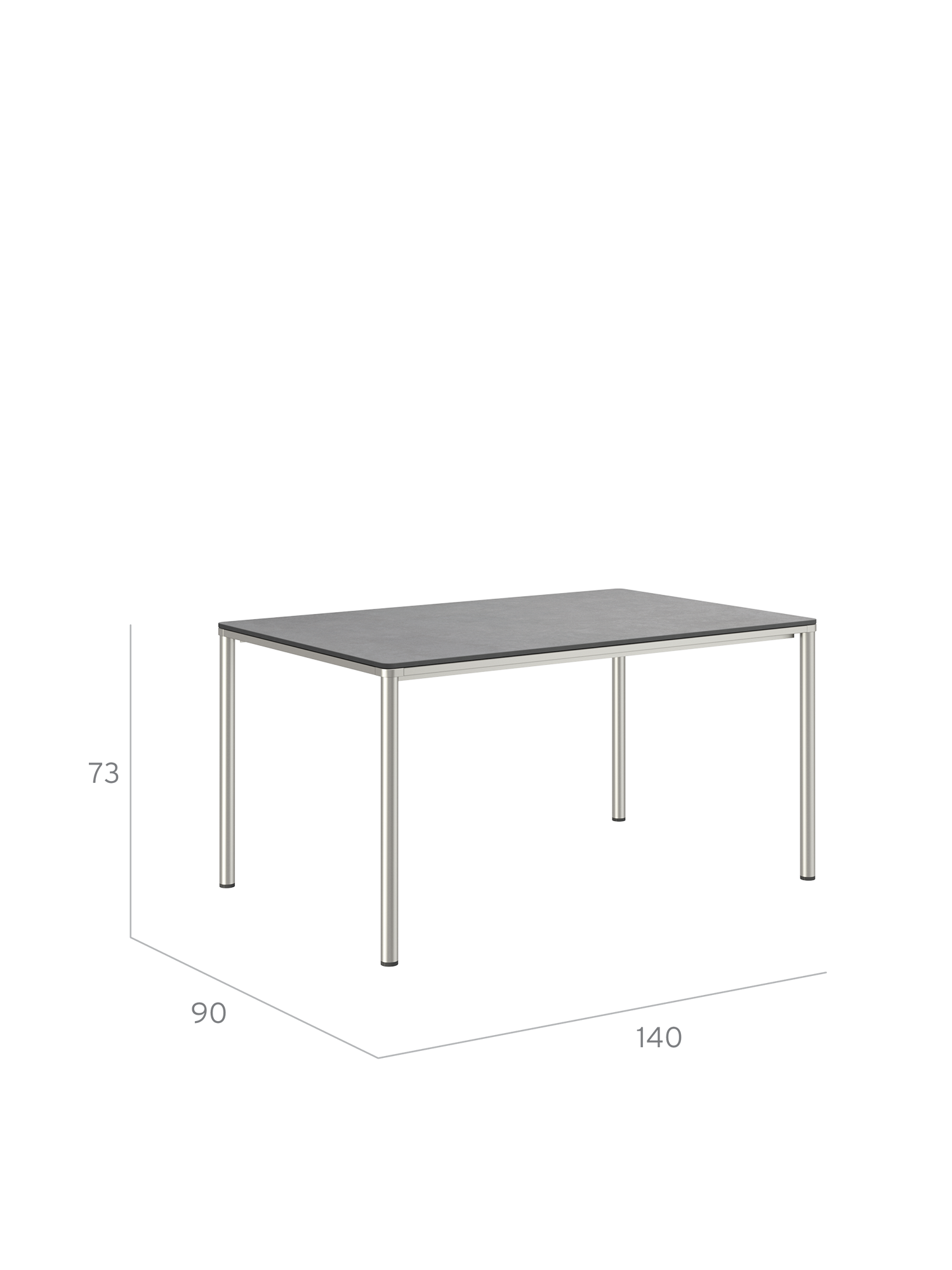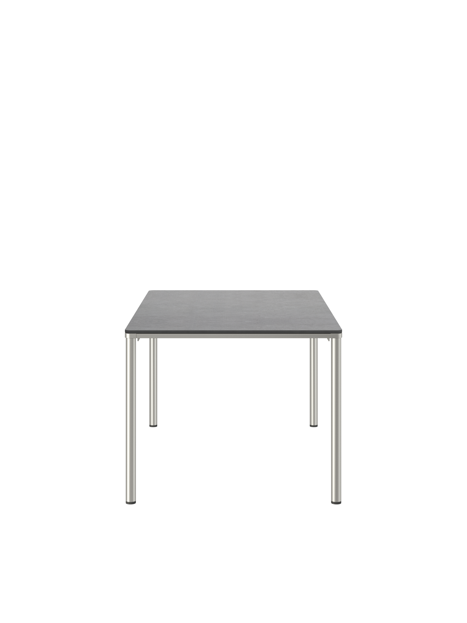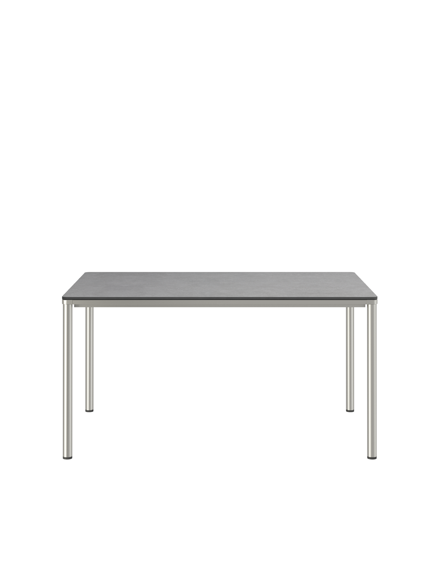 Eine umlaufende Zarge mit sanfter Rundung prägt das Design der Portland Tische. Sie sind der elegante Mittelpunkt jeder Gesellschaft. Die großzügigen Tischplatten aus dunklem Kunstharz ruhen auf vier schlanken Beinen, das solide Edelstahlgestell harmoniert perfekt mit den Stühlen unserer modernen Möbelserien.