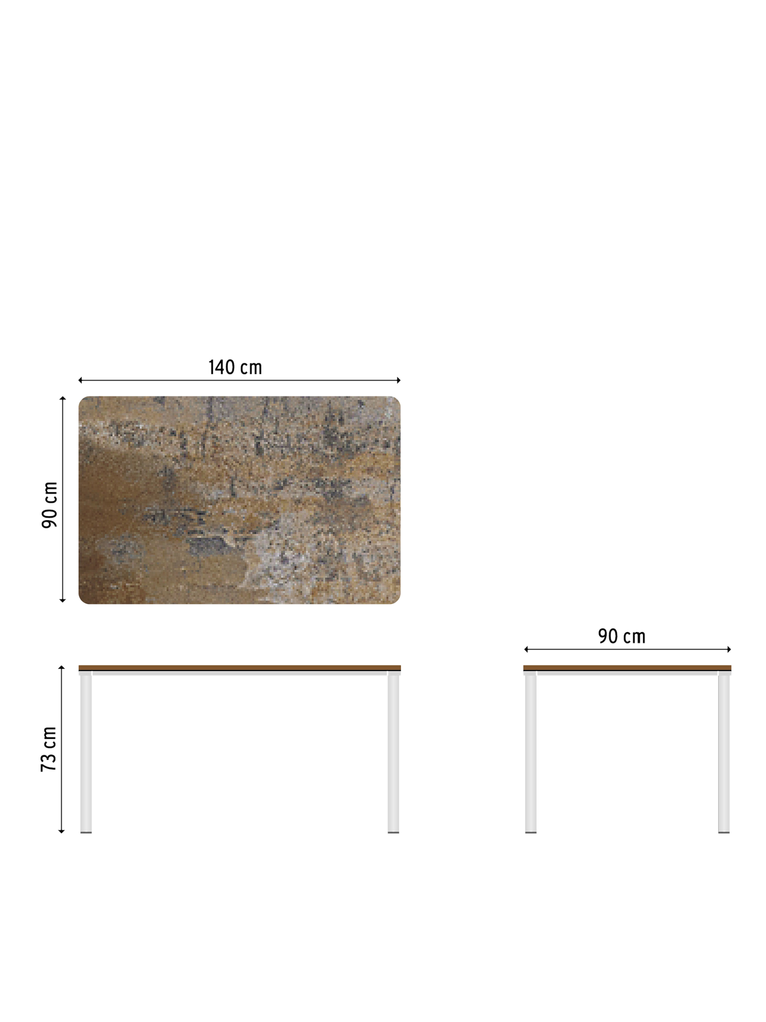 Portland Tisch Edelstahl/Kunstharz Patina Graubraun 140 x 90