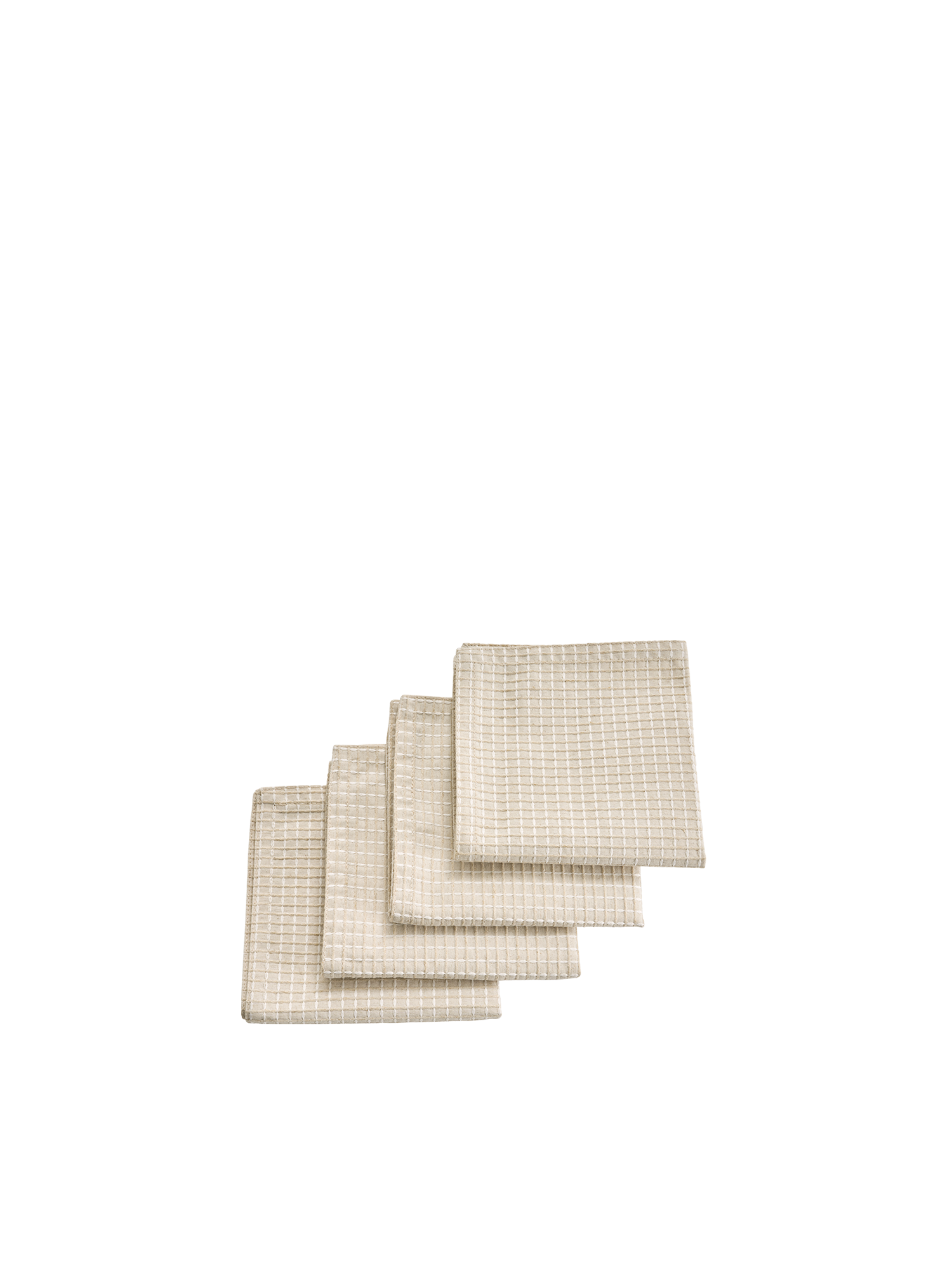 Die in Europa gefertigten Quadrado Servietten im 4er-Set interpretieren Tischkultur insofern nachhaltig, als sie sich für einen Schonwaschgang bei 30 Grad eignen und wiederwendbar sind. Das quadratische Muster ist nicht nur namensgebend, sondern weiß auch einen stilvollen Akzent zu setzen. Wir empfehlen, die Servietten nicht dauerhaft draußen zu lassen.