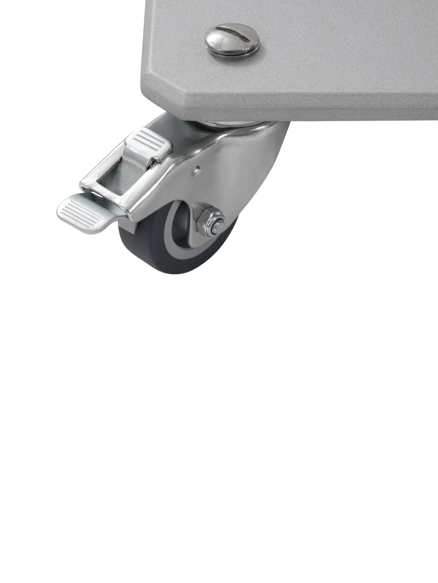Das Räderset mit gedoppelten Rollen sorgt für sicheren Stand auf Böden mit großen Spaltmaßen.
