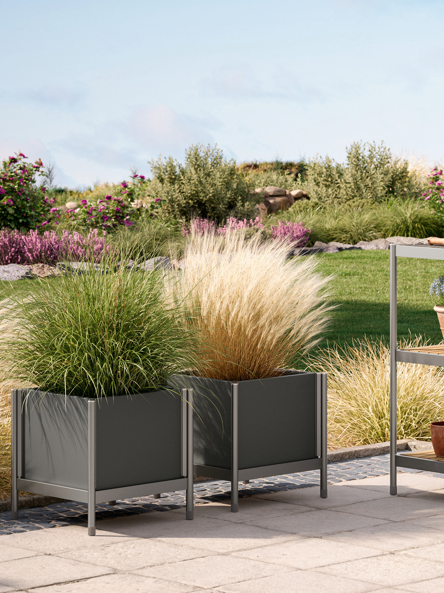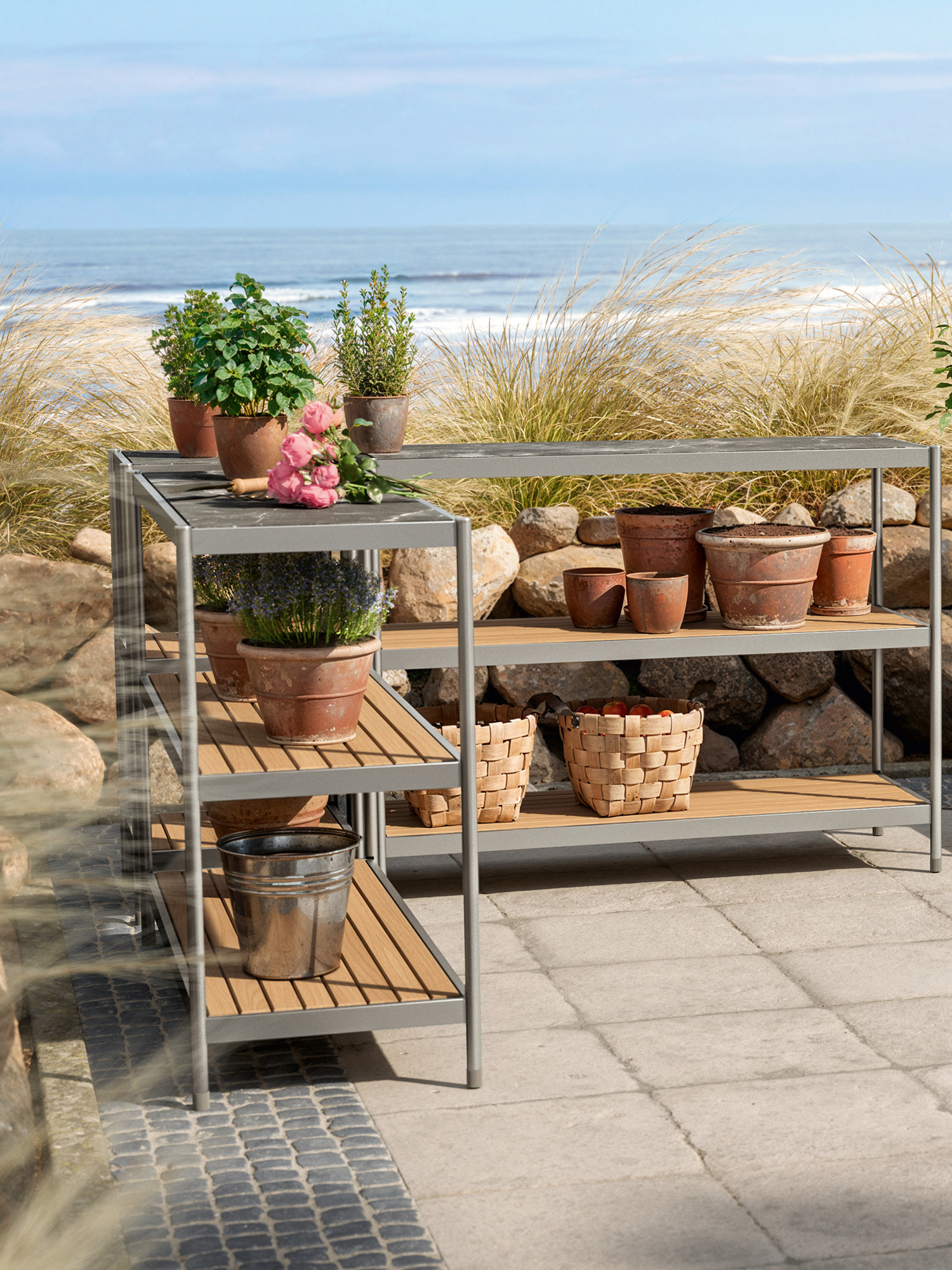 Zur modularen Rana Kollektion gehören hochwertige Regale in zwei Größen, ein Hochbeet und ein Pflanzkübel im korrespondierenden Design. In vollendeter Formensprache, mit aufeinander abgestimmten Maßen und durchdachter Funktionalität ergänzen sich die einzelnen Elemente auch als Ensemble, schaffen nützlichen Stauraum und dekorative Arrangements.