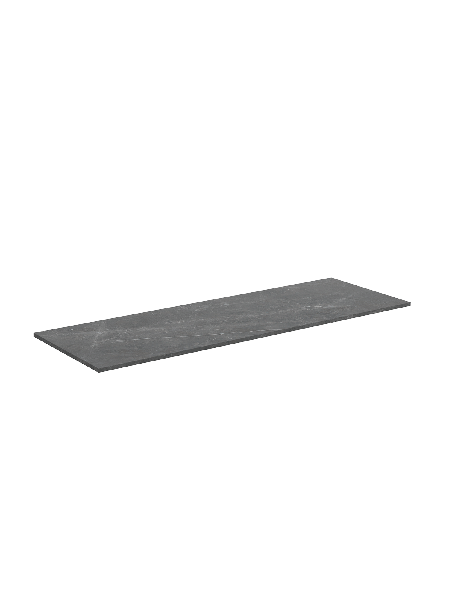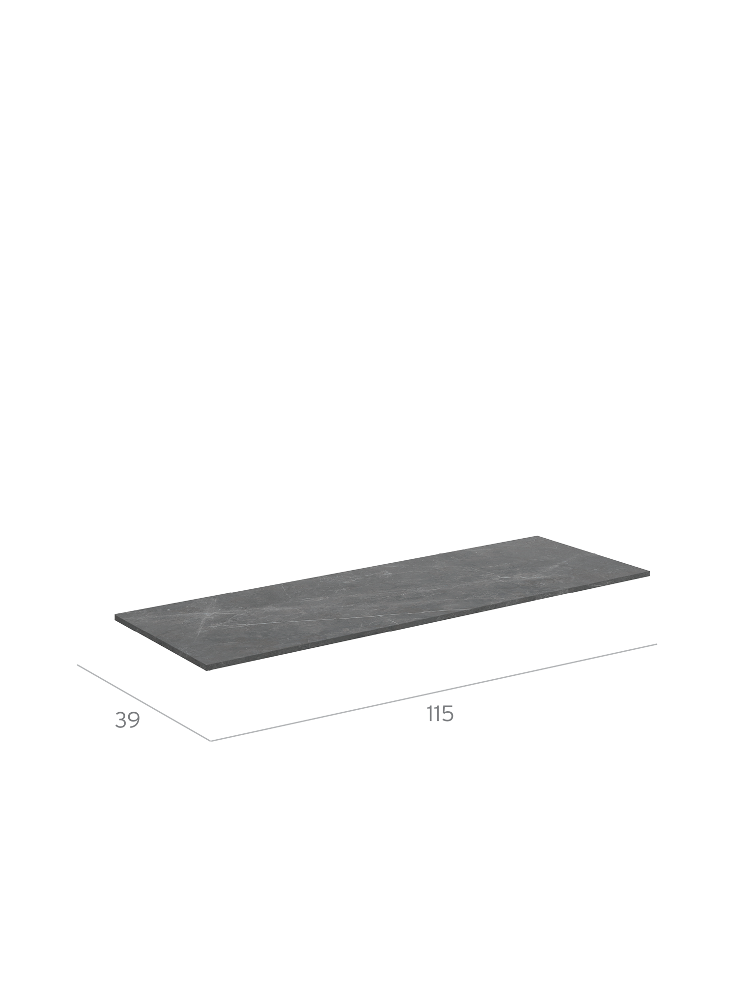 Der Einlegeboden aus fein gemaserter Keramik harmoniert perfekt mit dem eloxierten Aluminiumrahmen des passenden Rana Regals.