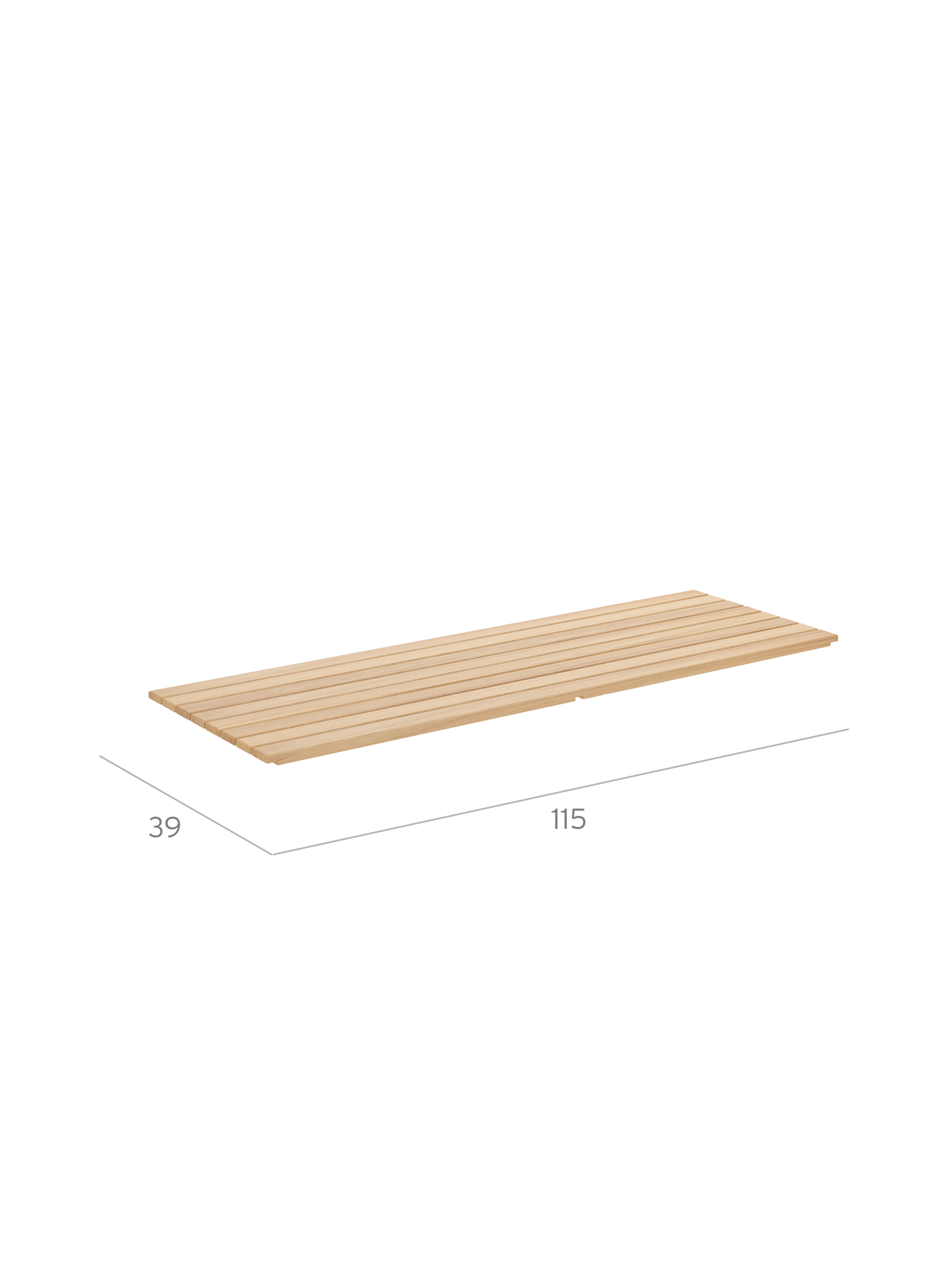 Der Regalboden aus hochwertigen Teakleisten lässt sich einfach in den Rahmen des rechteckigen Regalelements der Rana Kollektion einlegen. Für das Regal werden drei Einlegeböden benötigt. Sie sind als Zubehör in den Materialien Teak oder Keramik erhältlich und können ganz nach Wunsch miteinander kombiniert werden.