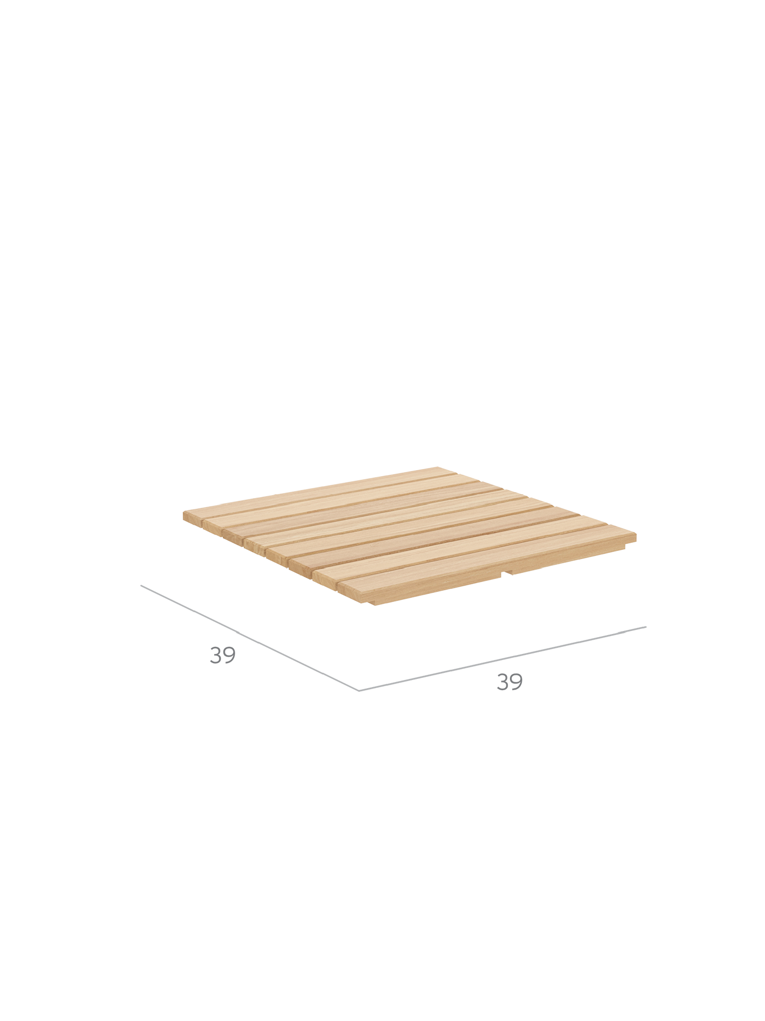 Der Regalboden aus hochwertigen Teakleisten lässt sich einfach in den Rahmen des quadratischen Regalelements der Rana Kollektion einlegen. Für das Regal werden drei Einlegeböden benötigt. Sie sind als Zubehör in den Materialien Teak oder Keramik erhältlich und können ganz nach Wunsch miteinander kombiniert werden.