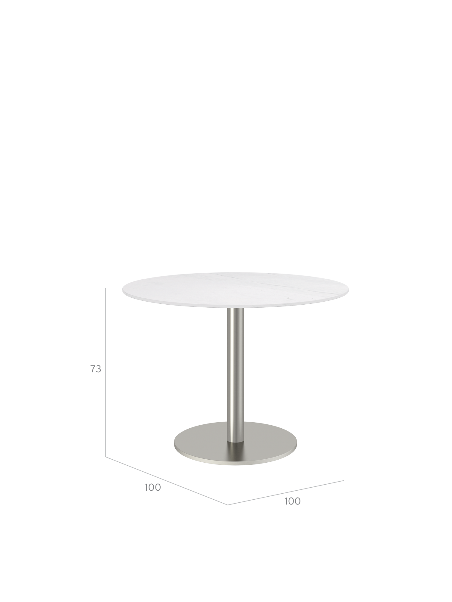 Ronda Mittelfusstisch Edelstahl rund 100 Tischplatte Keramik Weiss marmoriert