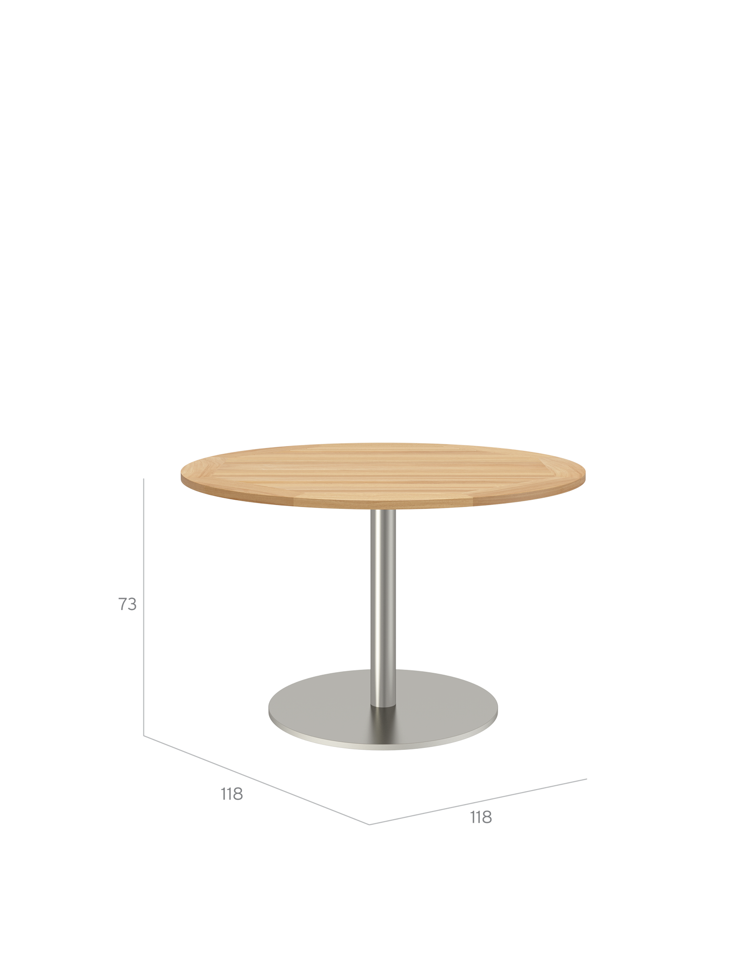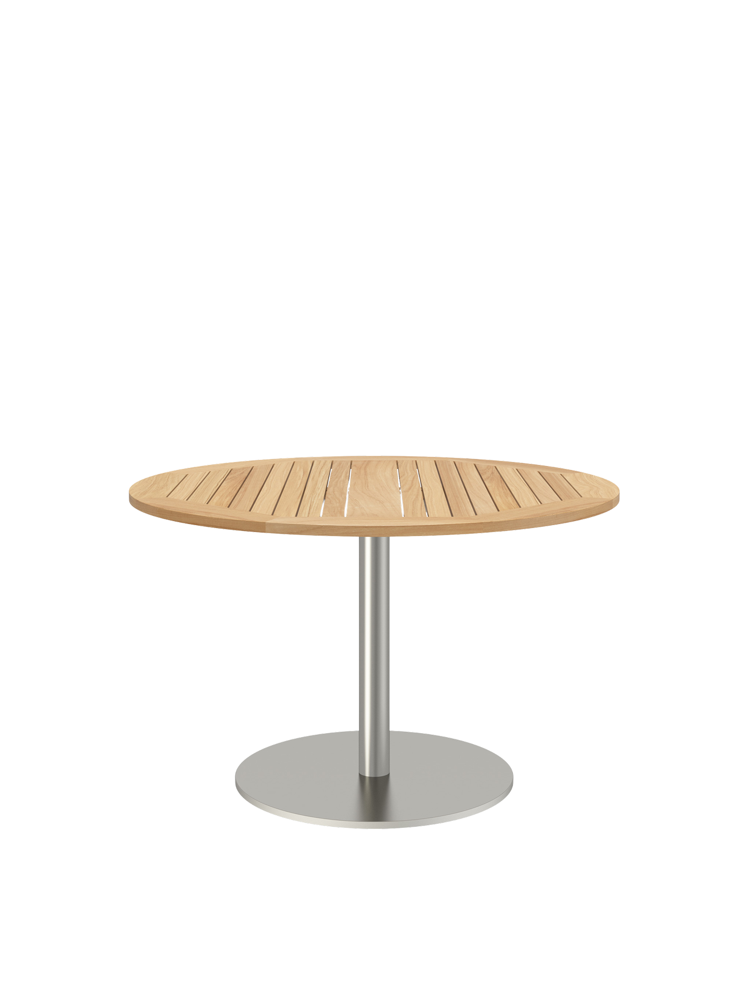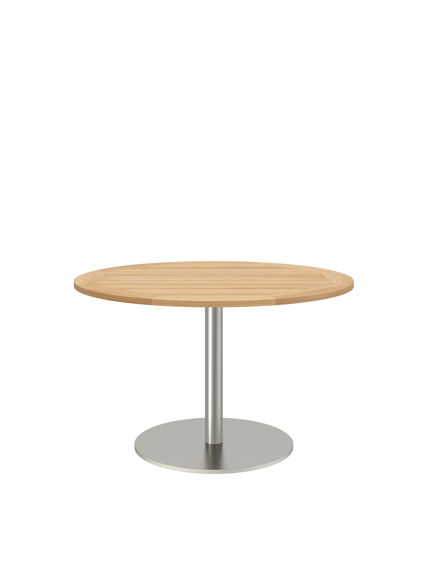 Ronda Mittelfusstisch Edelstahl rund 120 Tischplatte Teak