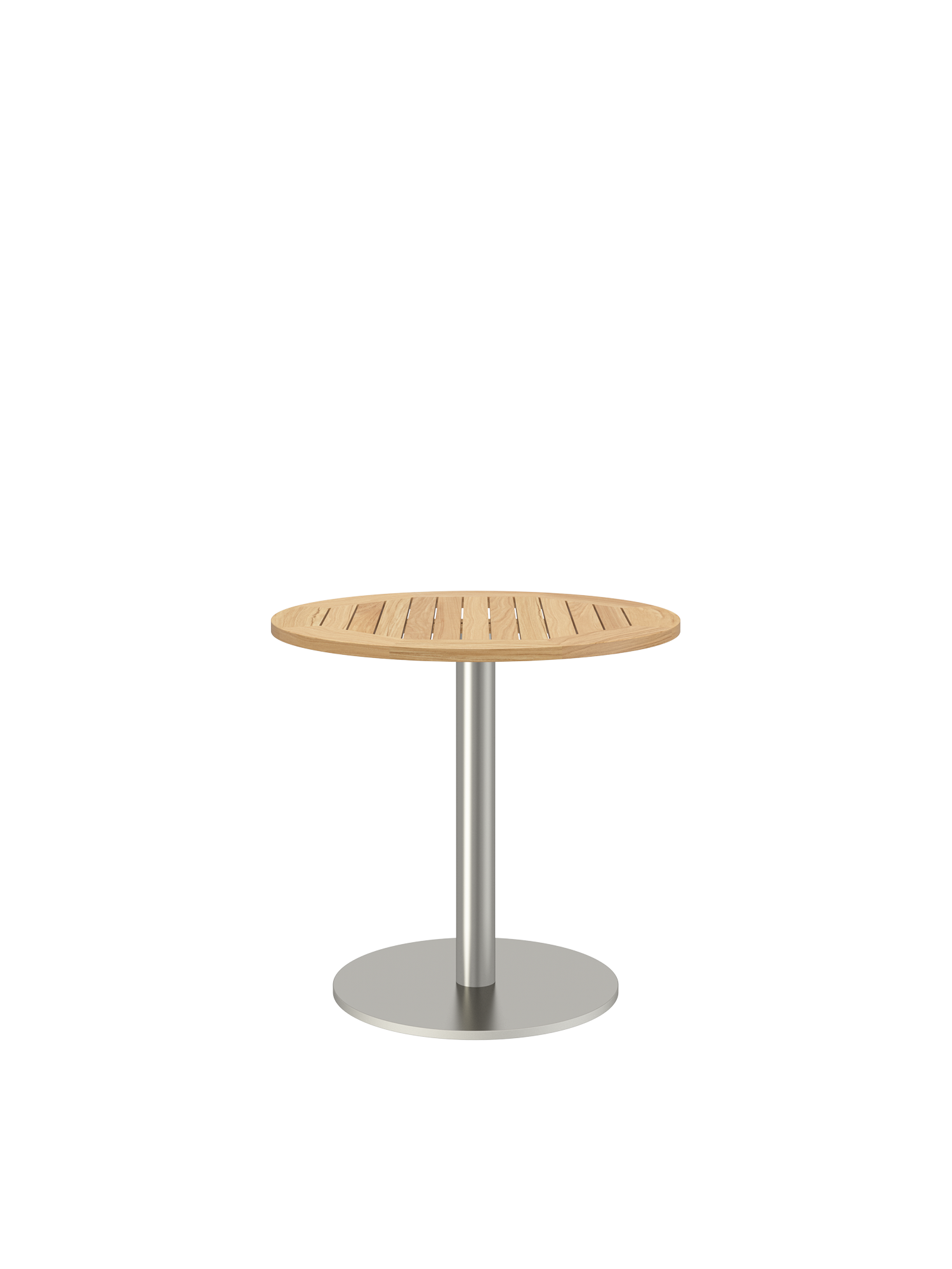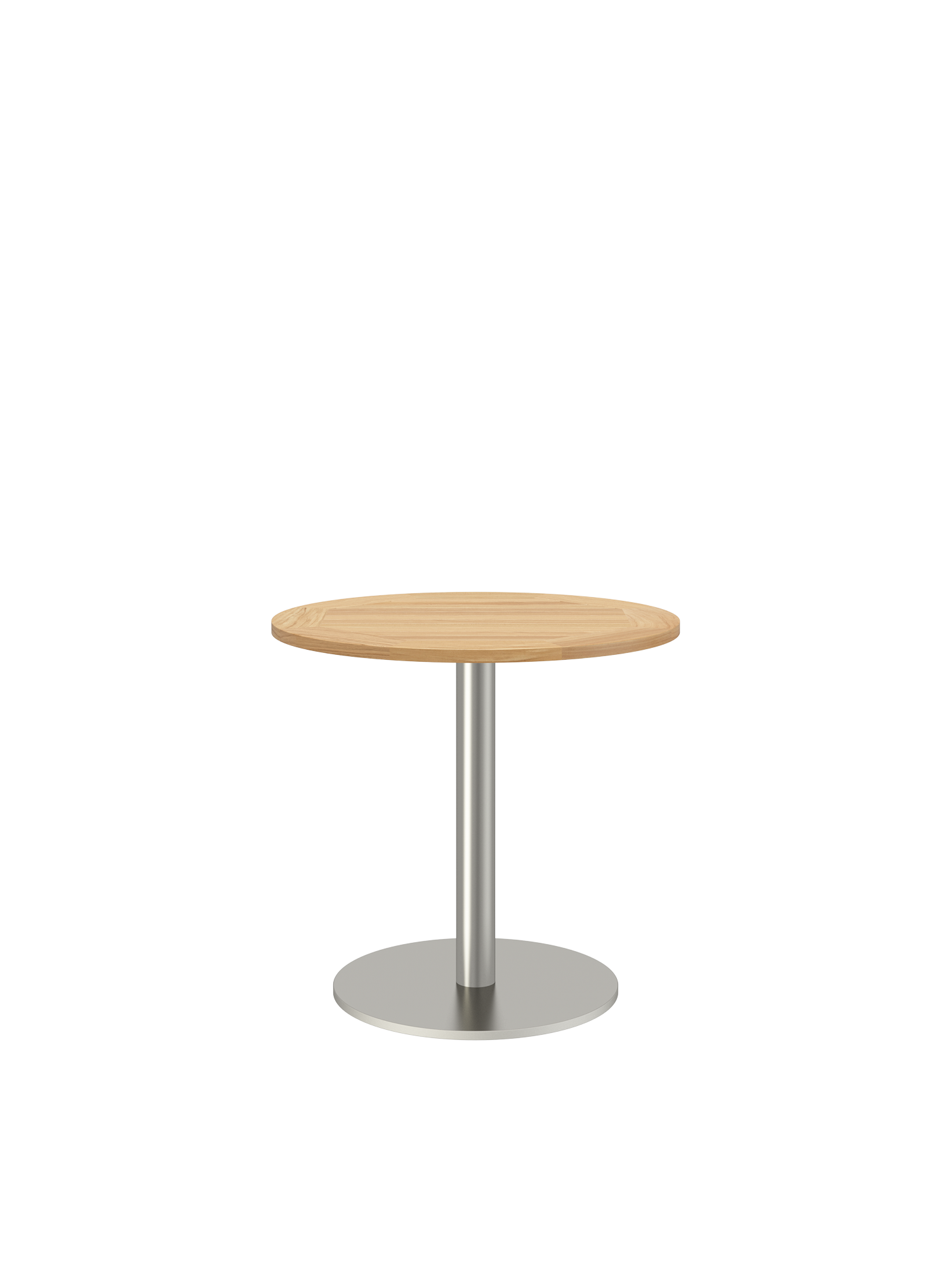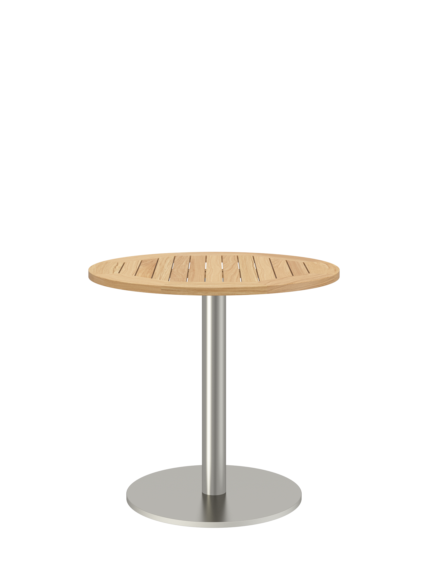 Ronda Mittelfusstisch Edelstahl rund 80 Tischplatte Teak