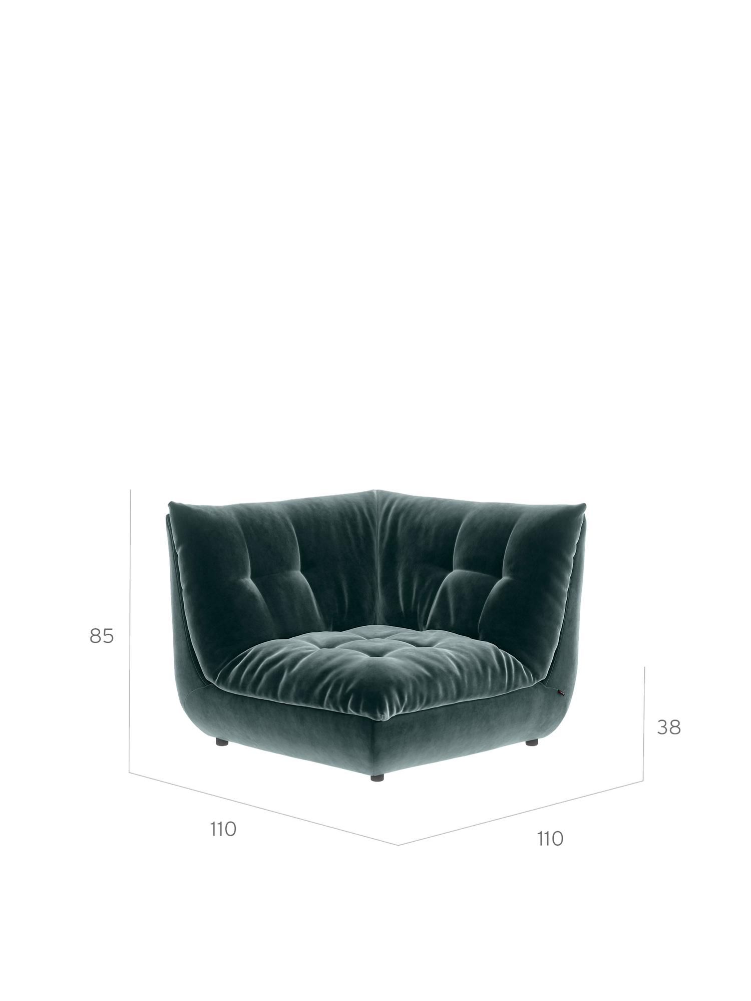 - Eschenholzkorpus mit voluminösen Polstern und einem Bezug aus Veloursstoff