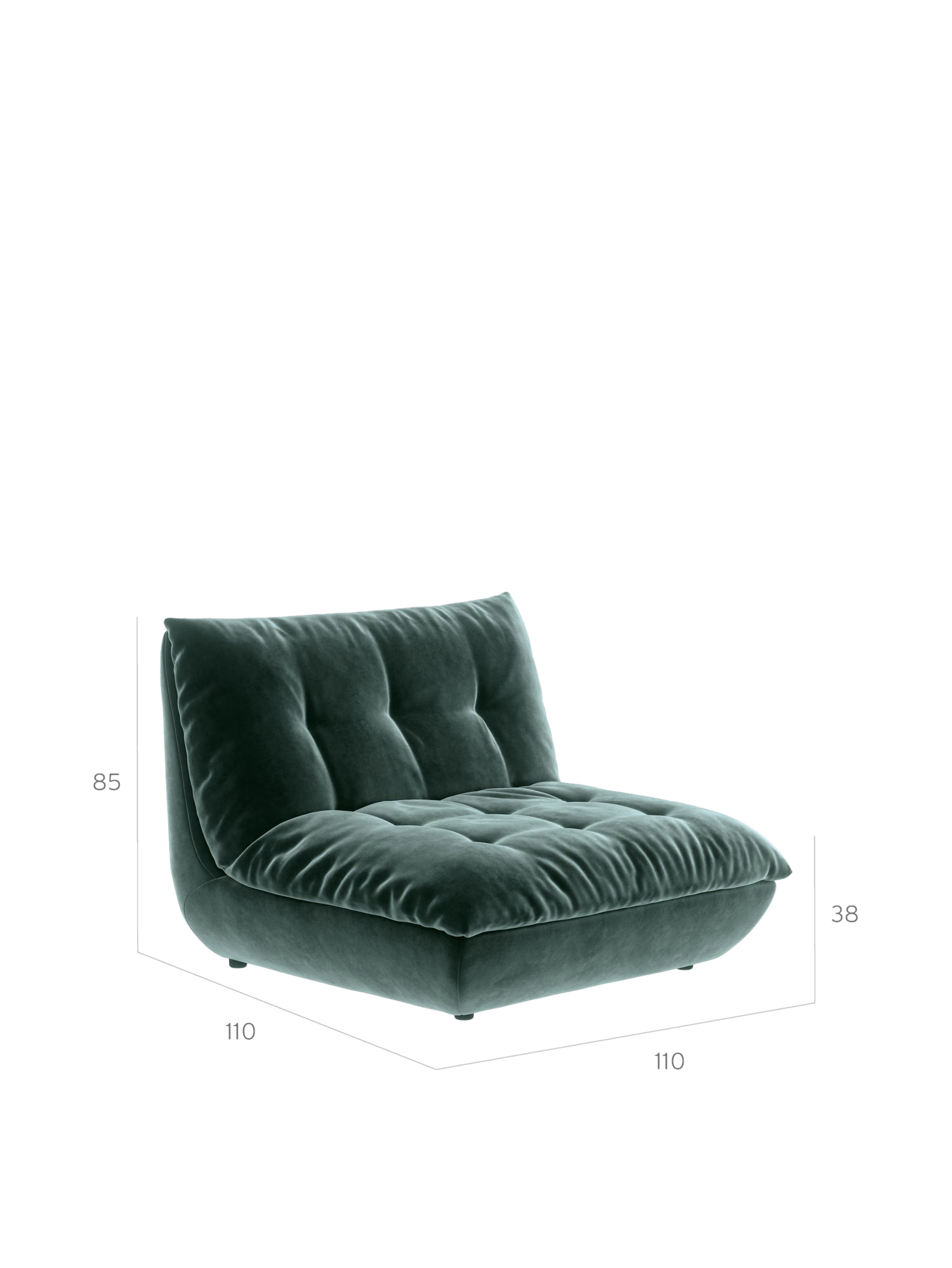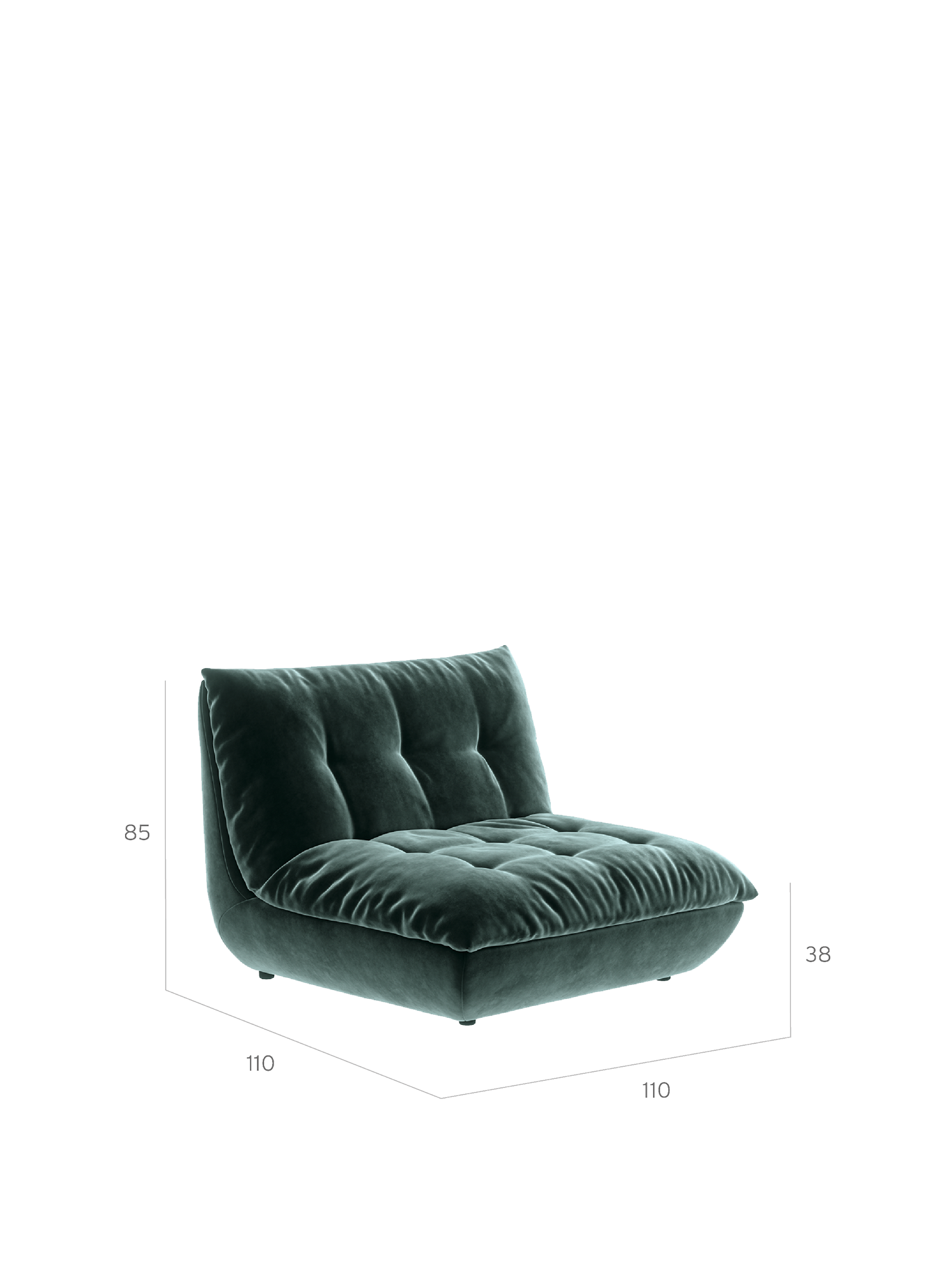 - Eschenholzkorpus mit voluminösen Polstern und einem Bezug aus Veloursstoff