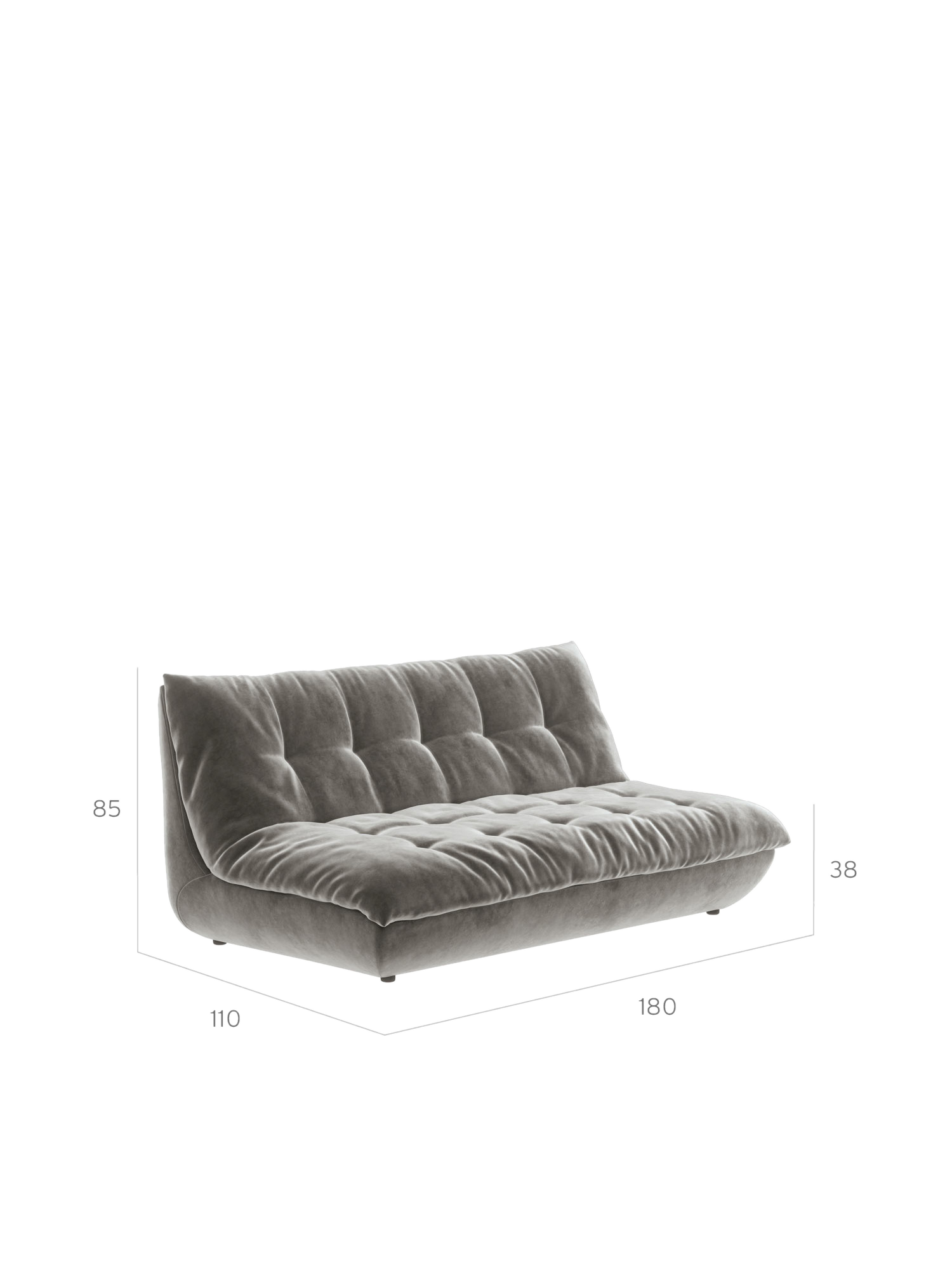 - Eschenholzkorpus mit voluminösen Polstern und einem Bezug aus Veloursstoff