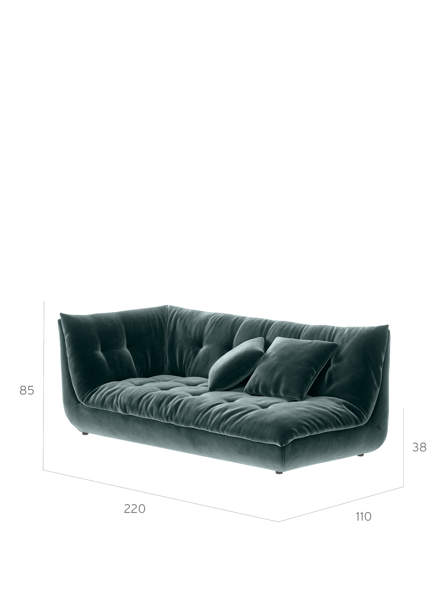 Das harmonische Zusammenspiel von konkaven und konvexen Formen ist Balsam für den Rücken und die voluminösen Polster versprechen sowohl in Sitz- als auch in Liegeposition maximalen Komfort.