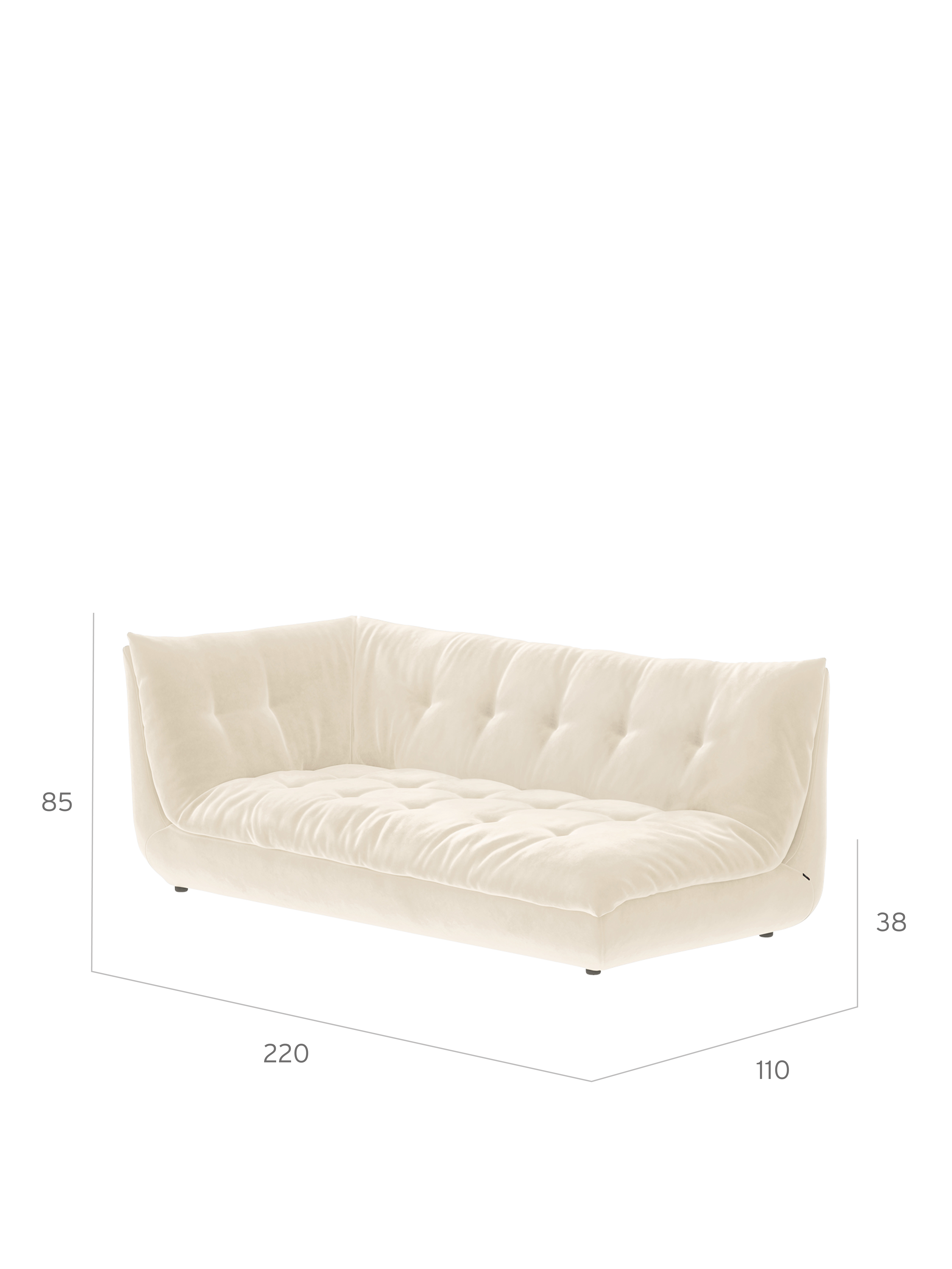 - Eschenholzkorpus mit voluminösen Polstern und einem Bezug aus Veloursstoff
