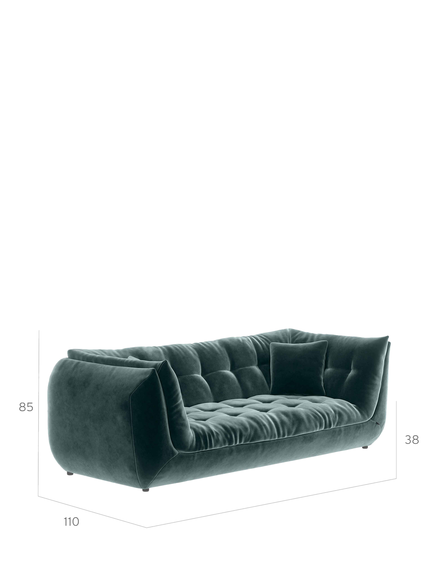 - Eschenholzkorpus mit voluminösen Polstern und einem Bezug aus Veloursstoff