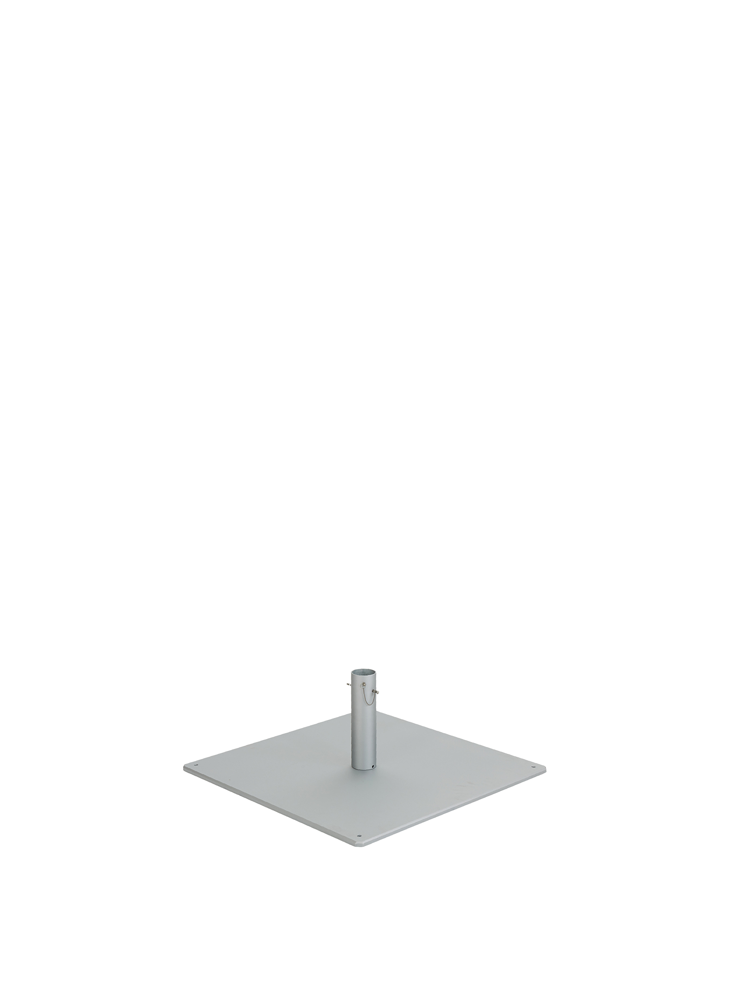 Abmessungen: Breite 80 x Tiefe 80 x Höhe (inklusive Schirmrohr) 31 cm. Stärke der Platte: 15 mm, Gewicht: 76 kg.