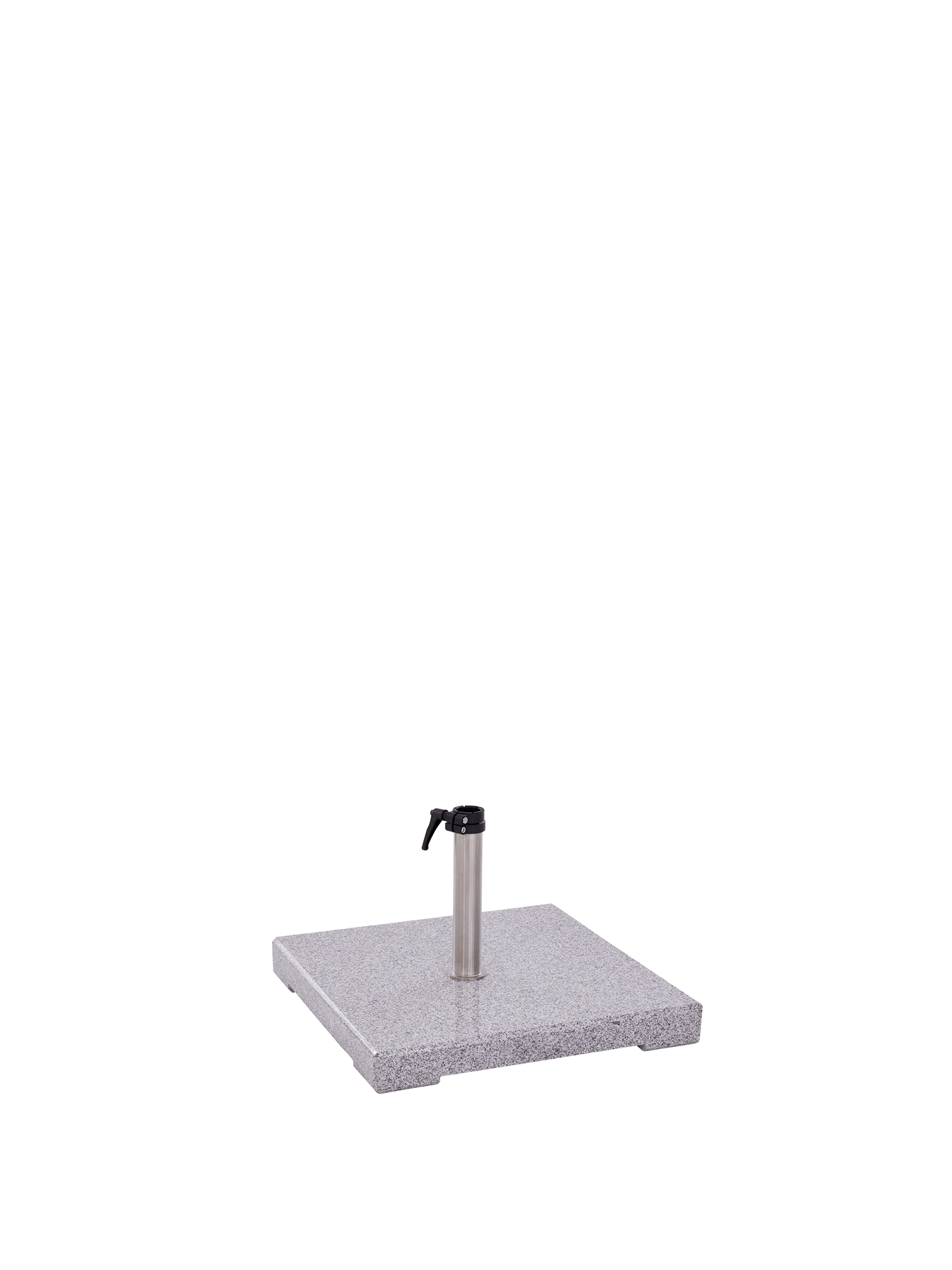 Abmessungen: Breite 70 x Tiefe 70 x Höhe (inklusive Schirmrohr) 45 cm. Stärke der Platte: 90 mm, Gewicht: 90 kg.