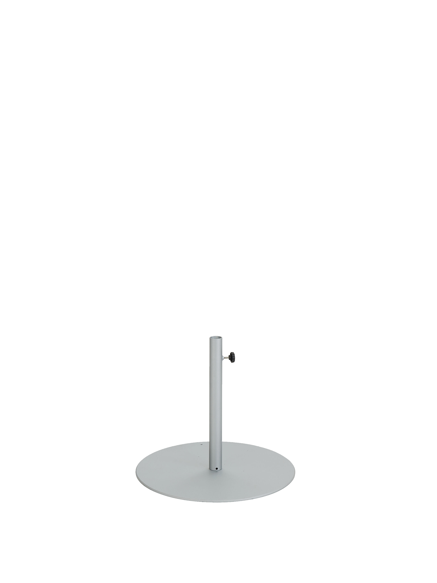 Abmessungen: Ø 60 x Höhe (inklusive Schirmrohr) 50 cm. Stärke der Platte: 8 mm, Gewicht: 20 kg.