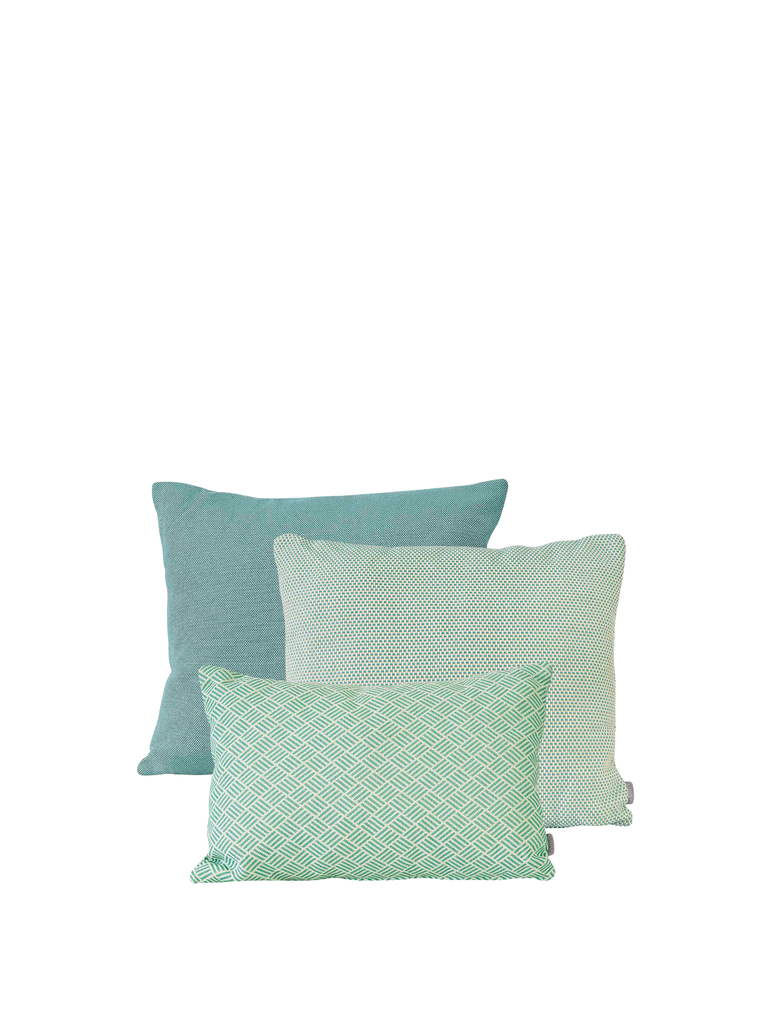 Das Kissenset Sinfonia Bleu besteht aus drei Zierkissen der Serien Rondo, Andante und Allegro in stimmigen Blautönen.