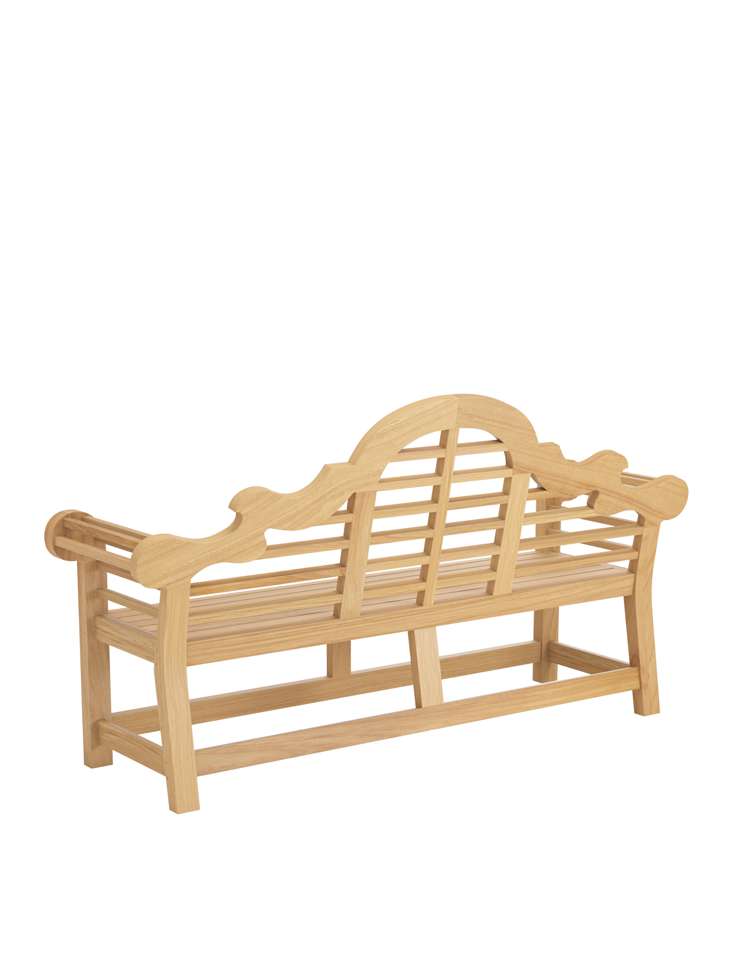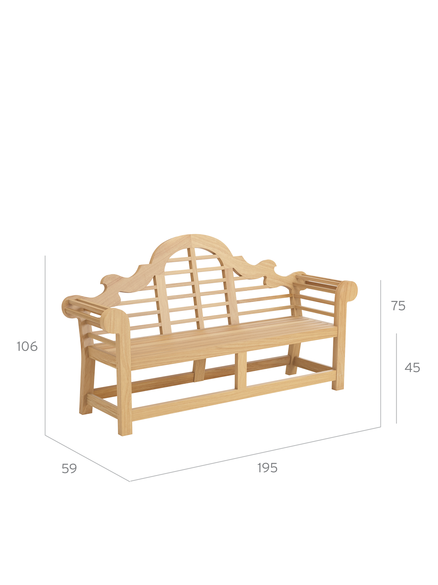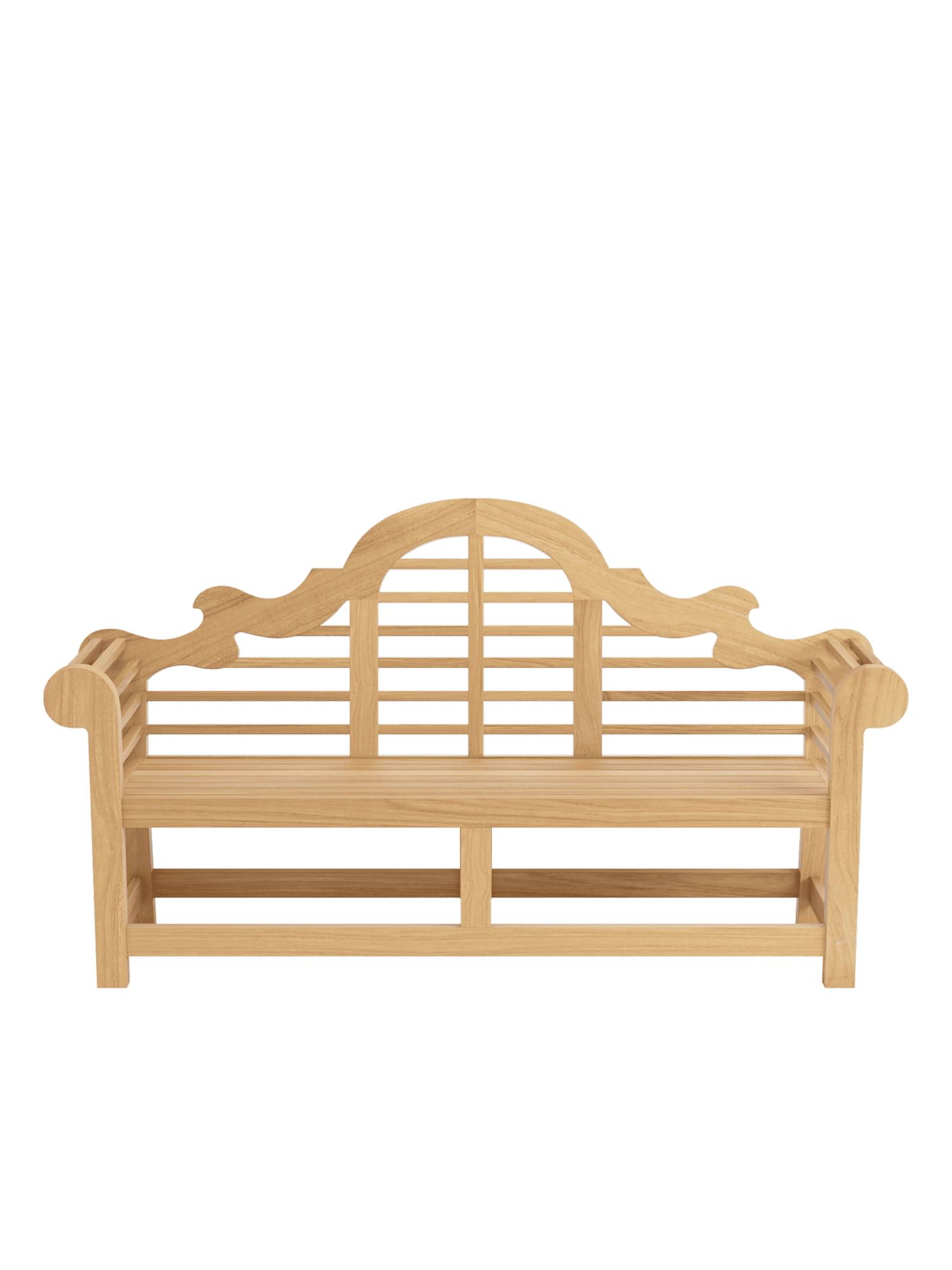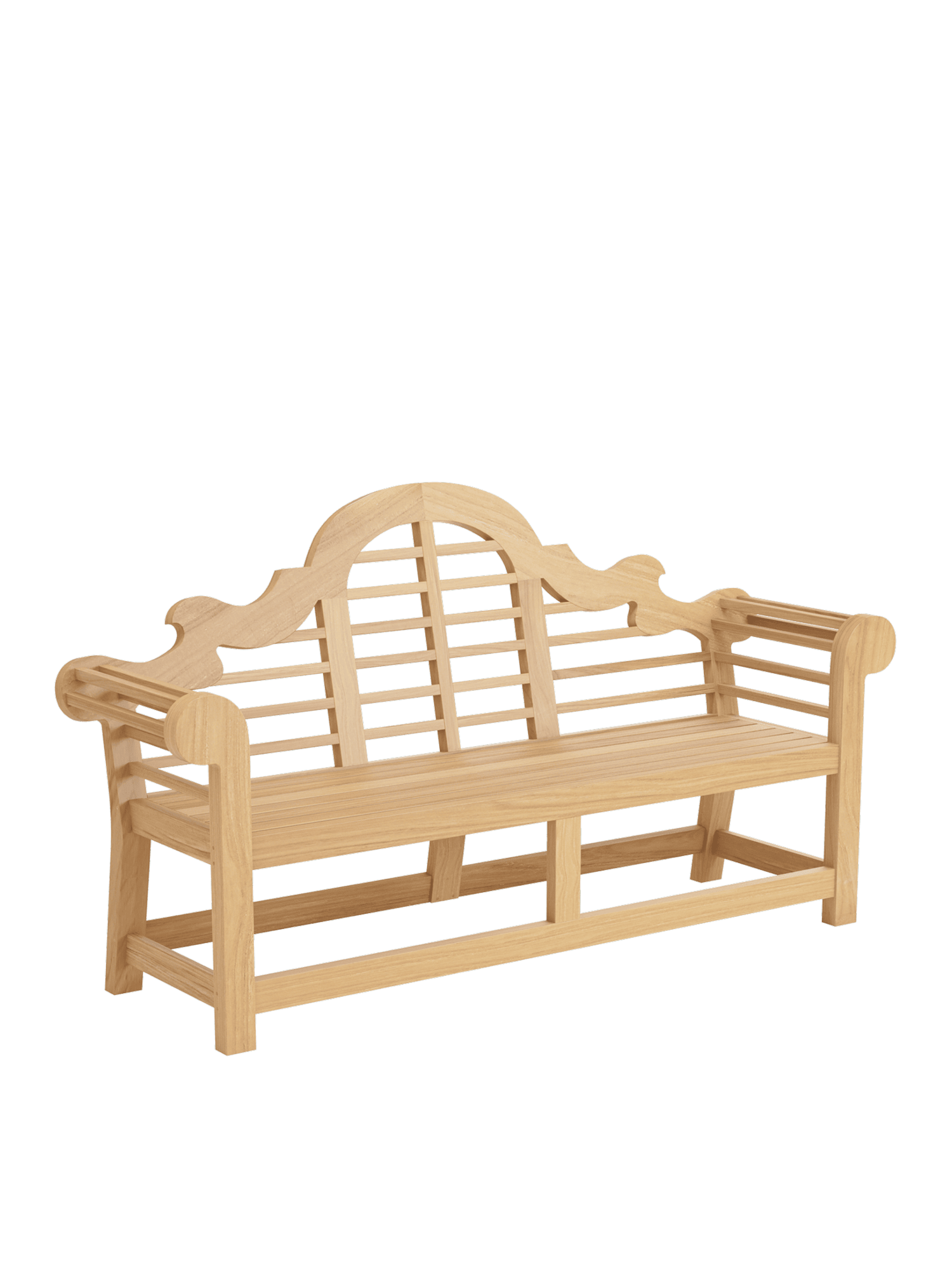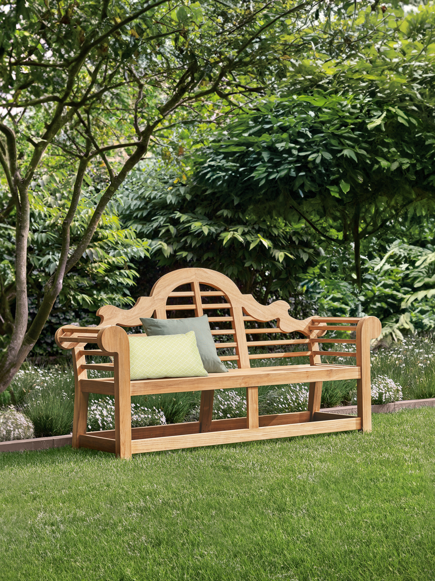Mächtig und filigran zugleich, erhaben wie ein Thron und ebenso bequem, adelt die Bank als Zierde der Natur den schönsten Platz im Freien. Aus massivem Teak, ein Muster an Beständigkeit, entwickelt sie im Lauf der Zeit ihre charakteristische silbergraue Patina. Typisch englisch – wie ihr historisches Vorbild aus dem berühmten Park von Sissinghurst in der Grafschaft Kent.