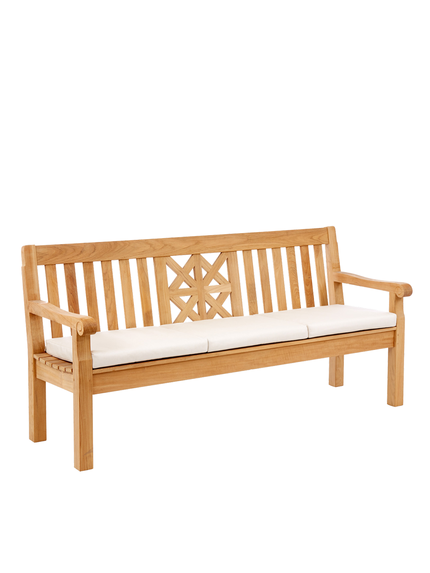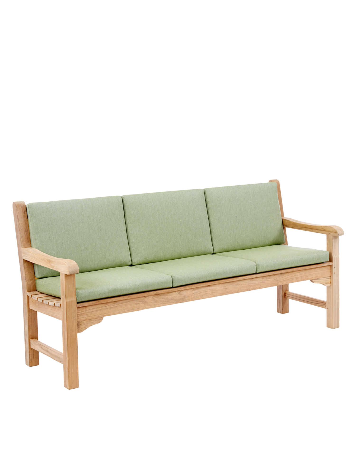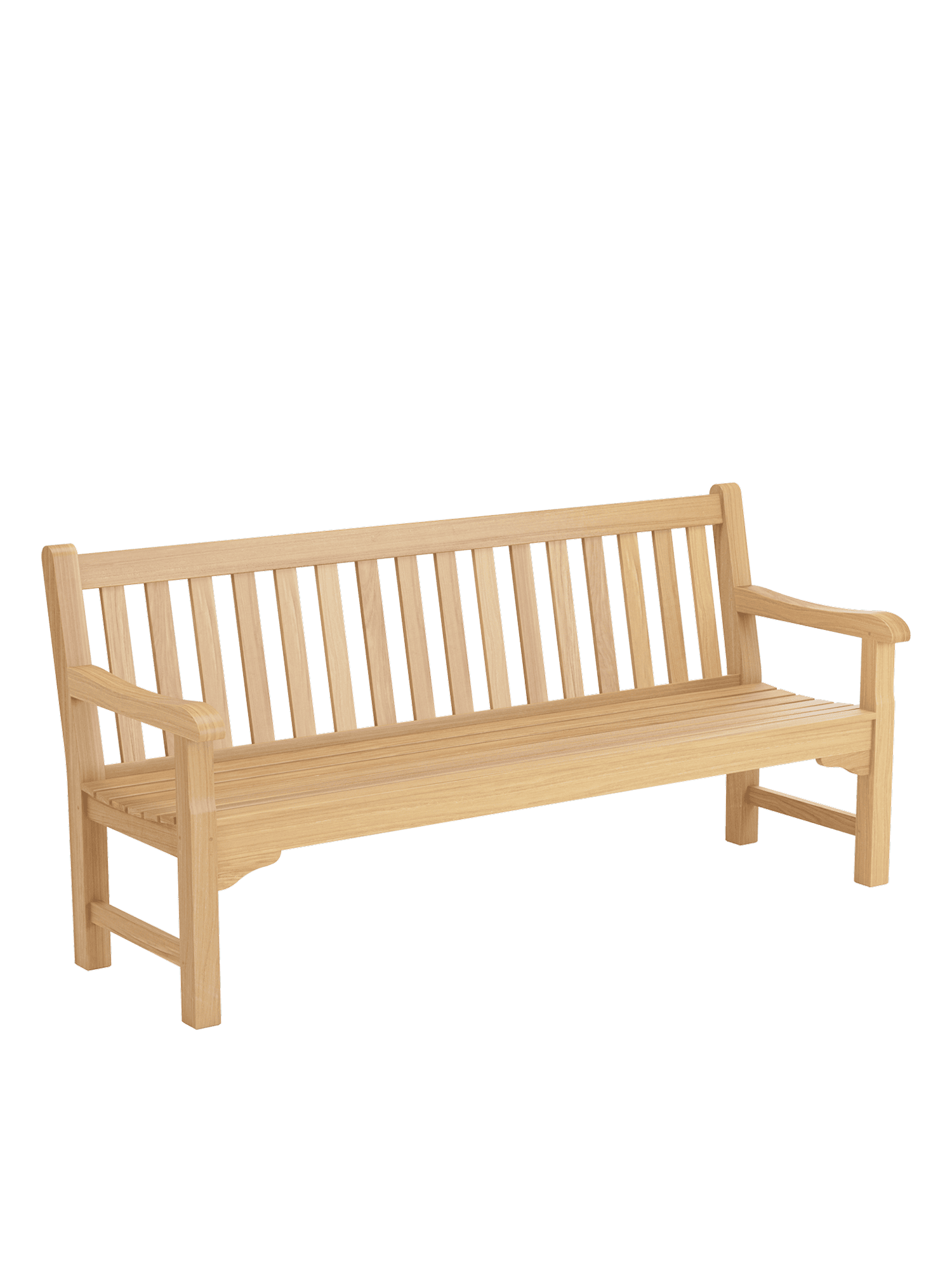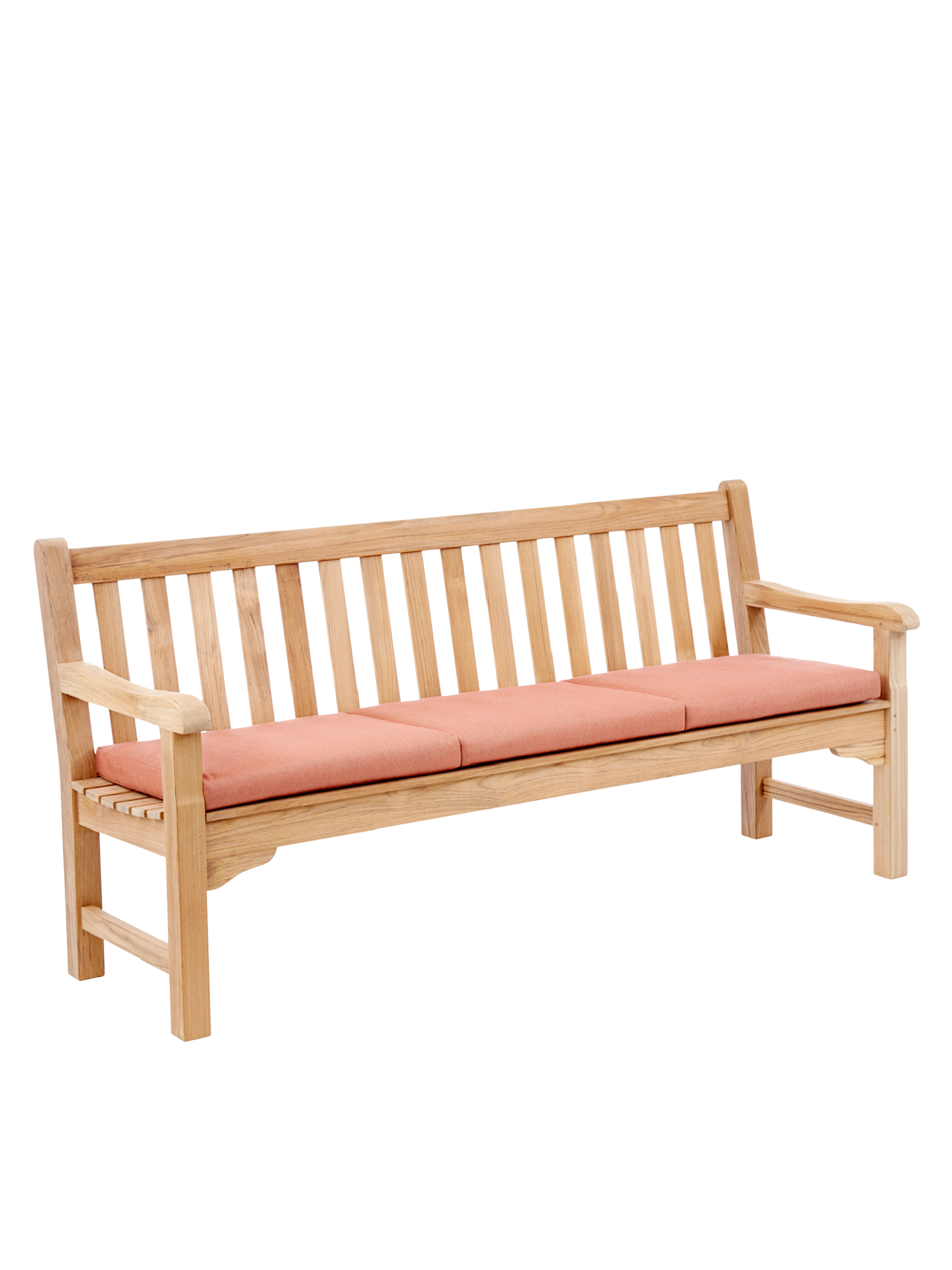 Wer mit Hingabe Rasen mäht und Blumen gießt, darf sich auf englischer Tradition ausruhen. Wer einfach nur die Sonne genießen will, auch. Klassisches Teakdesign adelt jeden Ort. In vier verschiedenen Größen verwöhnt die Bank mit schmeichelnd glatten Oberflächen.