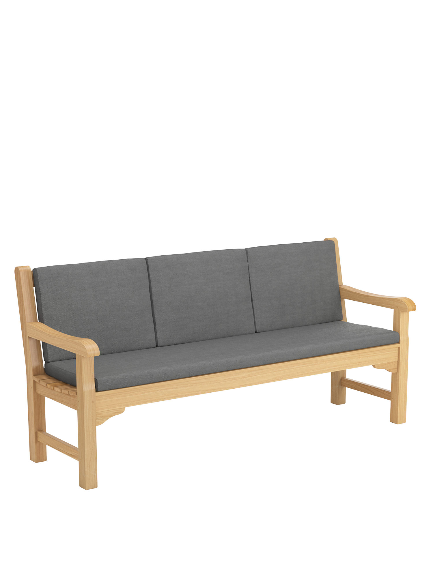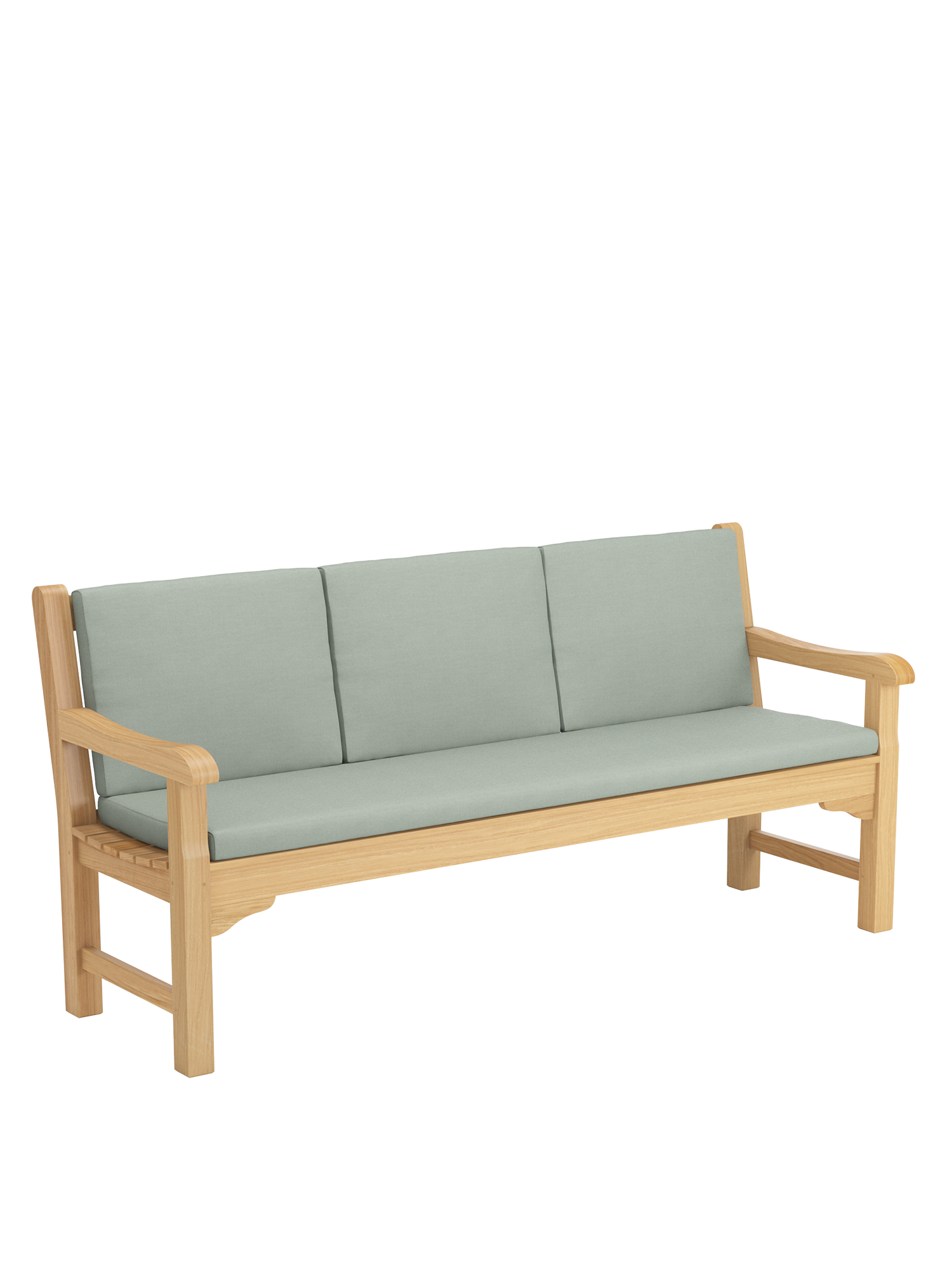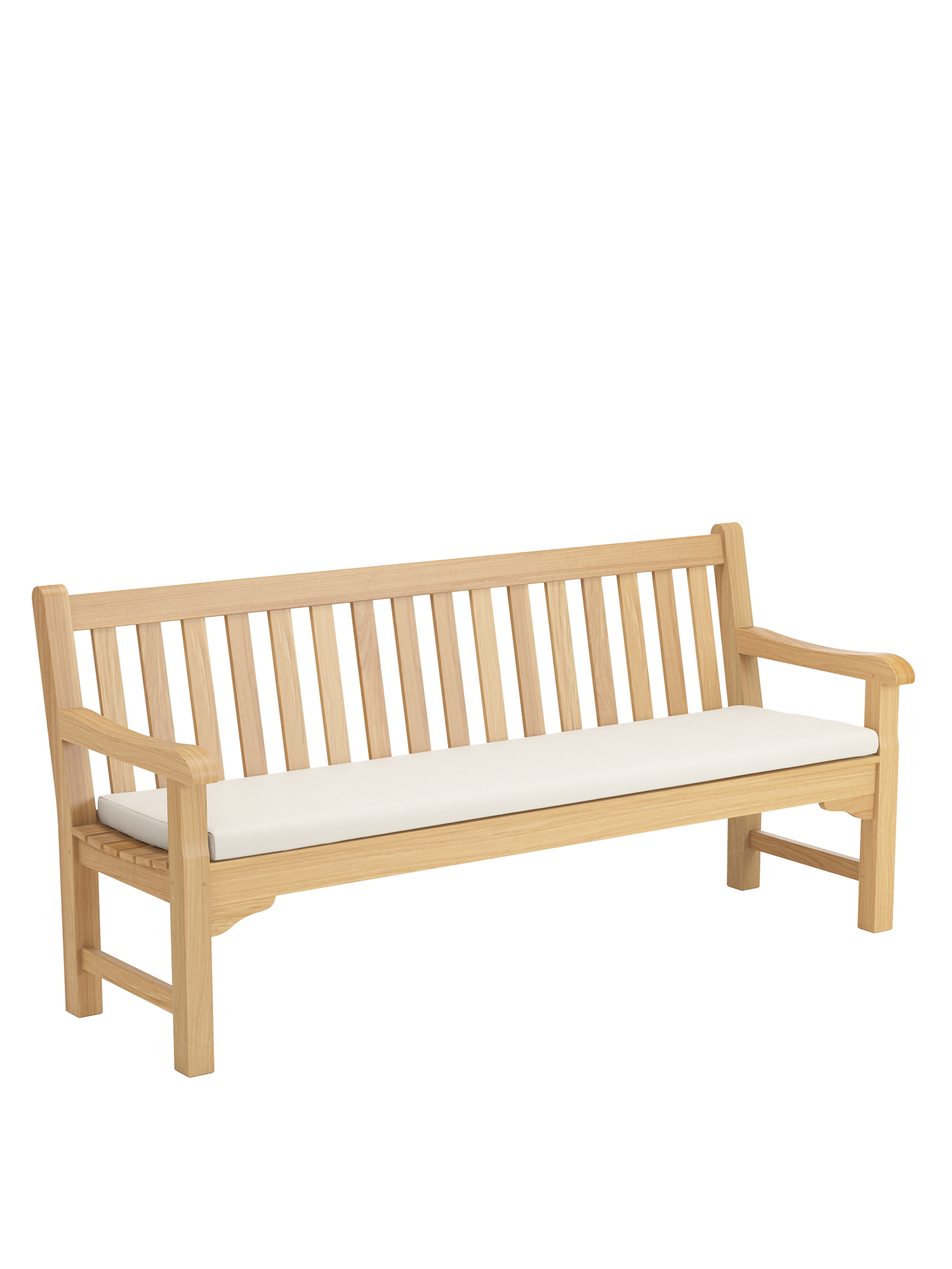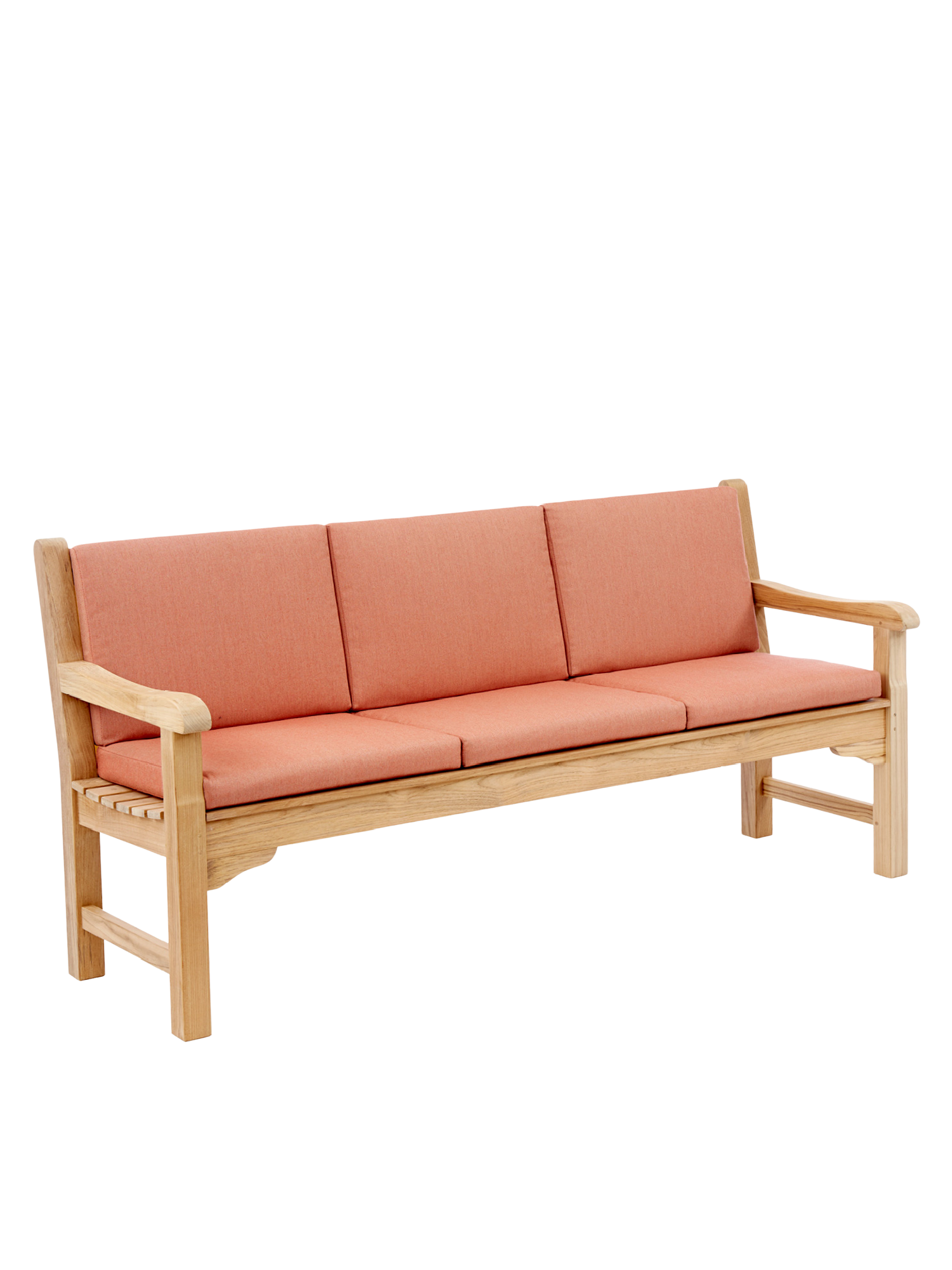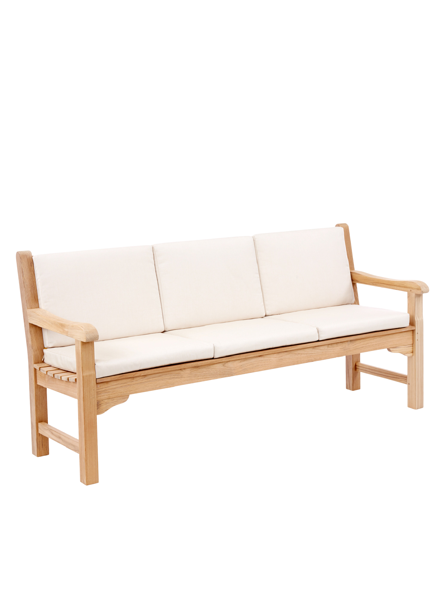 Wer mit Hingabe Rasen mäht und Blumen gießt, darf sich auf englischer Tradition ausruhen. Wer einfach nur die Sonne genießen will, auch. Klassisches Teakdesign adelt jeden Ort. In vier verschiedenen Größen verwöhnt die Bank mit schmeichelnd glatten Oberflächen.