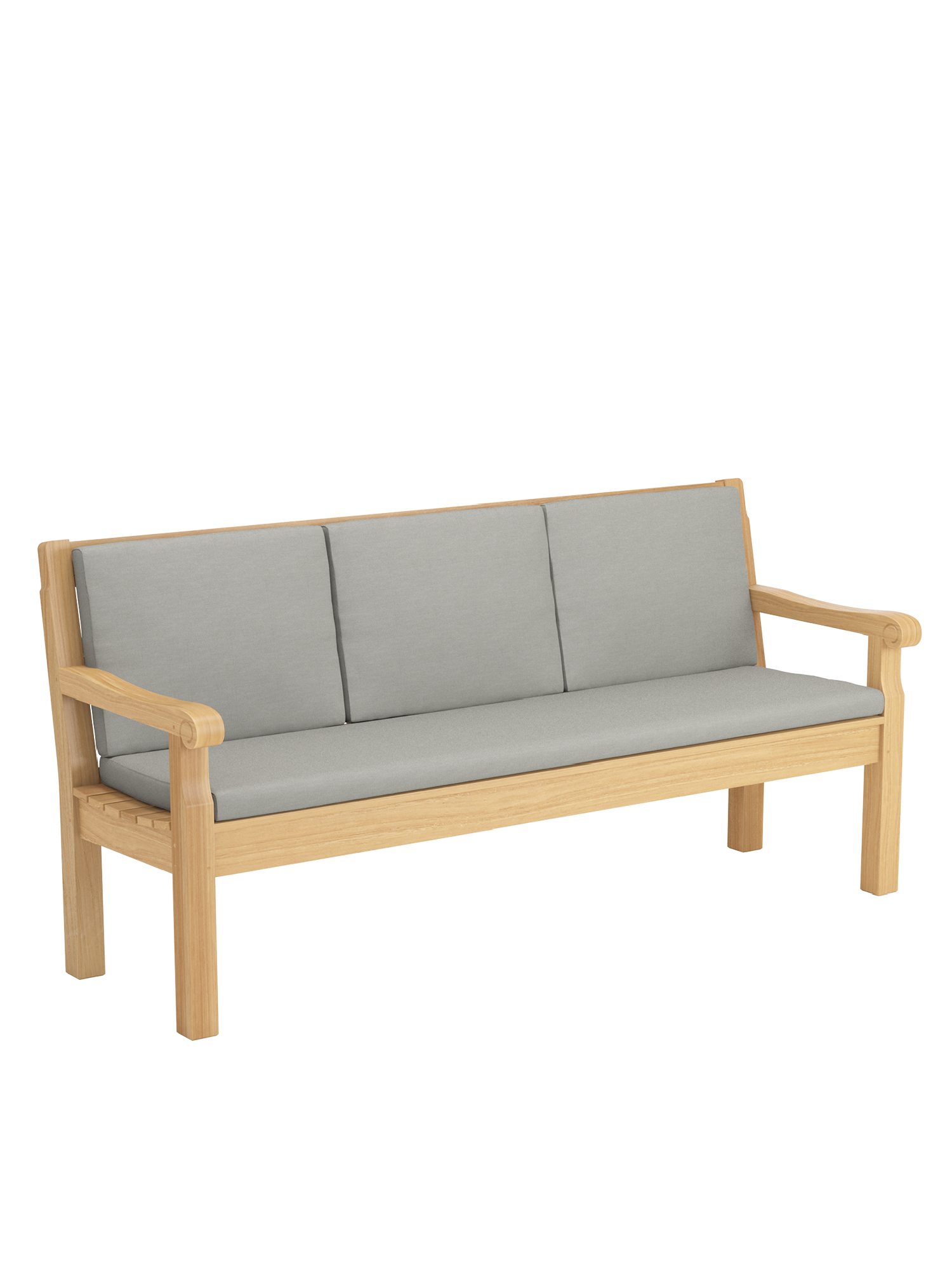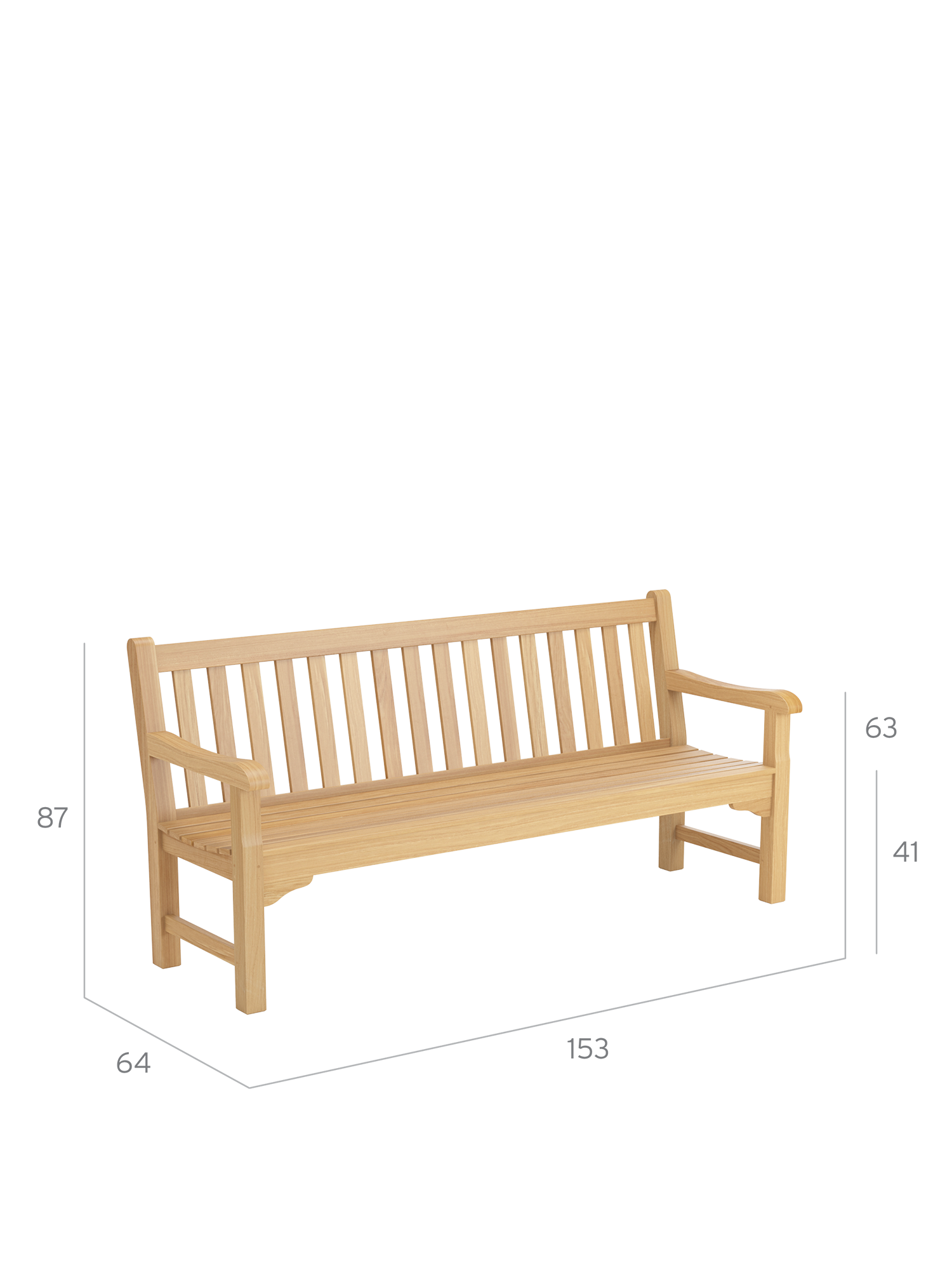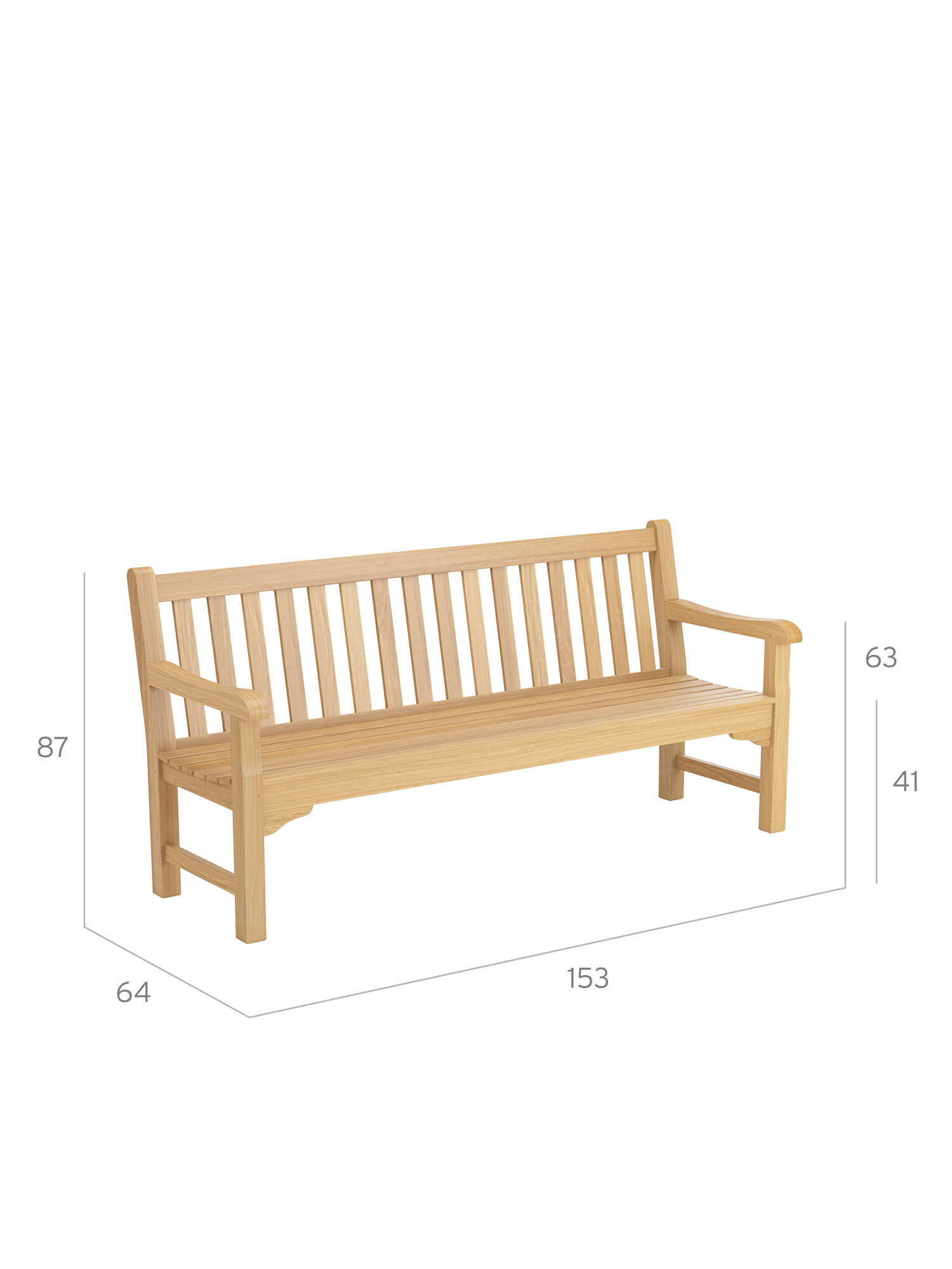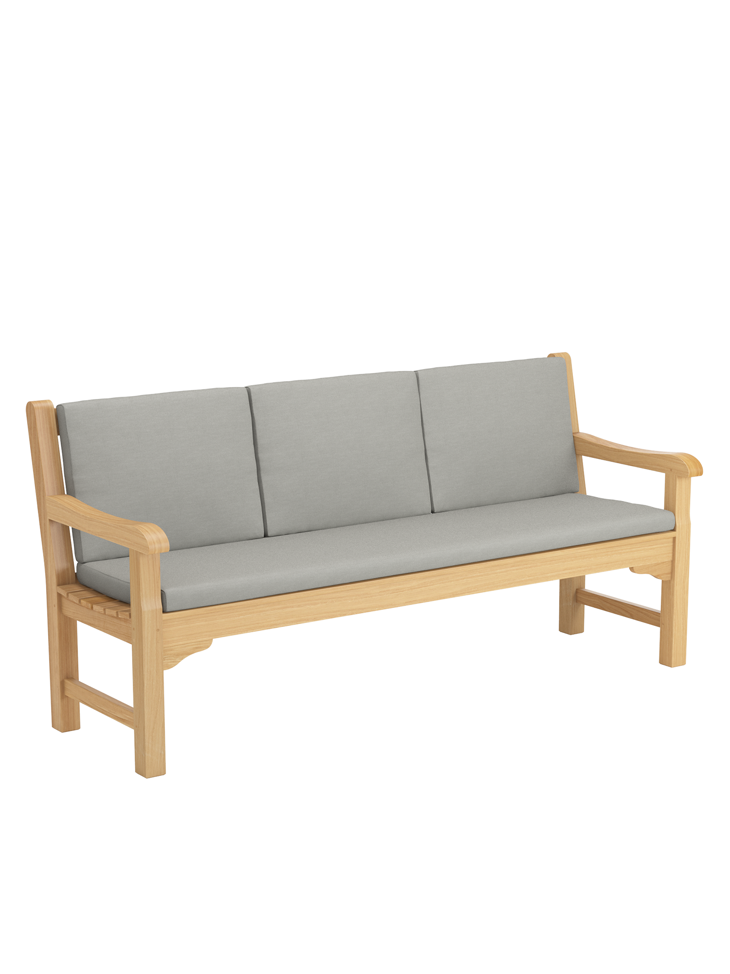 Wer mit Hingabe Rasen mäht und Blumen gießt, darf sich auf englischer Tradition ausruhen. Wer einfach nur die Sonne genießen will, auch. Klassisches Teakdesign adelt jeden Ort. In vier verschiedenen Größen verwöhnt die Bank mit schmeichelnd glatten Oberflächen.