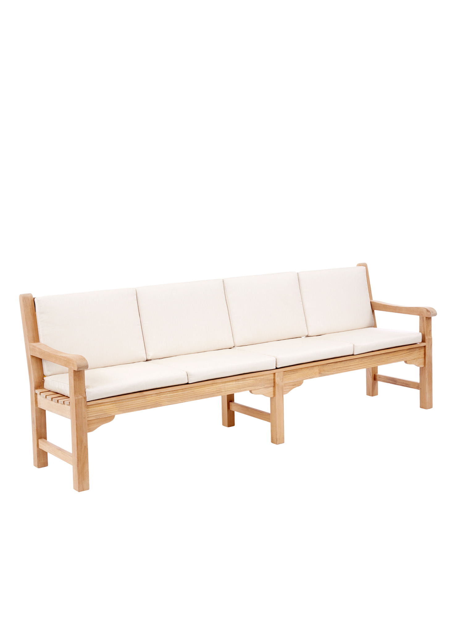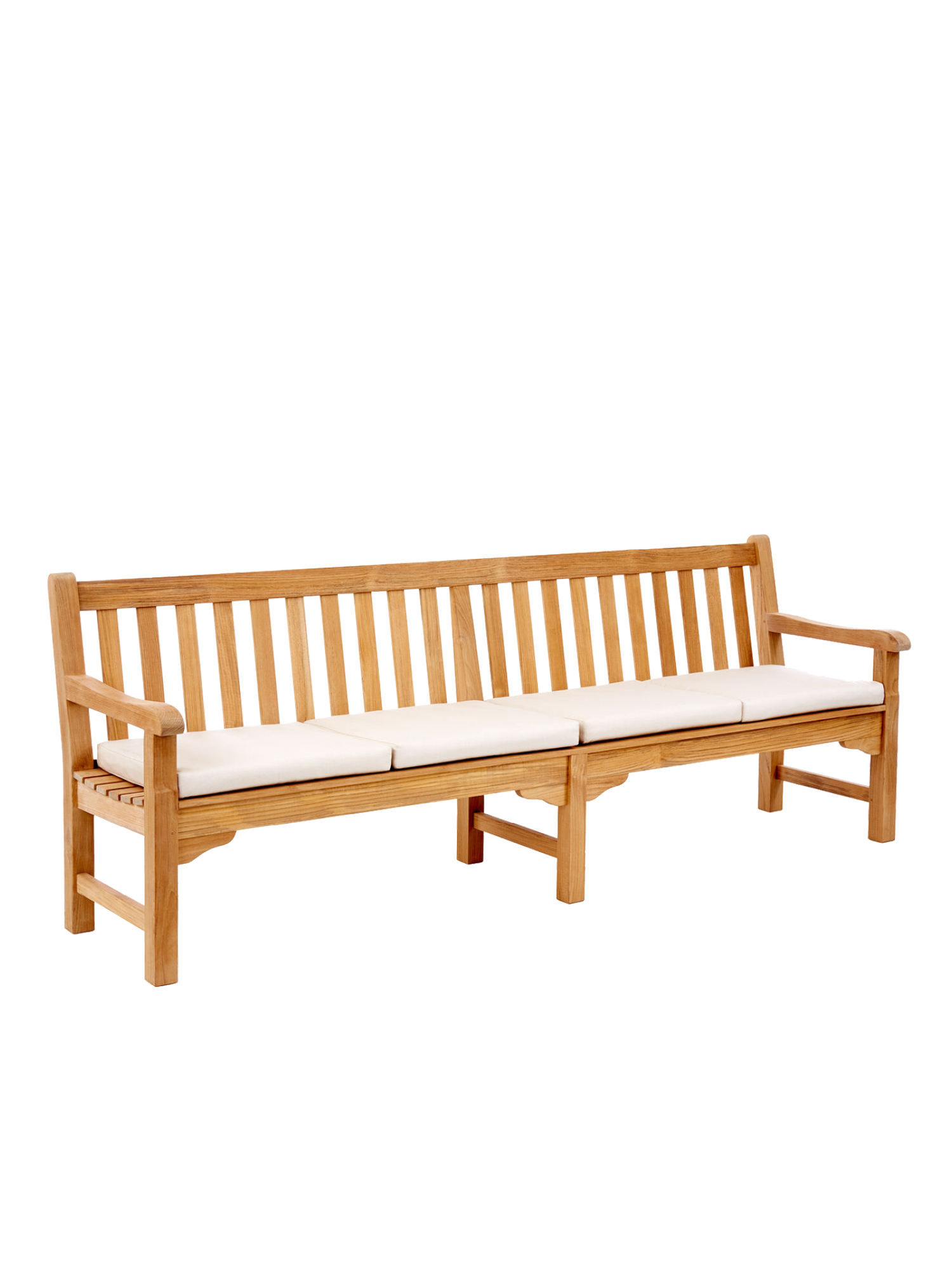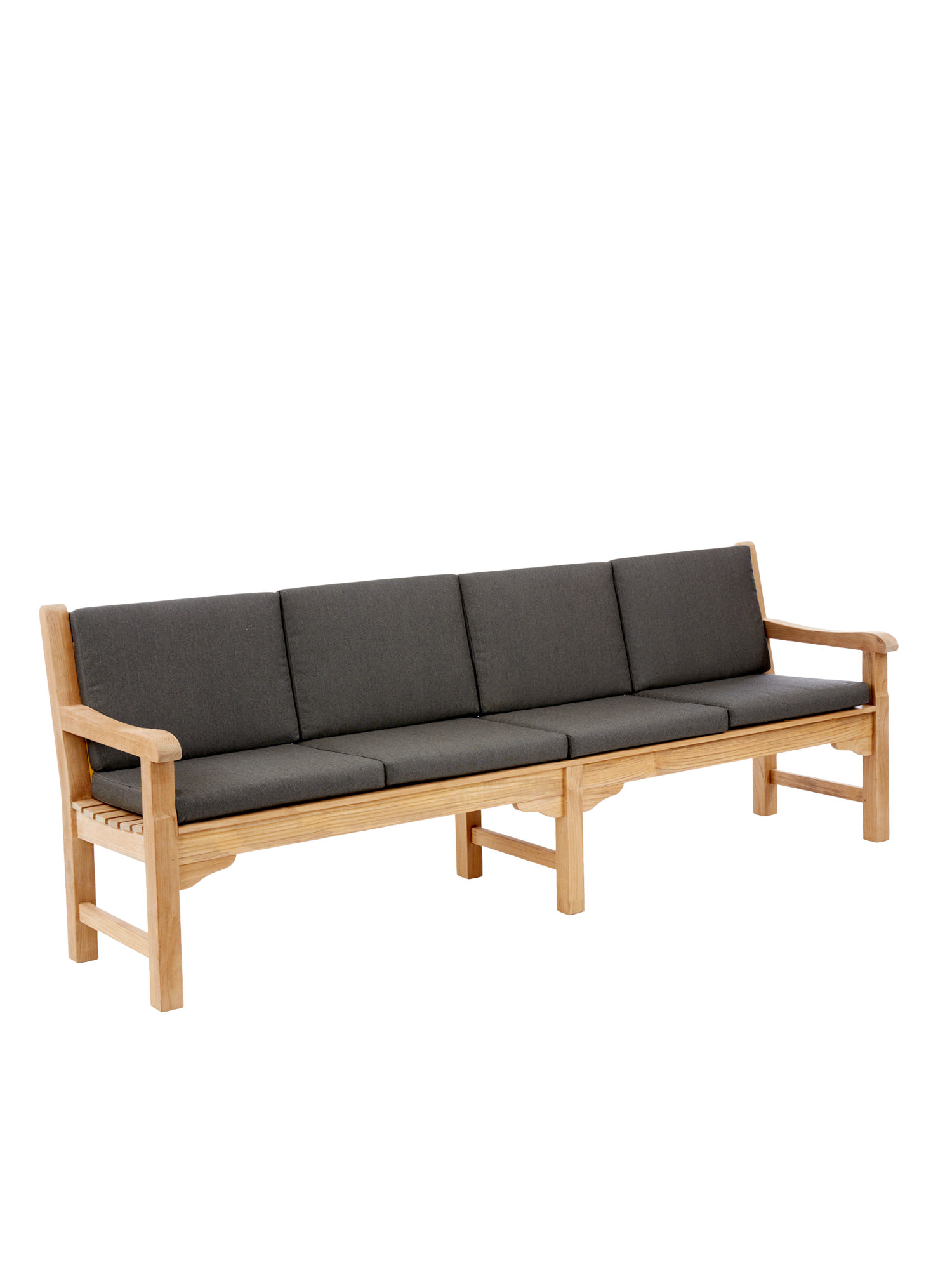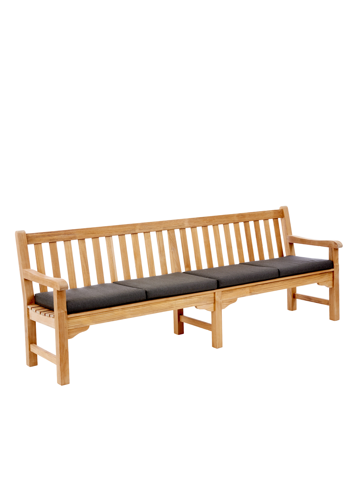 Wer mit Hingabe Rasen mäht und Blumen gießt, darf sich auf englischer Tradition ausruhen. Wer einfach nur die Sonne genießen will, auch. Klassisches Teakdesign adelt jeden Ort. In vier verschiedenen Größen verwöhnt die Bank mit schmeichelnd glatten Oberflächen.