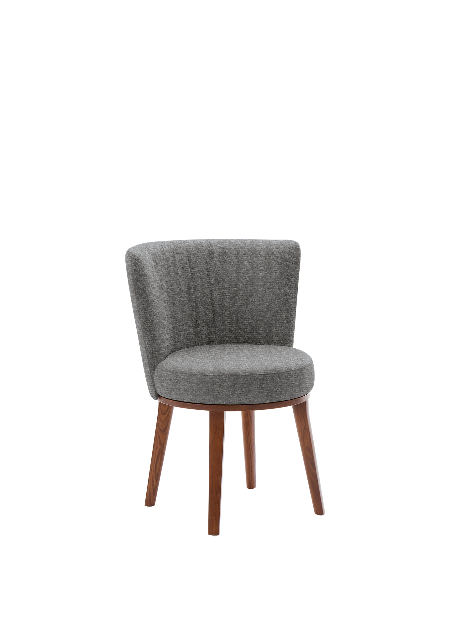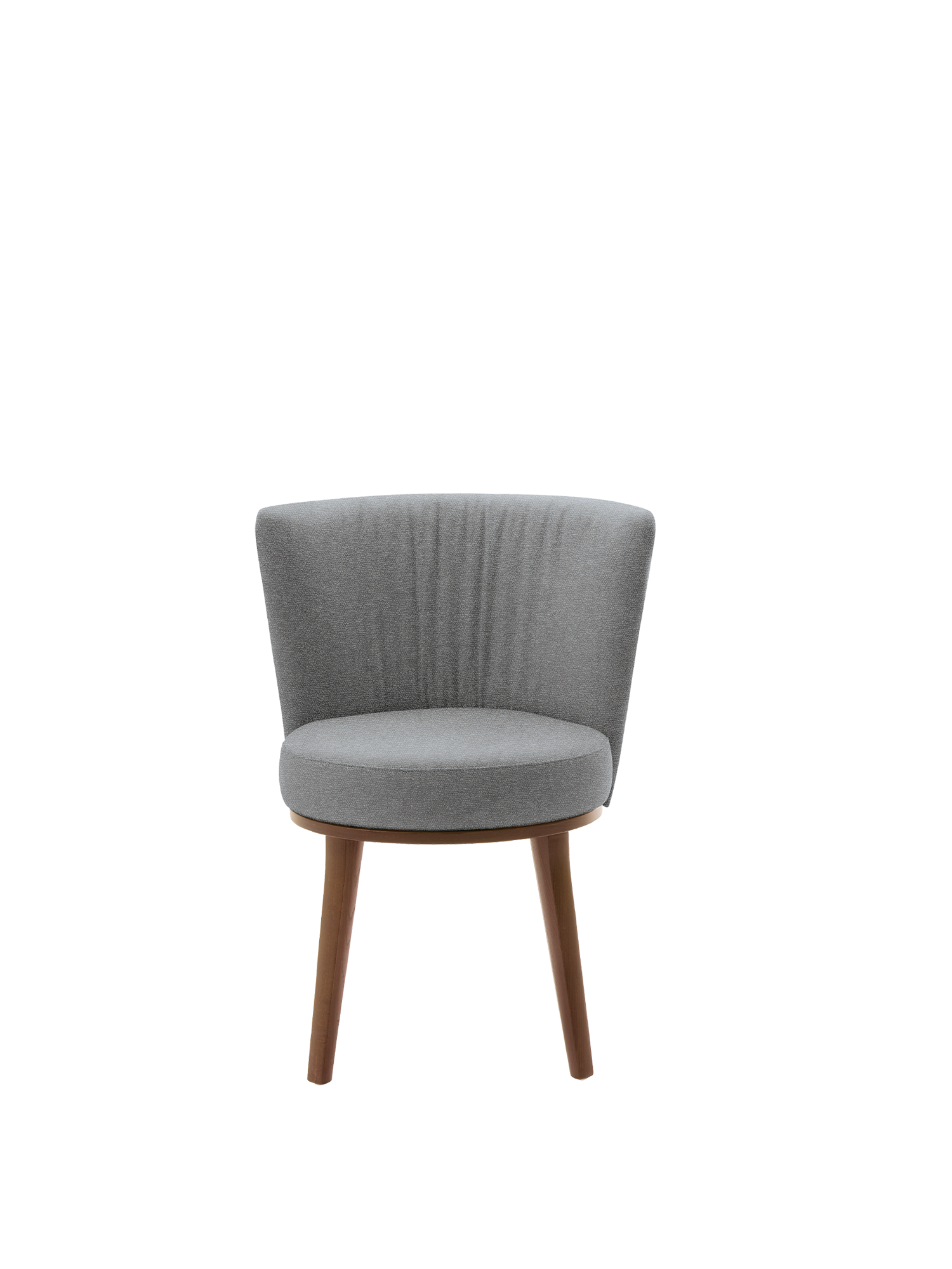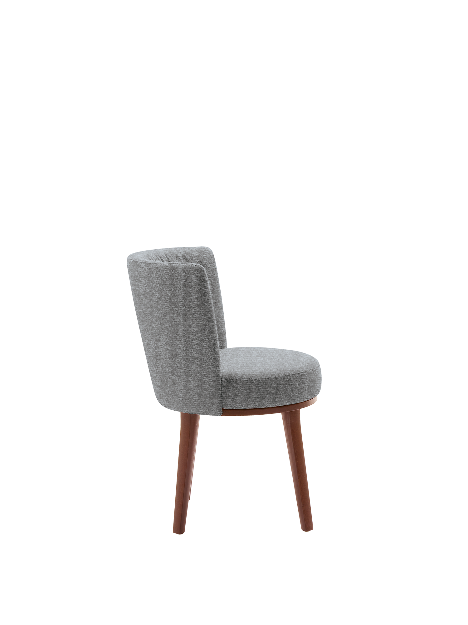 Mit seiner gerundeten Rückenlehne und dem weichen Veloursbezug bietet der Teano Stuhl alle Annehmlichkeiten eines Sessels – und noch etwas mehr: Die um 180 Grad drehbare Sitzfläche erlaubt ein bequemes Aufstehen, auch wenn der Stuhl einmal nicht vom Tisch zurückgeschoben werden kann. Das Gestell besteht aus geöltem amerikanischem Nussbaum. Auf Anfrage ist es auch in anderen Varianten erhältlich.
