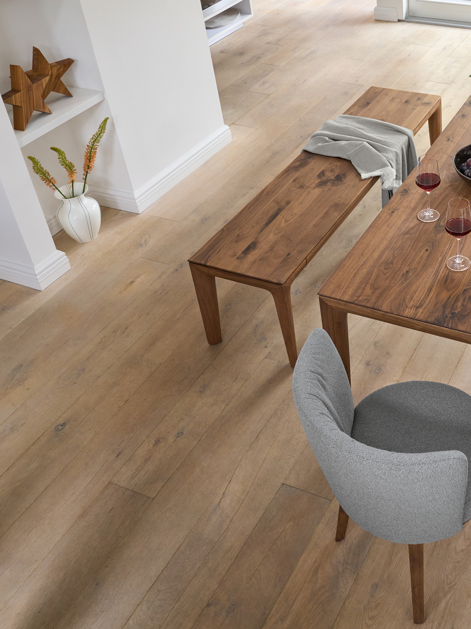 Der Teano Stuhl empfiehlt sich insbesondere für stimmige Kombinationen mit den Tavo Ausziehtischen aus amerikanischem Nussbaum.